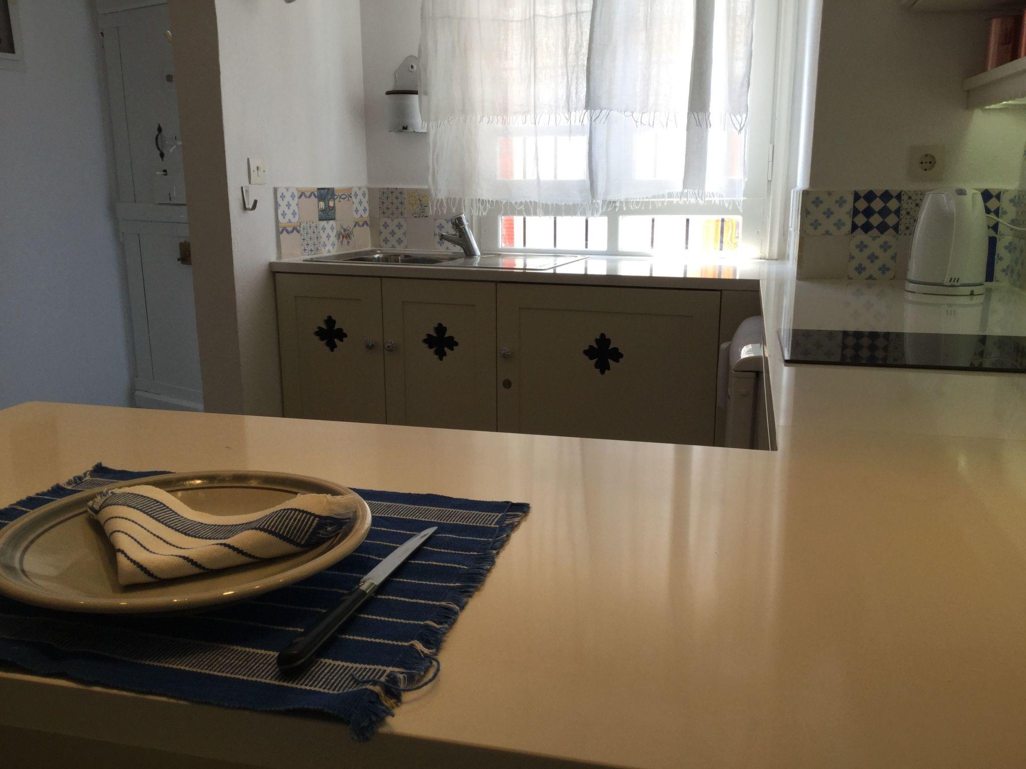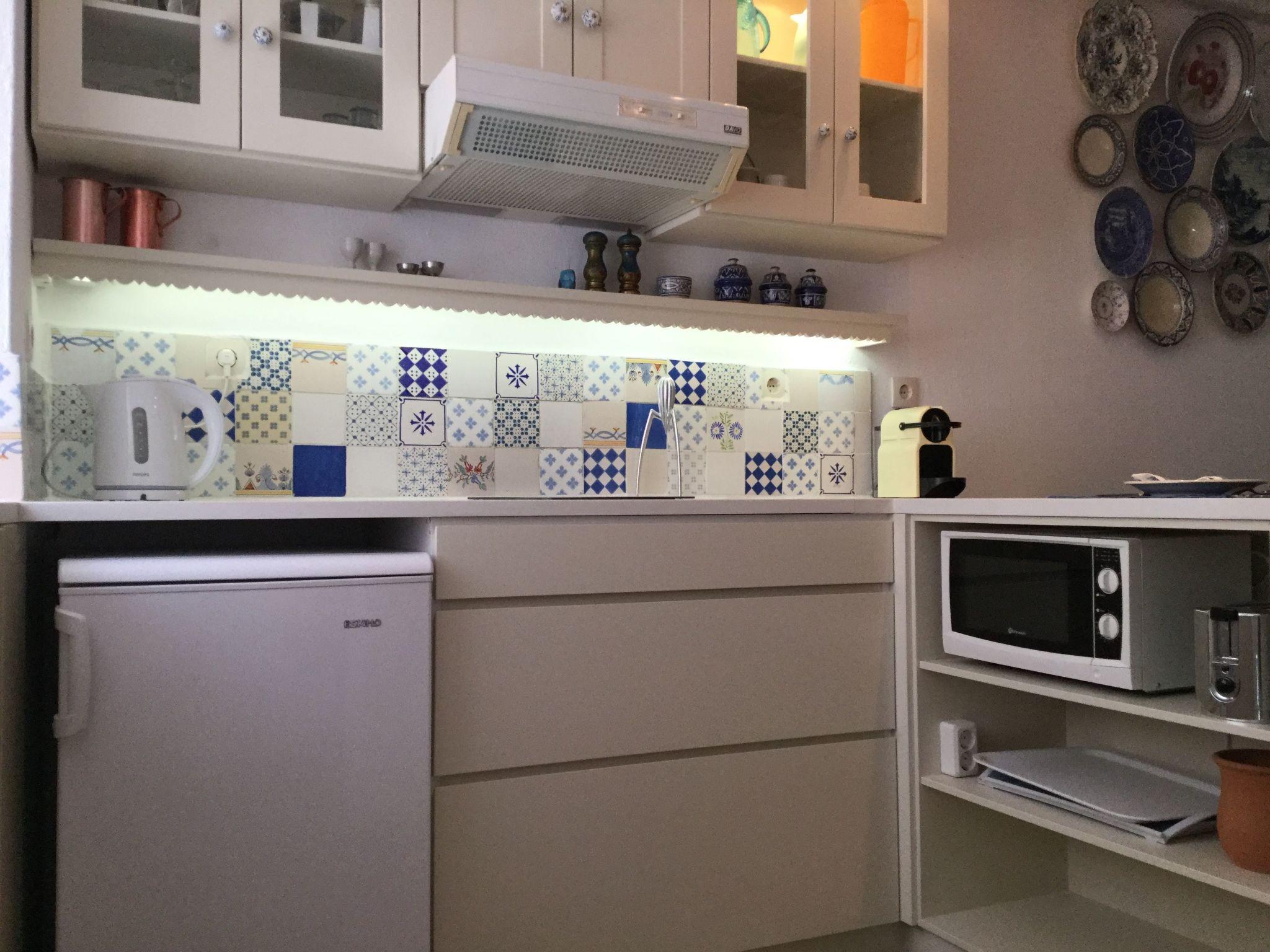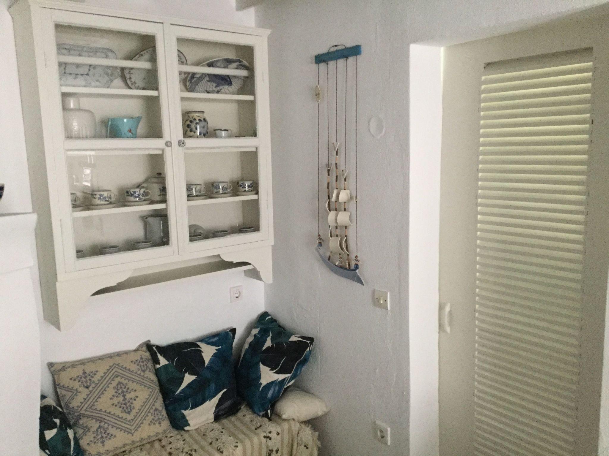 This house is a perfect mix between traditional decoration and functional modern comfort,. You will feel very comfortable here. An archway leads from the entrance hall to the comfortable living room, comprising a lounge area and an open kitchen, which is well-equipped and includes a tove, fridge, freezer compartment, microwave, Nespresso Machine, toaster and kettle and has a marble worktop. Next to the kitchen there is a counter with two stools. You can also sit at a round table or on the two sofas in the living room. There are bookshelves with a Lot of books, CD’s and a CD player. The bathroom provides a shower, WC and washbasin, and combines history and modern times. Wooden stairs lead to the open sleeping area with two separate single beds, which stand one next to the other as a double bed (each 90 x 200cm, box spring mattresses). The unique old parquet floors are very eye-catching, as well as the high ceilings. A little greek table, two chairs and an antique sofa adorn the sleeping area, which has a silent fan and air conditioning for warm and cold function. Hand towels are provided, but you should bring your own beach towels.
