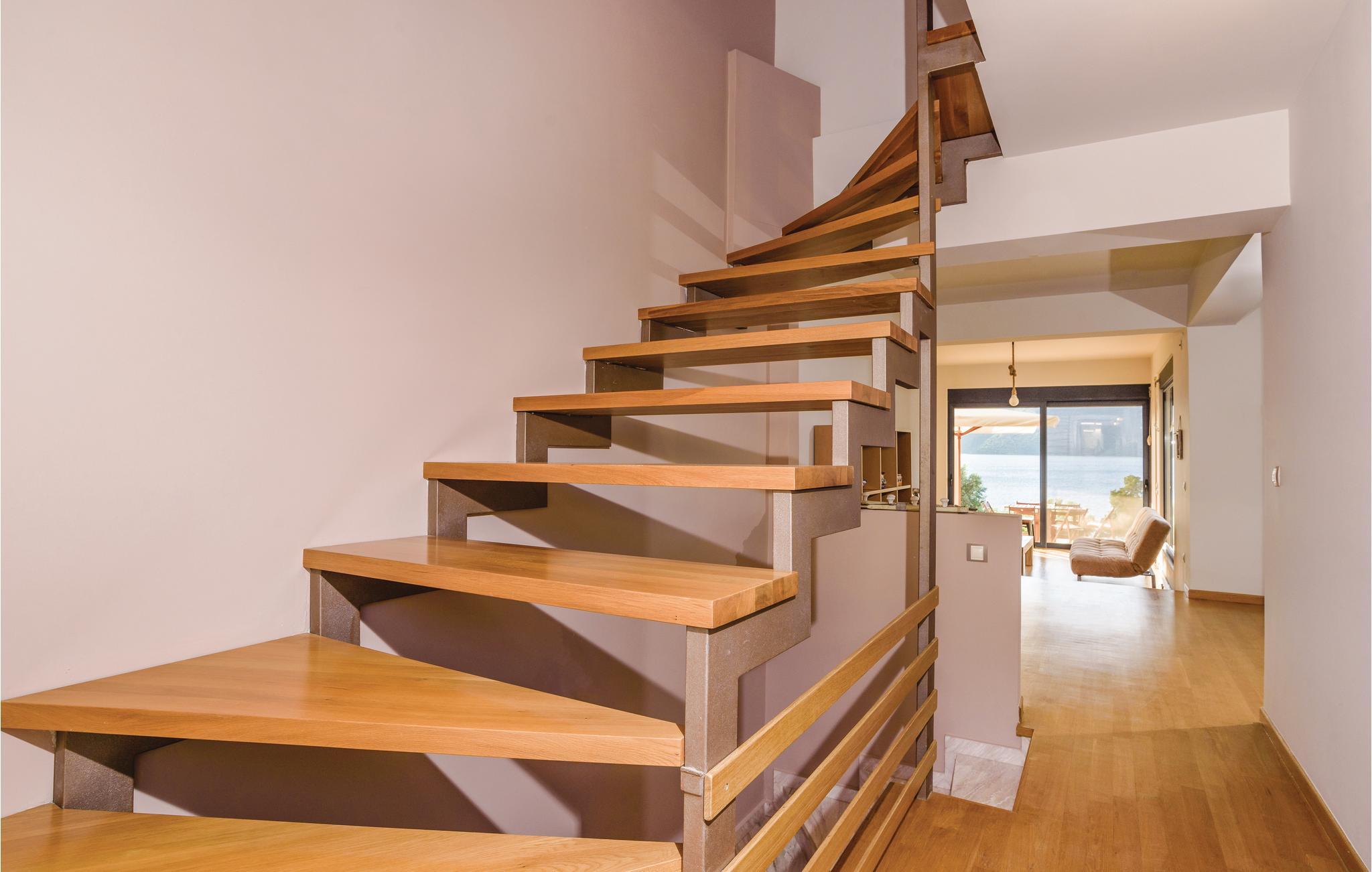 De to lejligheder deler kælderen, som består af et fælles køkken og en åben spisestue, en stue med pejs, en stueterrasse, 1 soveværelse med dobbeltseng, 1 soveværelse med 2 enkeltsenge og et badeværelse. Stueetagen af ??hver duplex lejlighed består af en stor stue med havudsigt, et soveværelse med dobbeltseng og et badeværelse. Hver lejlighed har to soveværelser med dobbeltsenge med havudsigt og et badeværelse.