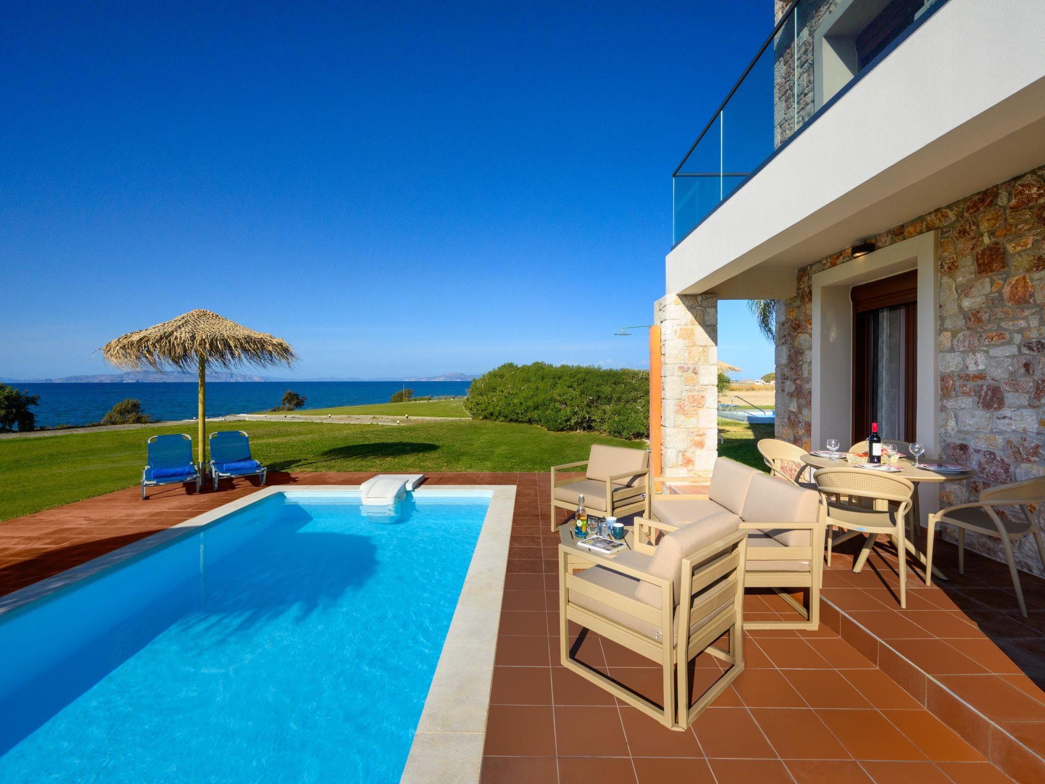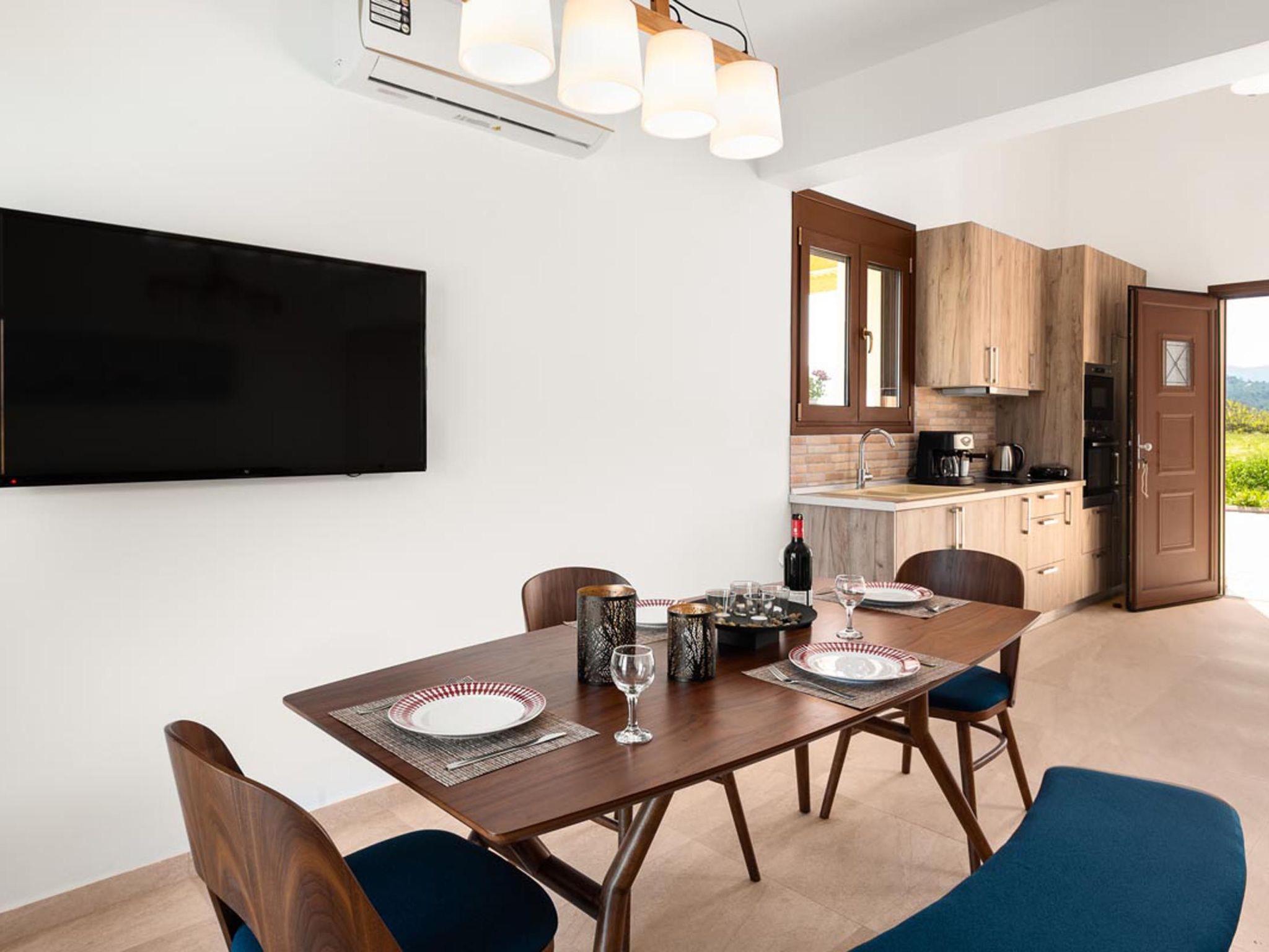 The decoration is simple, practical and comfortable. On the first floor of Attalos Villa there are 2 fully air-conditioned bedrooms with double beds on the first floor. Also, on the ground floor there’s a comfy double sofa bed in the living room. There is a bathroom with a shower in each floor. The kitchen is fully equipped and suitable for any meal preparation and shares the space with the beautiful living room and the peaceful dining area. Guests will find a screen TV with satellite channels and free Wi-Fi access throughout the property. Outdoors, there’s an incredible private swimming pool with its sunbeds where you can relax under the Aegean sun. The sea view is quite mesmerizing and unique. Guests will have the opportunity to sit and relax at the patio and enjoy the BBQ facilities.