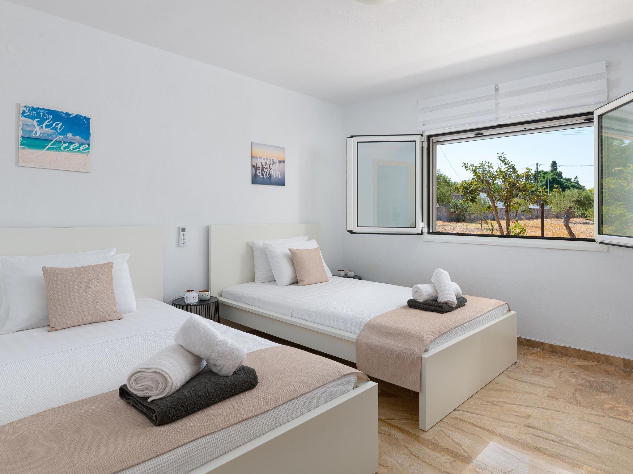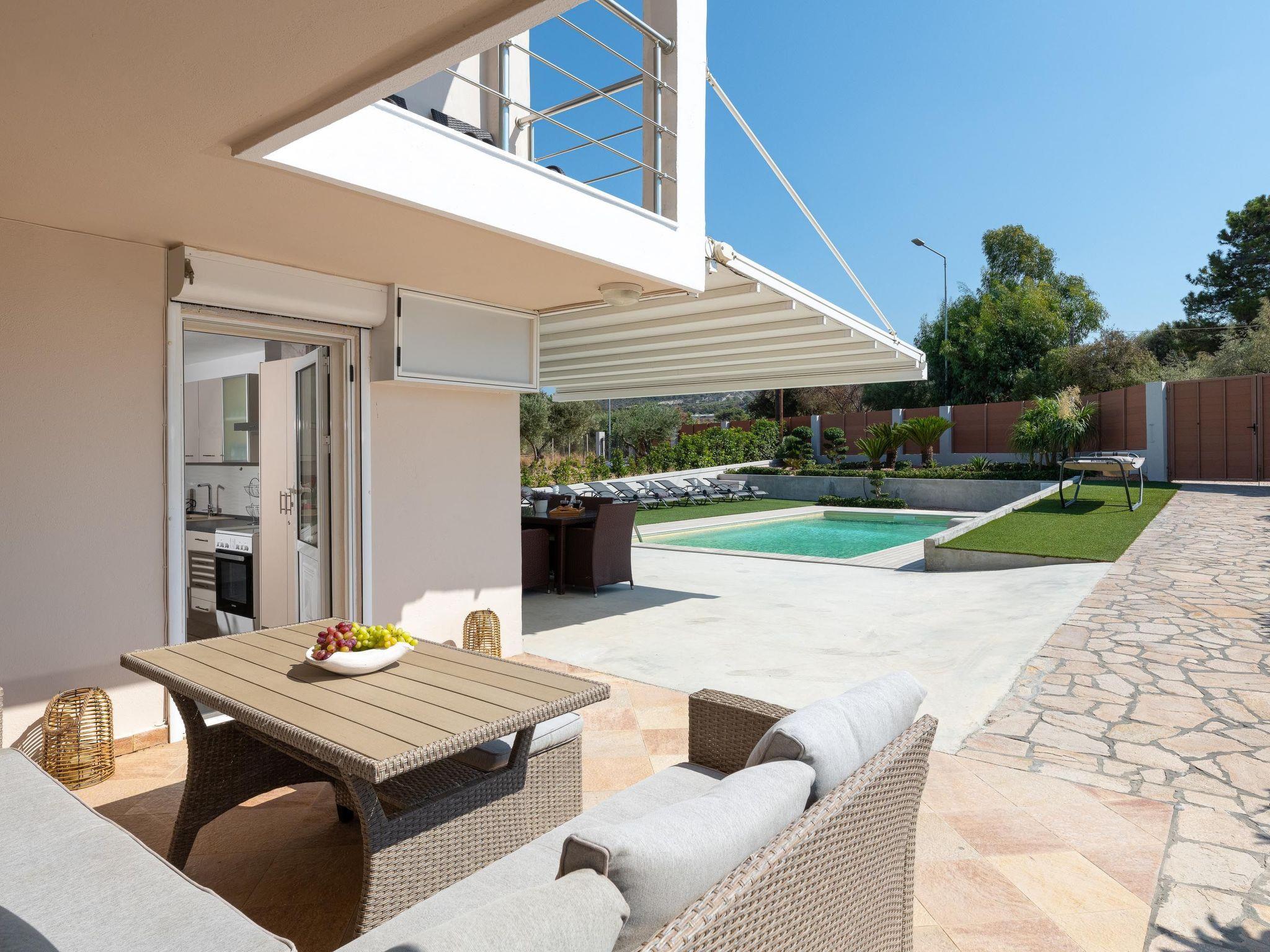 It consists of 4 bedrooms which accommodate up to 8 people, a spacious fully equipped kitchen ,a dining area and a comfortable living room. Every rooms has a panoramic and uninterrupted view to the garden or Aegean Sea. The exterior of the villa is definitely something that guests will enjoy as it features a private pool with sunbeds ,hammoch, outdoor lounge, and BBQ facilities.