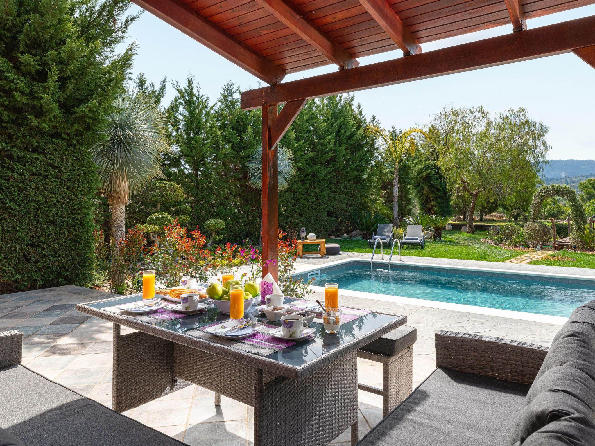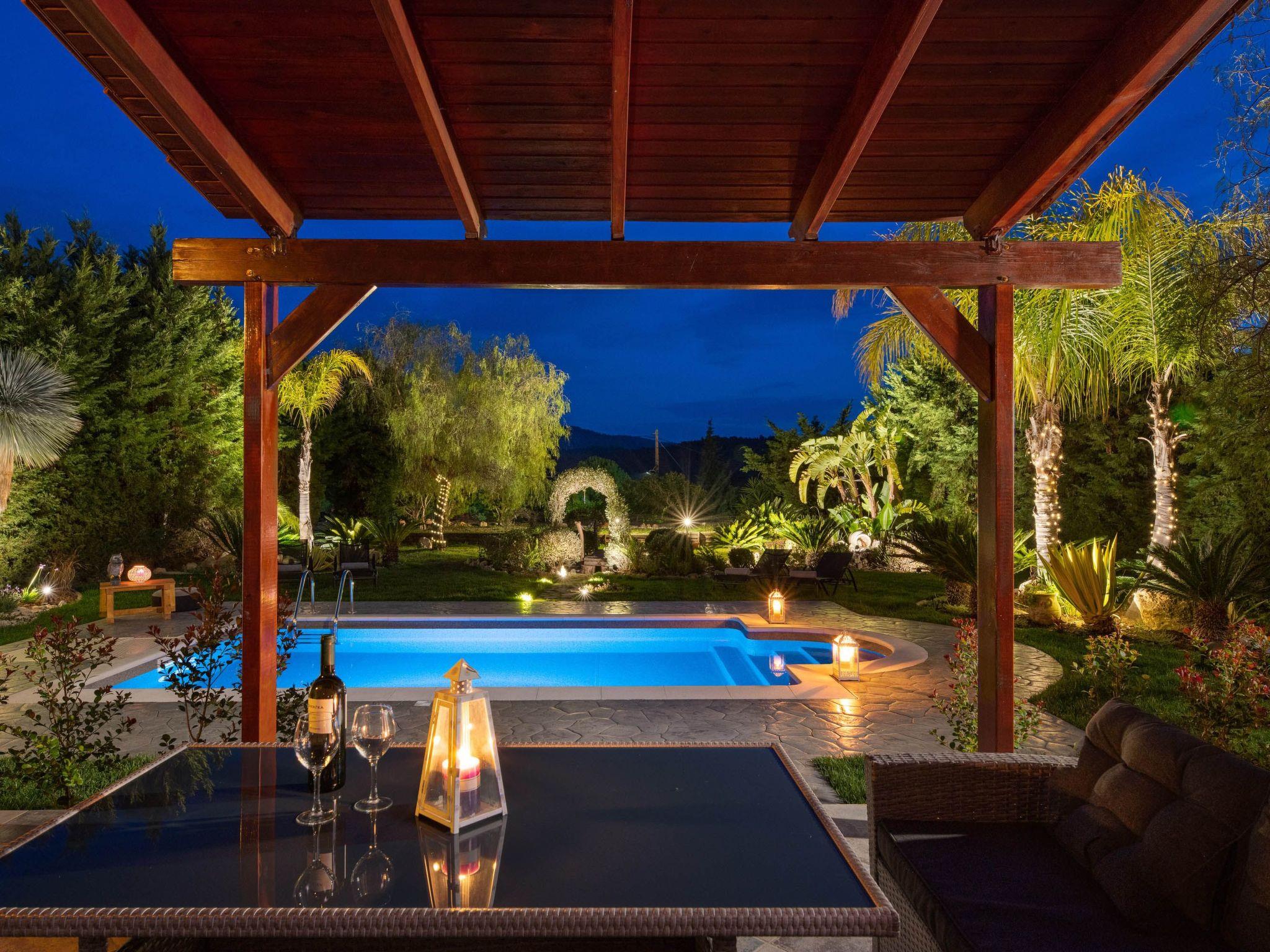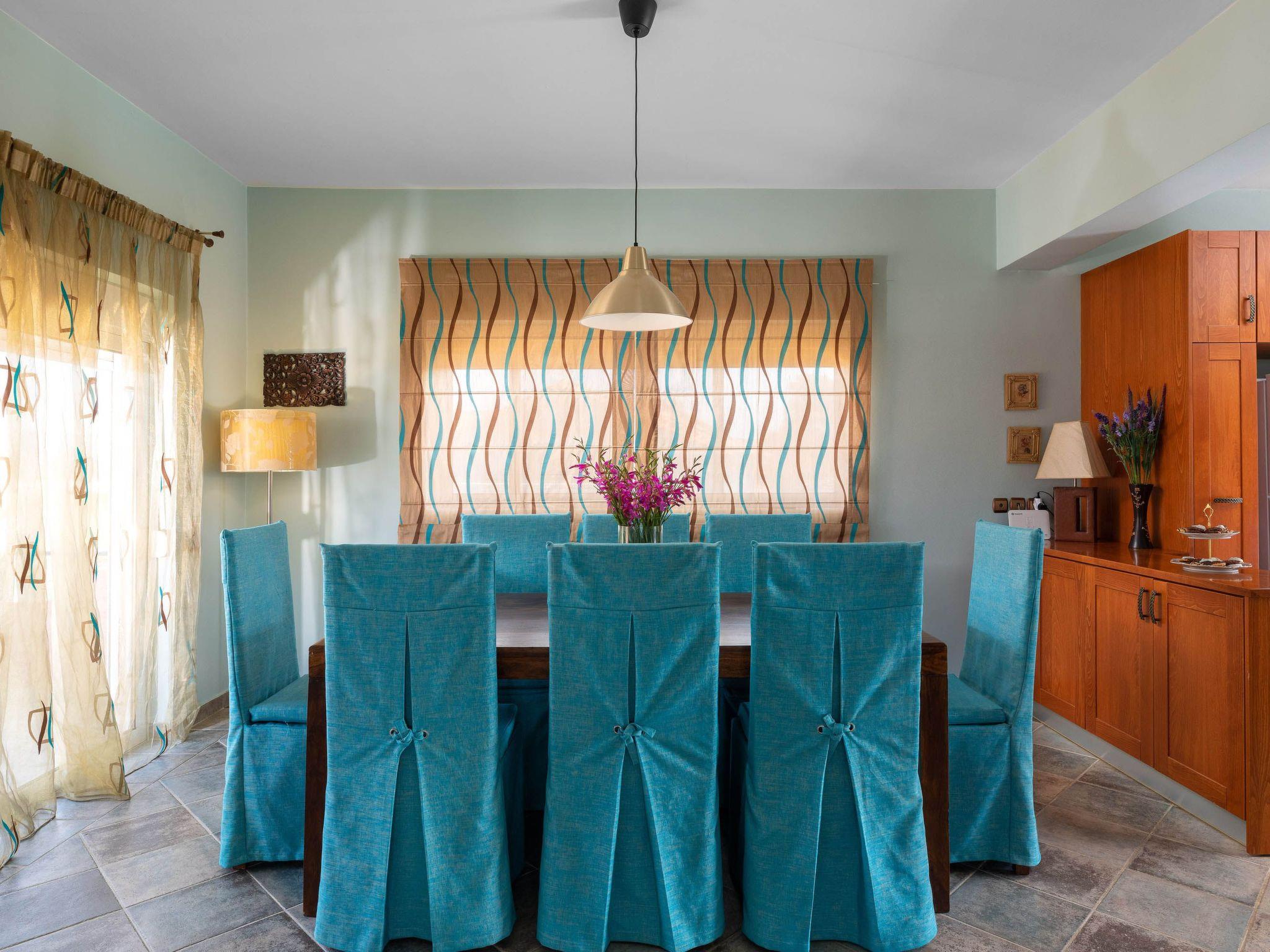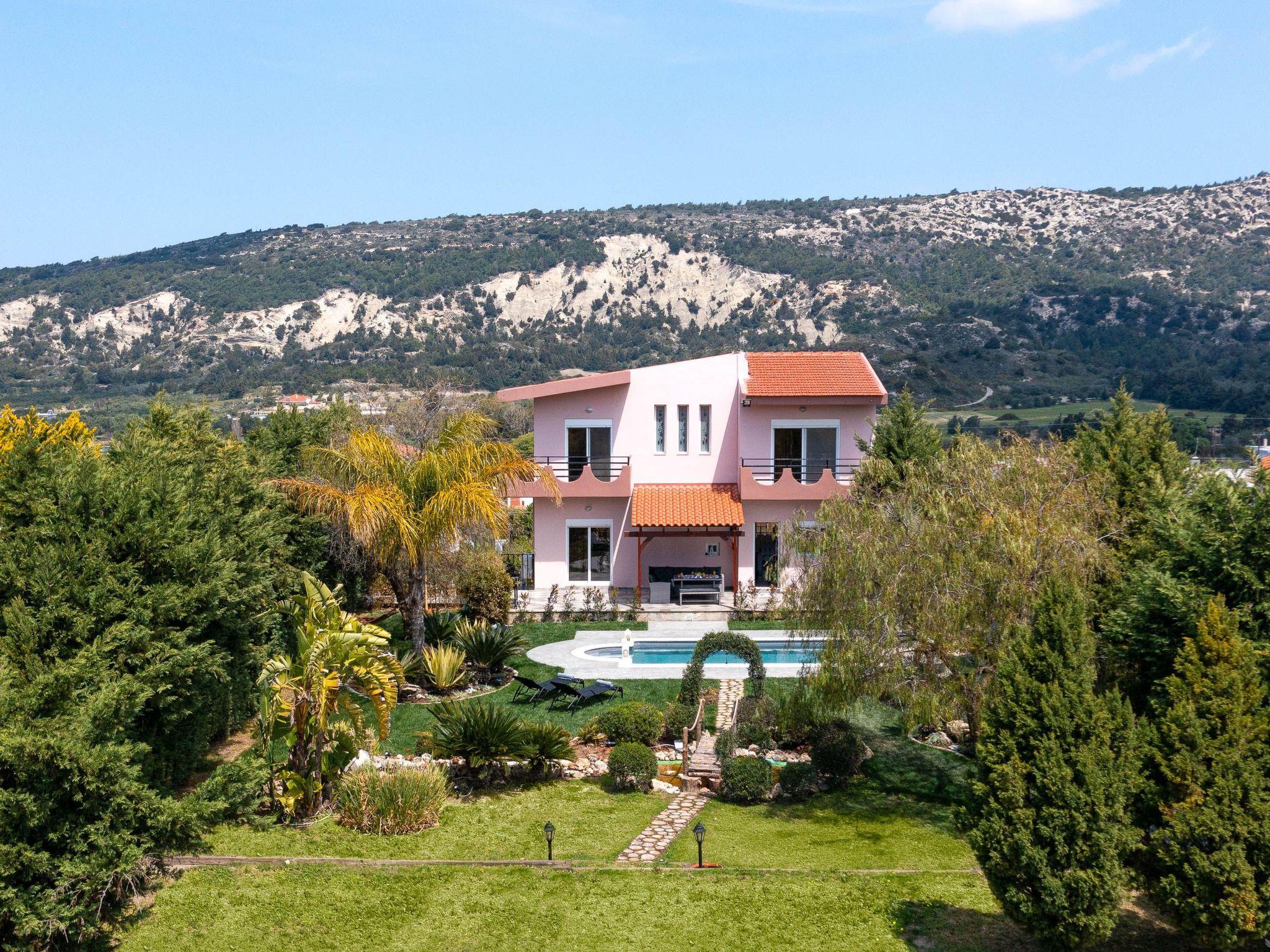 Zenia Villa is a dreamy property located at Damatria Village, less than 15 minute driving distance from the airport. It offers an exquisite private swimming pool and an exotic garden with a pot. The nearest beautiful beach is found at a driving distance of only 10 minutes. It conveniently accommodates up to 7 guests and promises privacy and an unforgettable stay. Zenia Villa has an incredible interior design with colorful details. It offers 3 fully air-conditioned bedrooms with double beds and balconies. Also, it has 2 bathrooms. One of them with a shower and another one with a bathtub with jacuzzi features for your ultimate relaxation. The property has a fully equipped kitchen suitable for any meal preparation. This beautiful villa has a spacious open plan living room in earth tones with comfortable sitting areas, equipped with flat screen TV with Netflix and satellite channels. There’s free Wi-Fi access throughout the property. Outdoors, there’s a private swimming pool surrounded by the sunbeds , a hammock and an exotic atmosphere that will give you a carefree feeling. There’s a picturesque garden with a pond. You can always prepare a meal at the BBQ facilities and enjoy a gathering with your loved ones especially recommended on the evening hours.