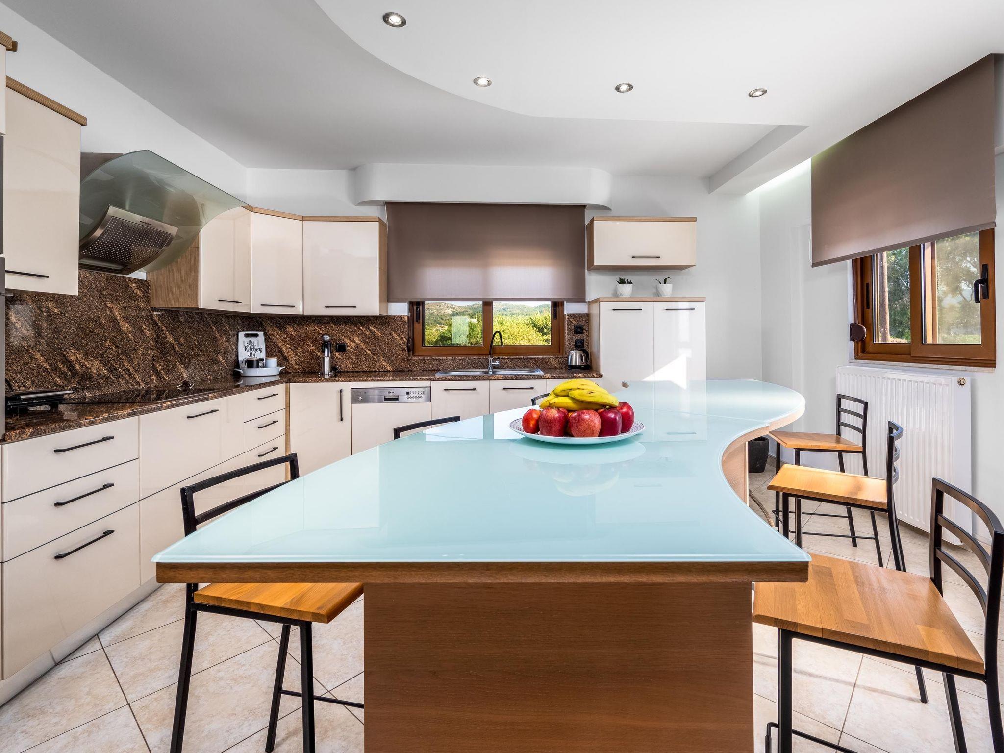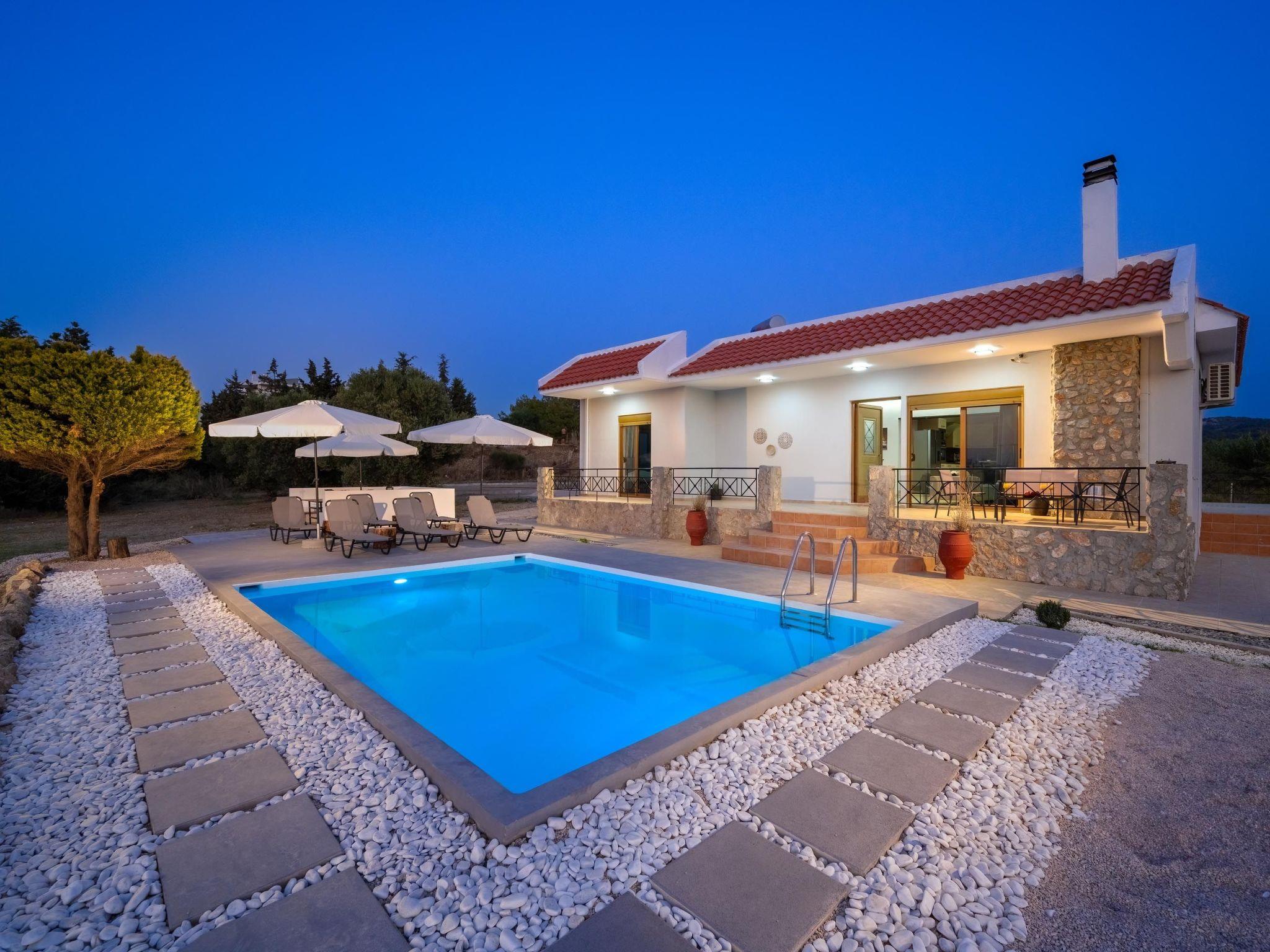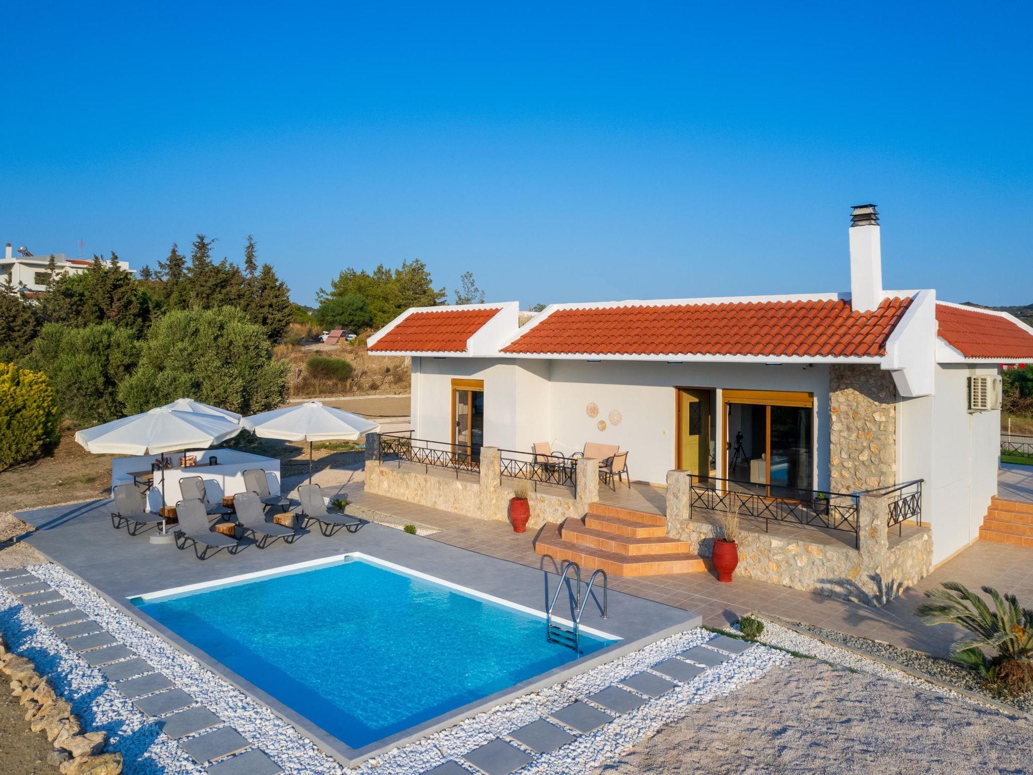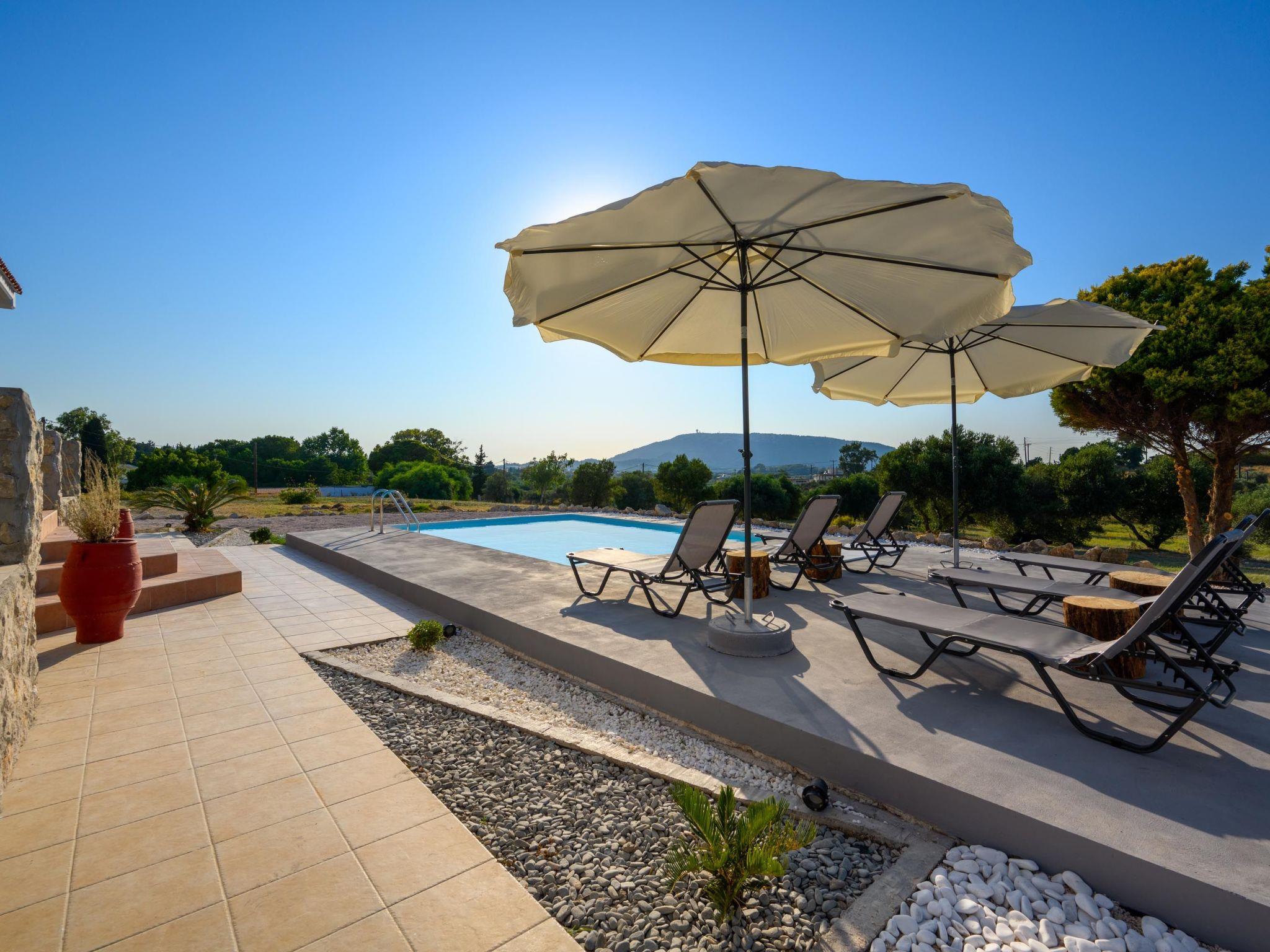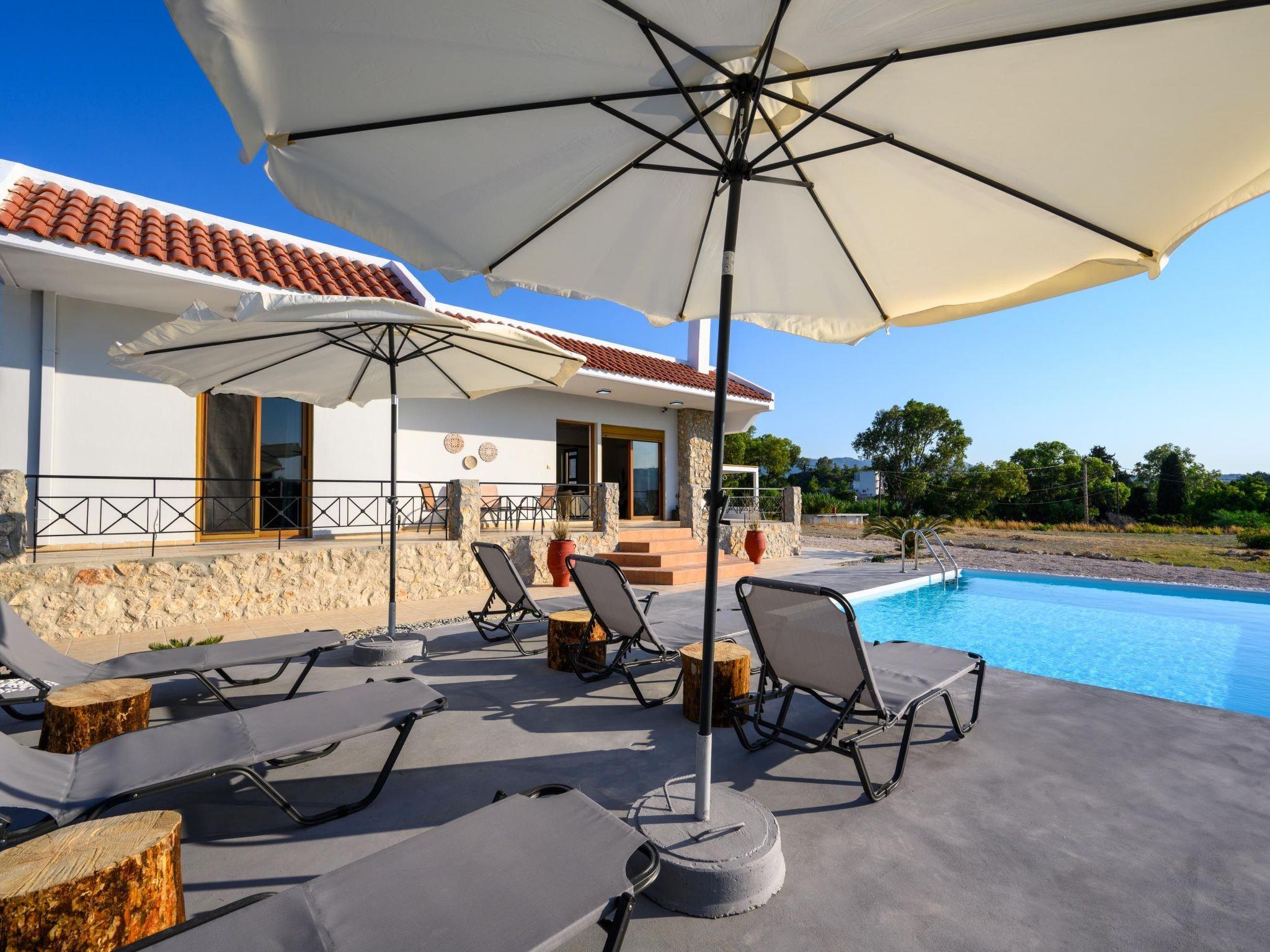 This unique villa is set in the calm and serene area of Pastida on a high point surrounded by hills; with views of olive groves, Filerimos, and beyond. Pastida is a village that has to offer you everything you might need during your stay and is located only 5 minutes' drive far from the villa. The coastline is found at a driving distance of only 10 minutes. Also, the airport of Rhodes is found really close to the villa, only 10 minutes. You should not miss visiting the center of Rhodes as well as the Old City of Rhodes. They are found at a driving distance of only 30 minutes. Also, Valley of Butterflies is near the villa, only 20 minutes. There you will have a chance to admire the beauty of Greek nature and see something truly unique! Rhodes has many places that worth visiting, one of them is the Lindos Acropolis, the most incredible archaeological site on the island. It is found at a distance of 50 minutes drive.