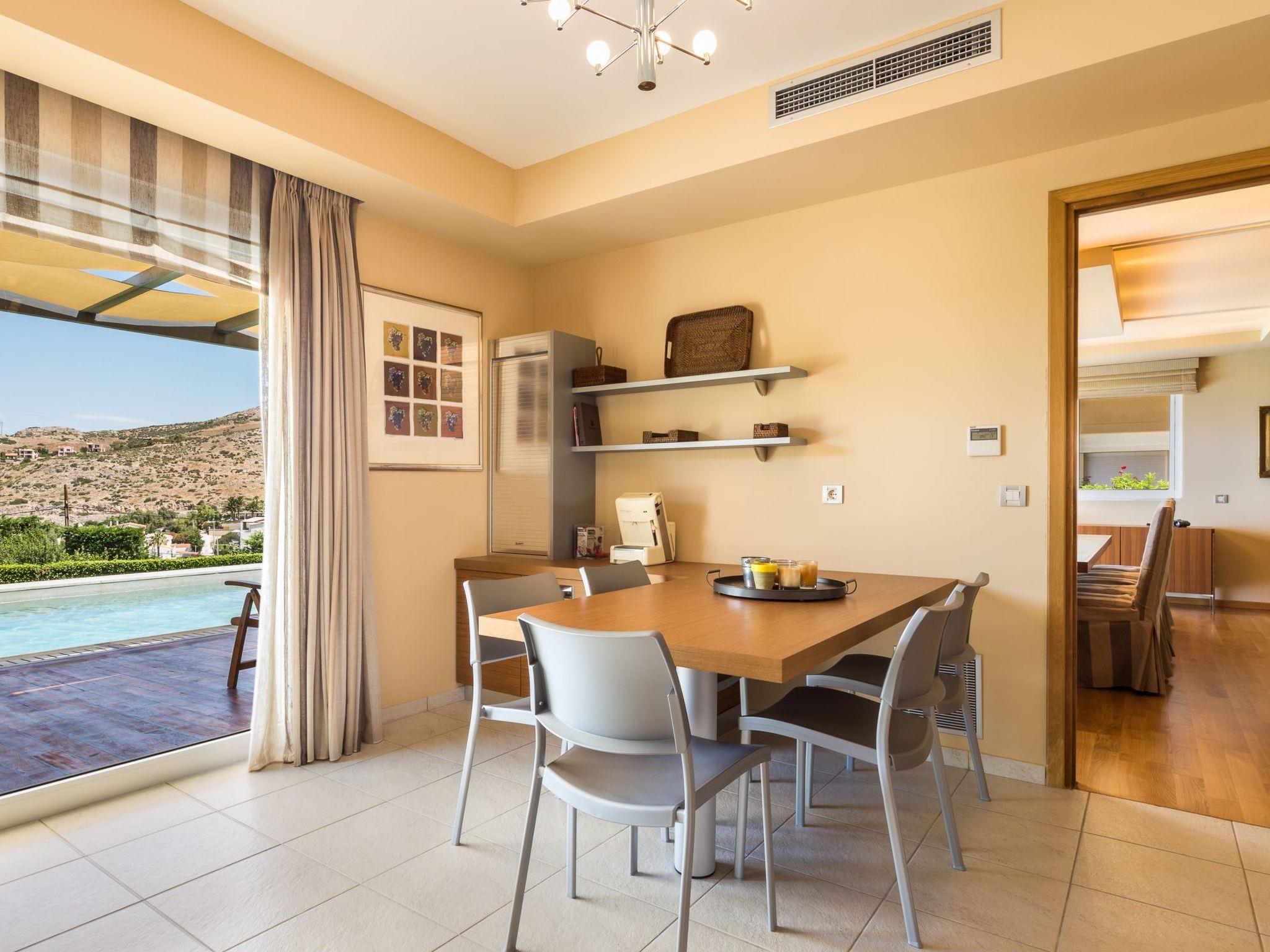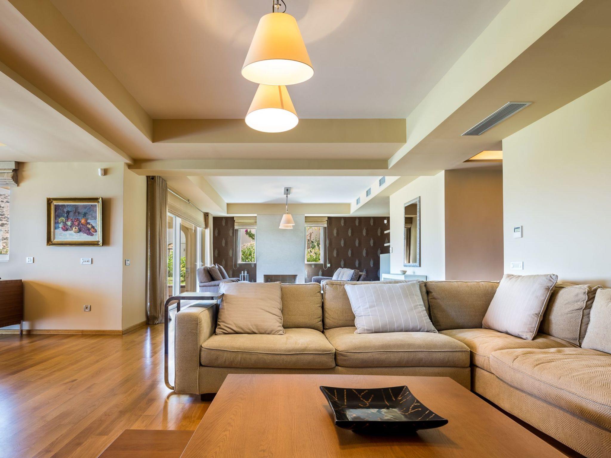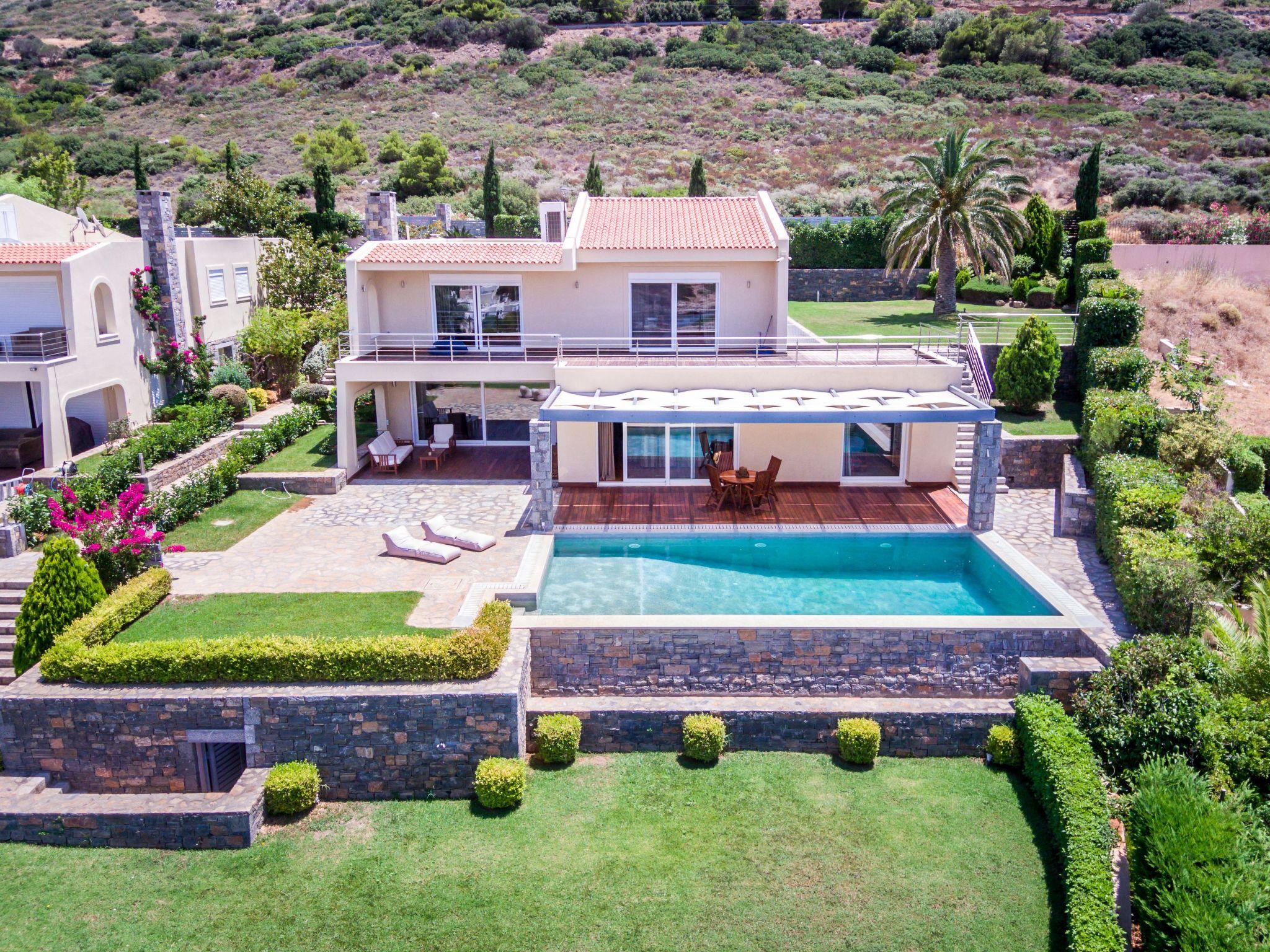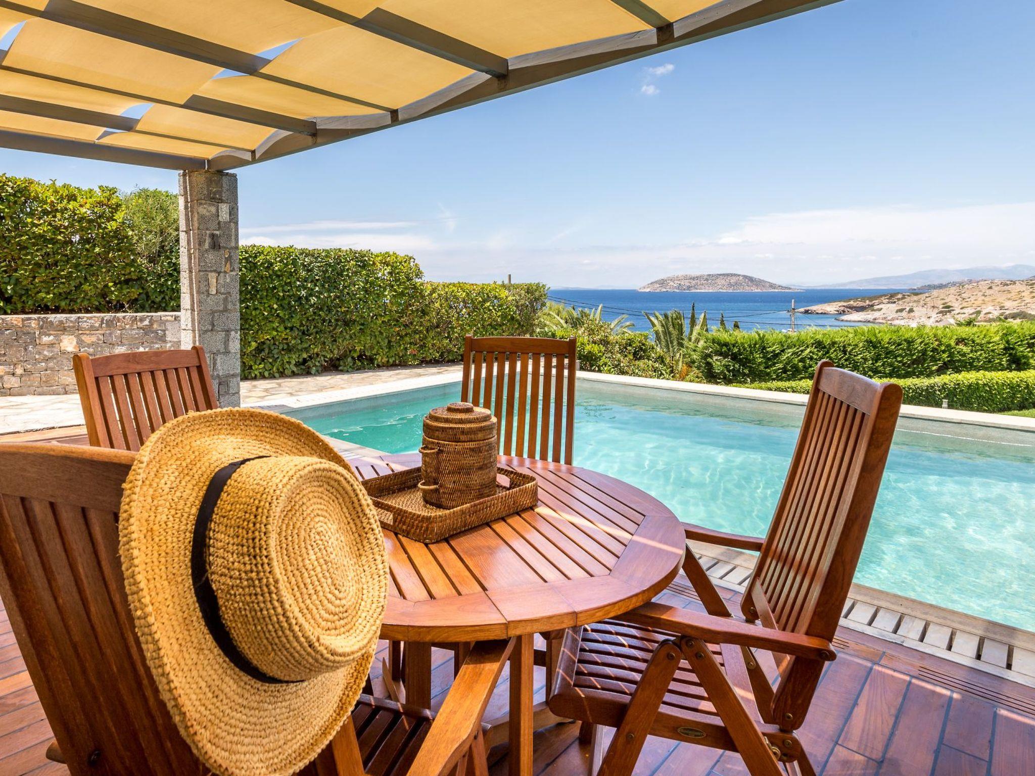 A large garden with swimming pool. Sitting and dining area. Big balconies with fantastic views of Saronicos Bay and its famous sunset.