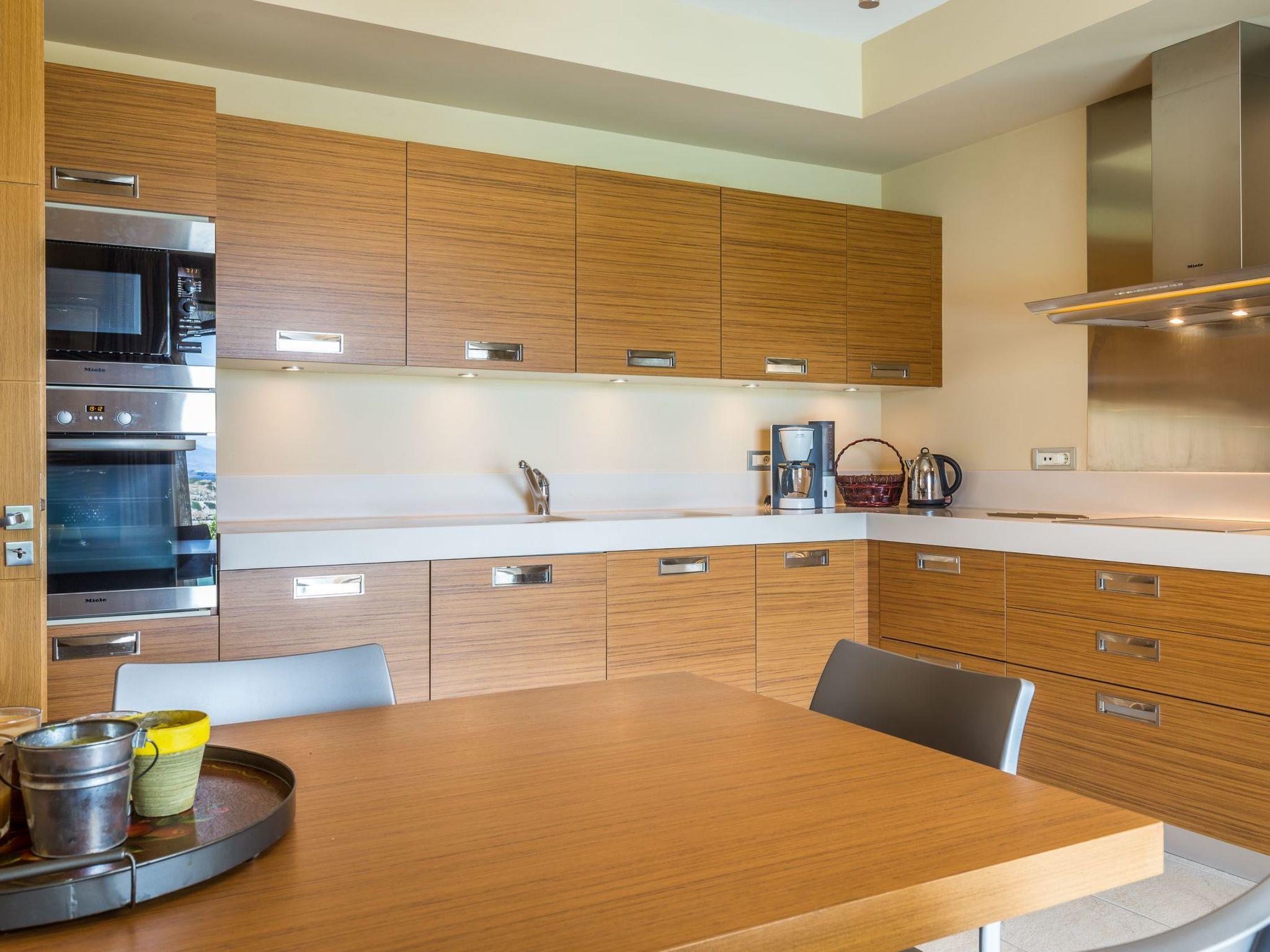 The villa's gourmet kitchen is a haven for culinary enthusiasts, featuring top-of-the-line appliances, custom cabinetry that invites culinary creativity. Adjacent to the kitchen is an elegant dining area, perfect for hosting memorable gatherings and entertaining guests.
