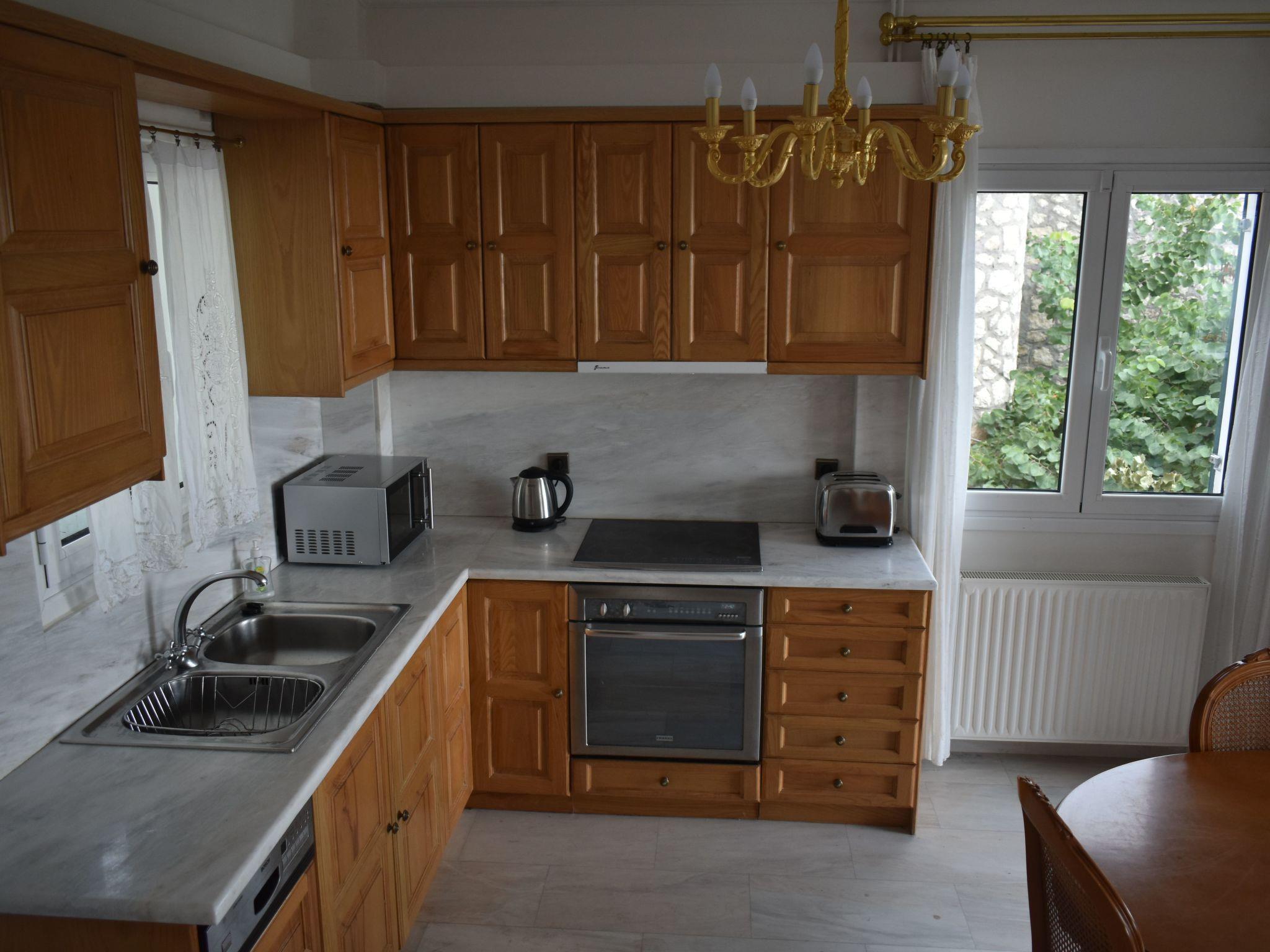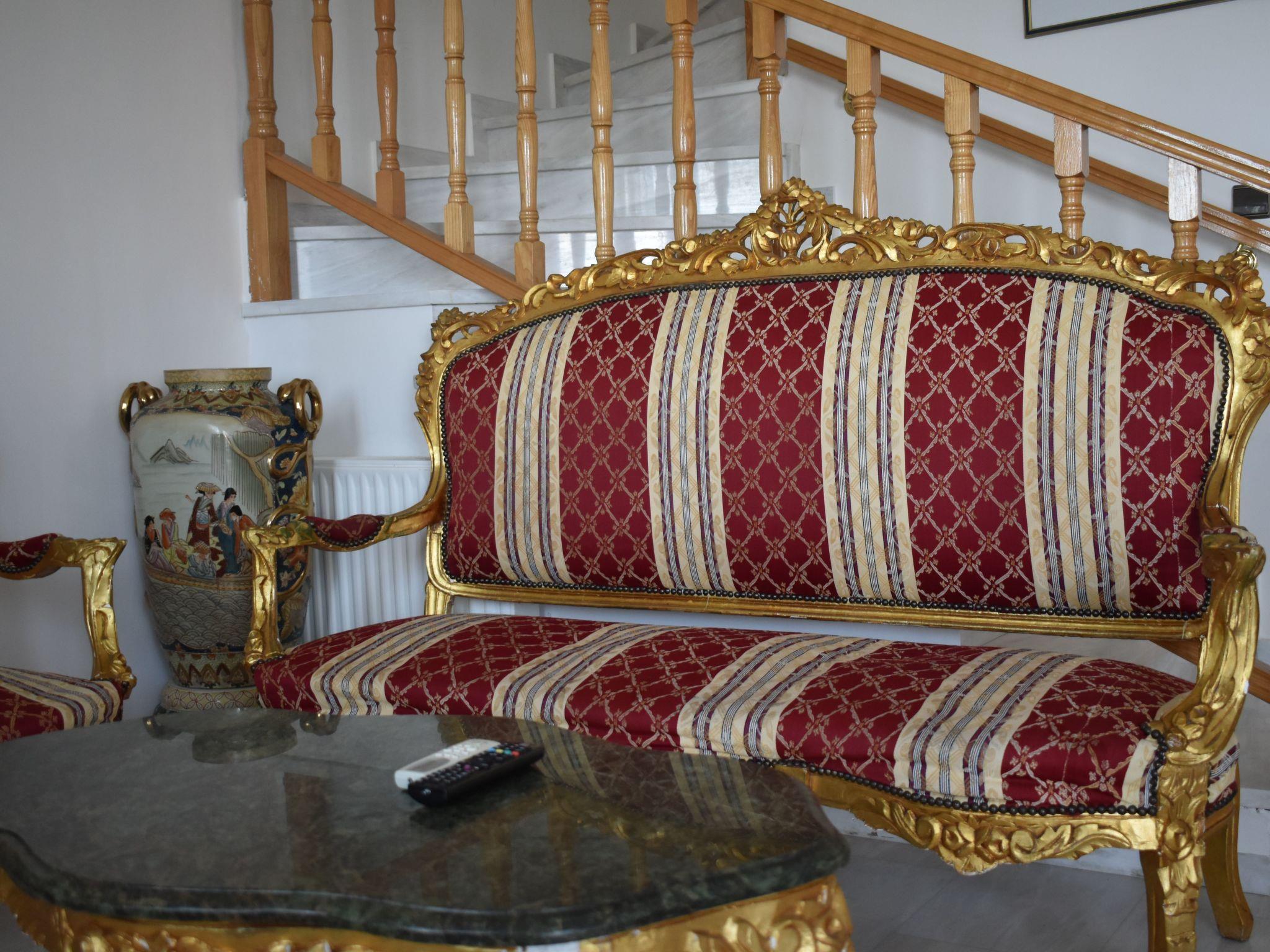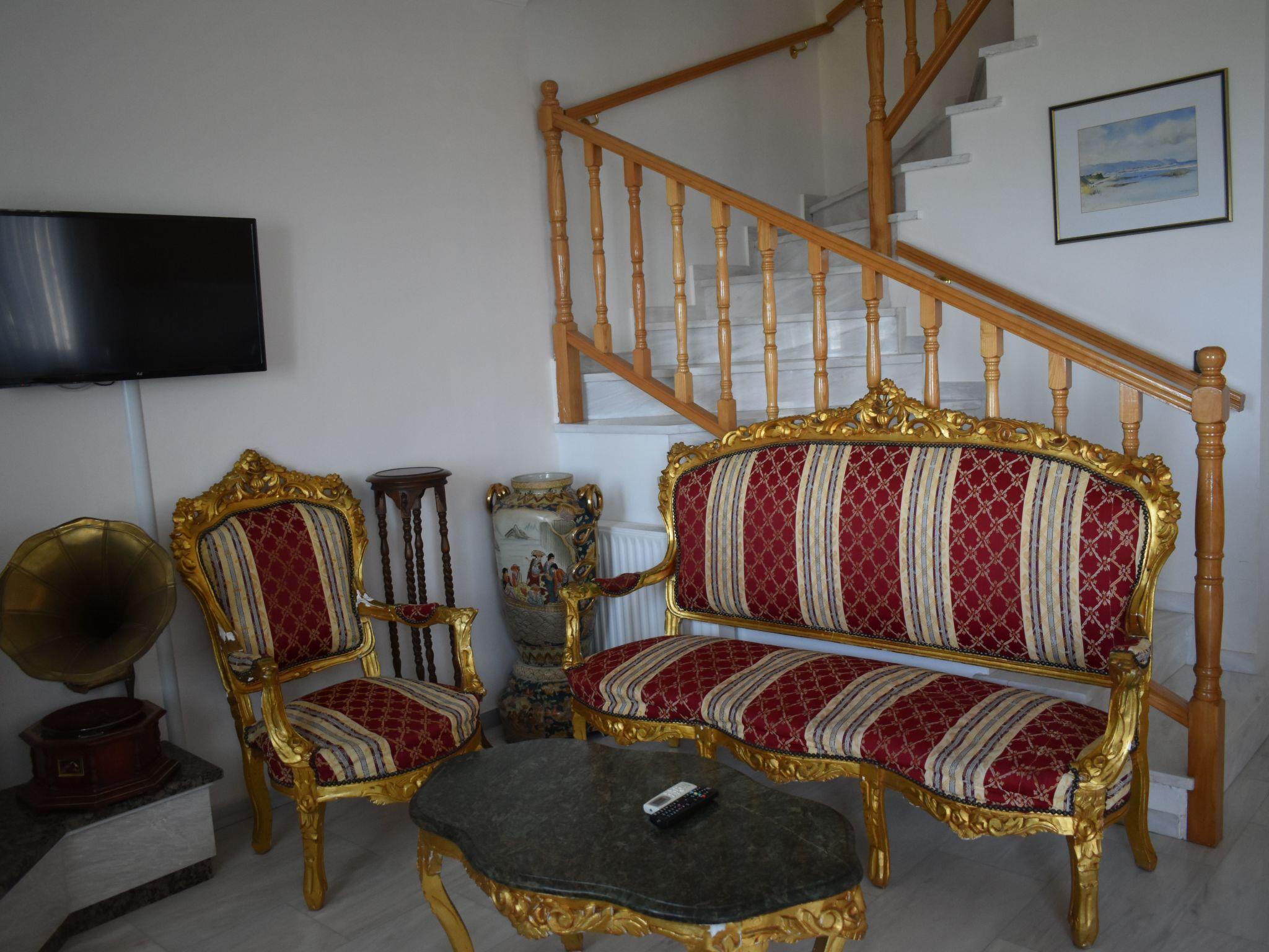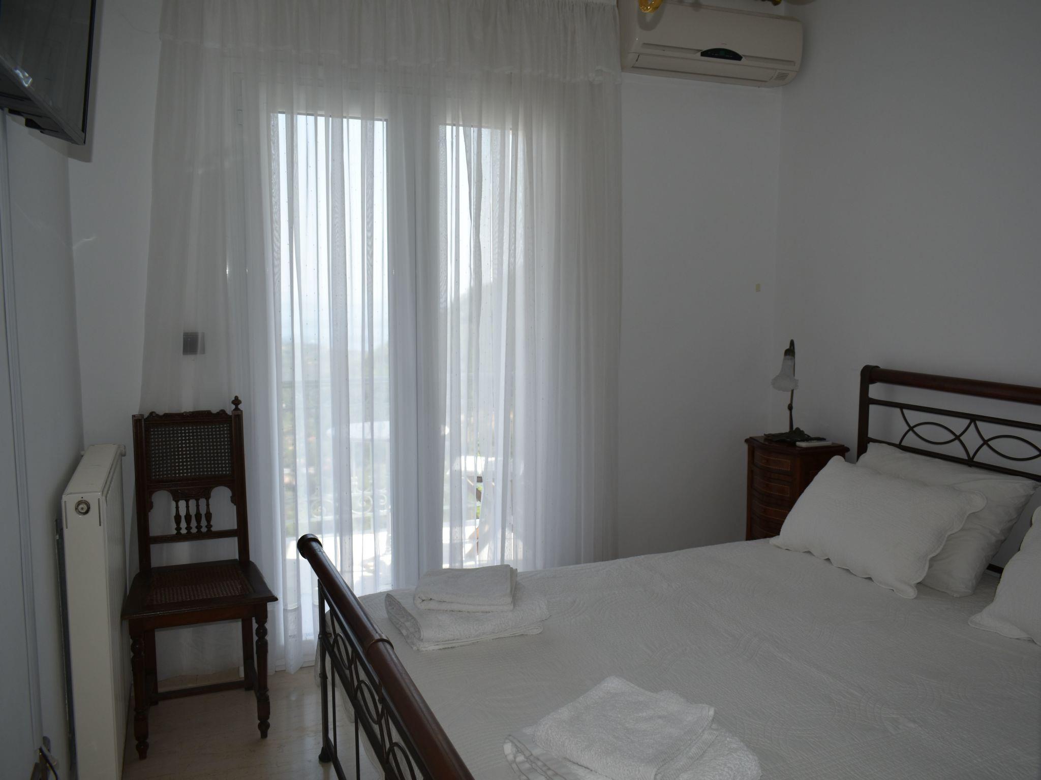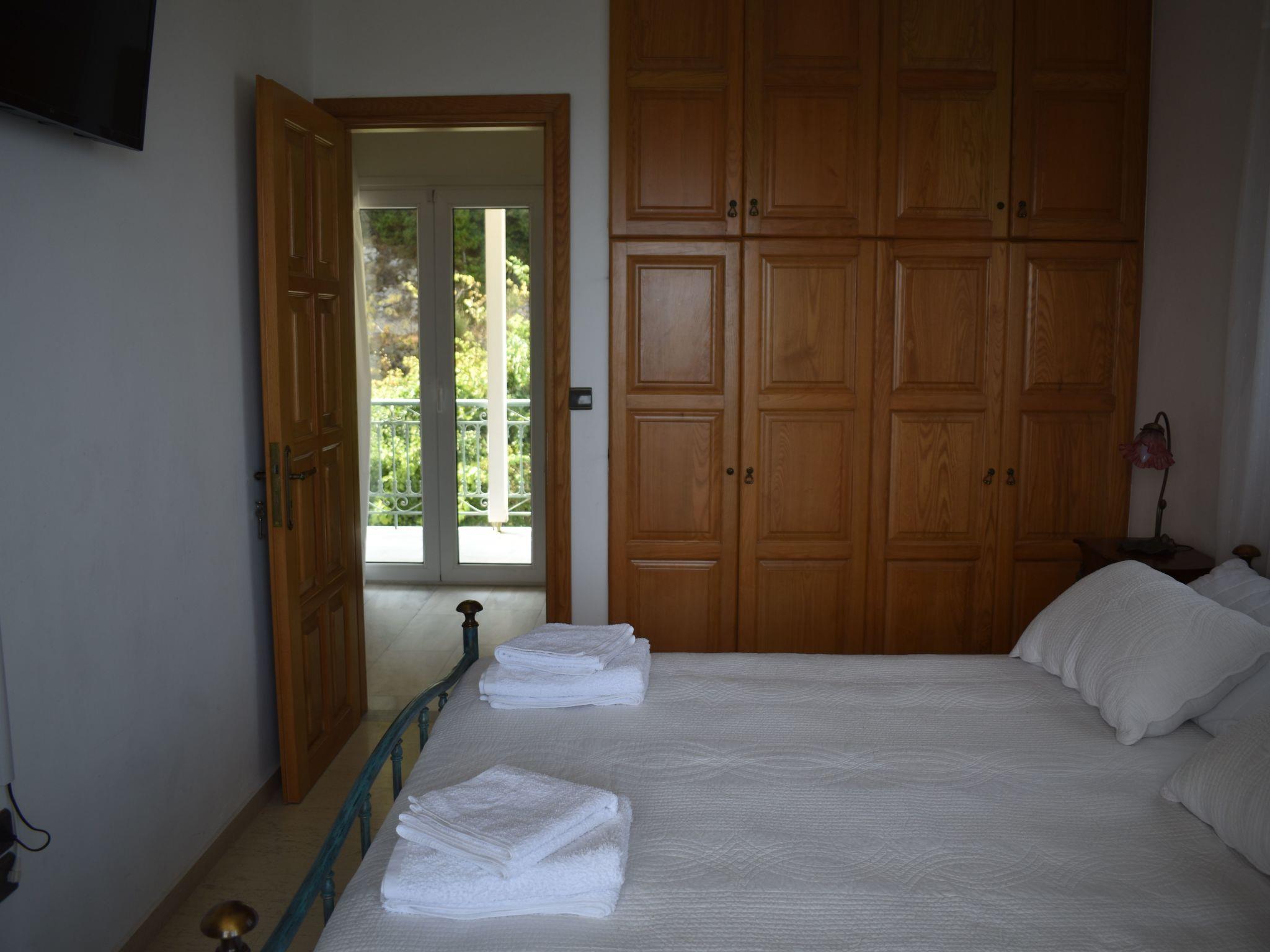 Step outside to discover a shared outdoor oasis, promising relaxation and leisure in equal measure. Dip into the communal pool for a refreshing swim, or bask in the lush surroundings of the communal garden, the perfect backdrop for afternoon lounging. The presence of a balcony invites you to unwind with a book or simply soak up the breathtaking views that envelop the estate, offering glimpses of the Ionian Islands Scorpios and Meganisy.