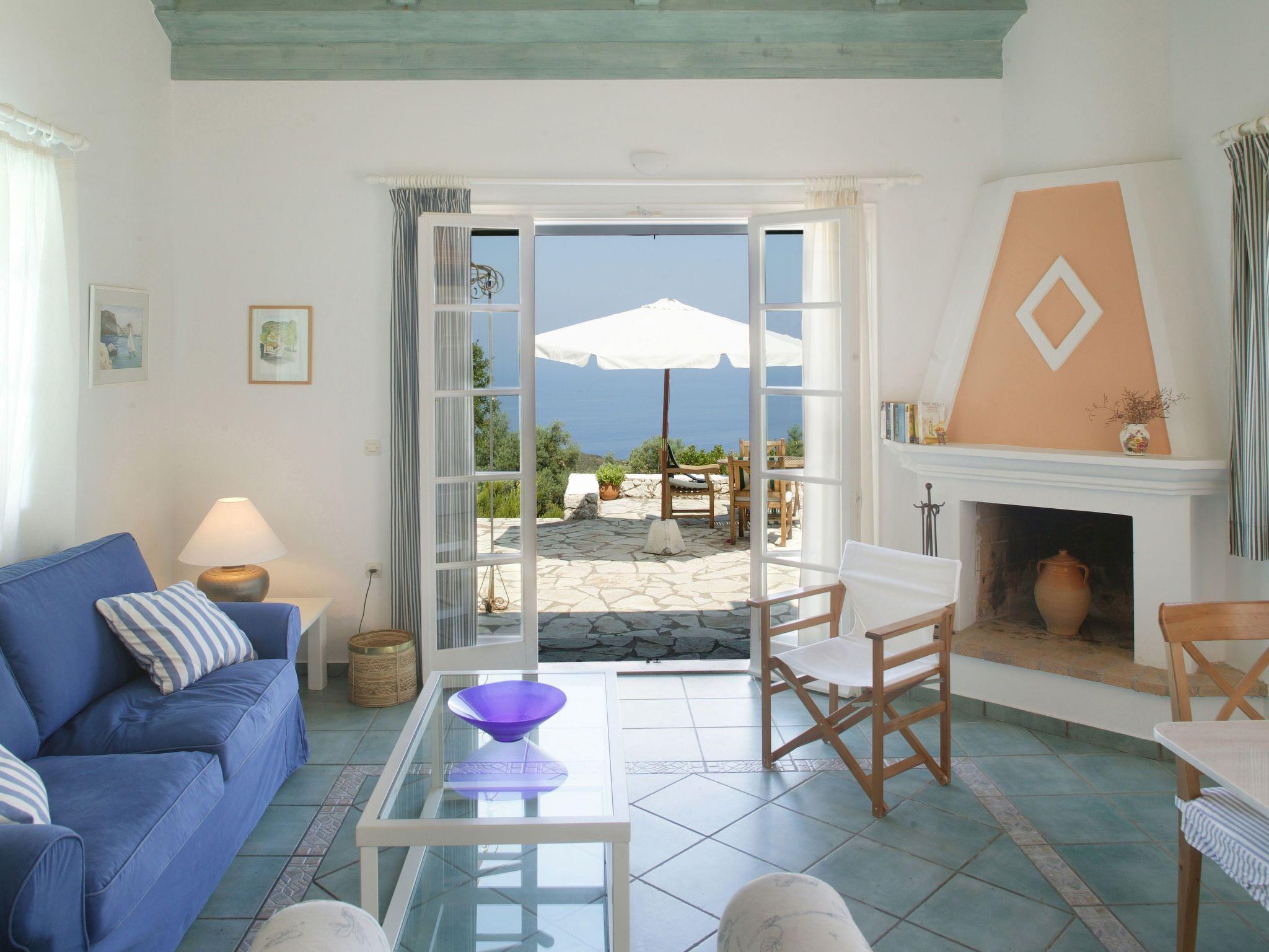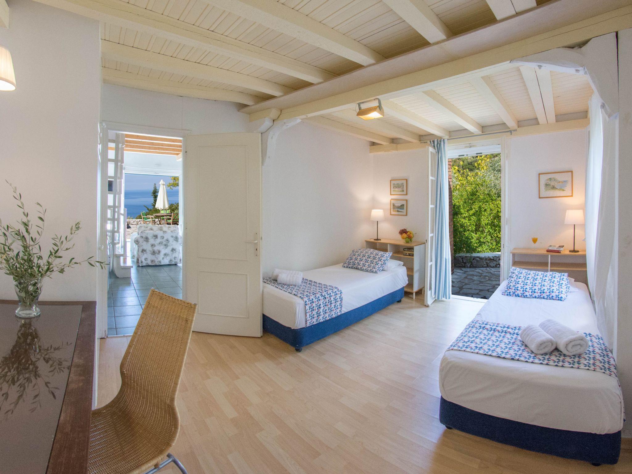 An asphalt drive leads up from the village of Agios Nikitas to the villa. Situated on different levels, natural stone walls, olive trees, shrubs, climbers and cacti surround each villa to create privacy.