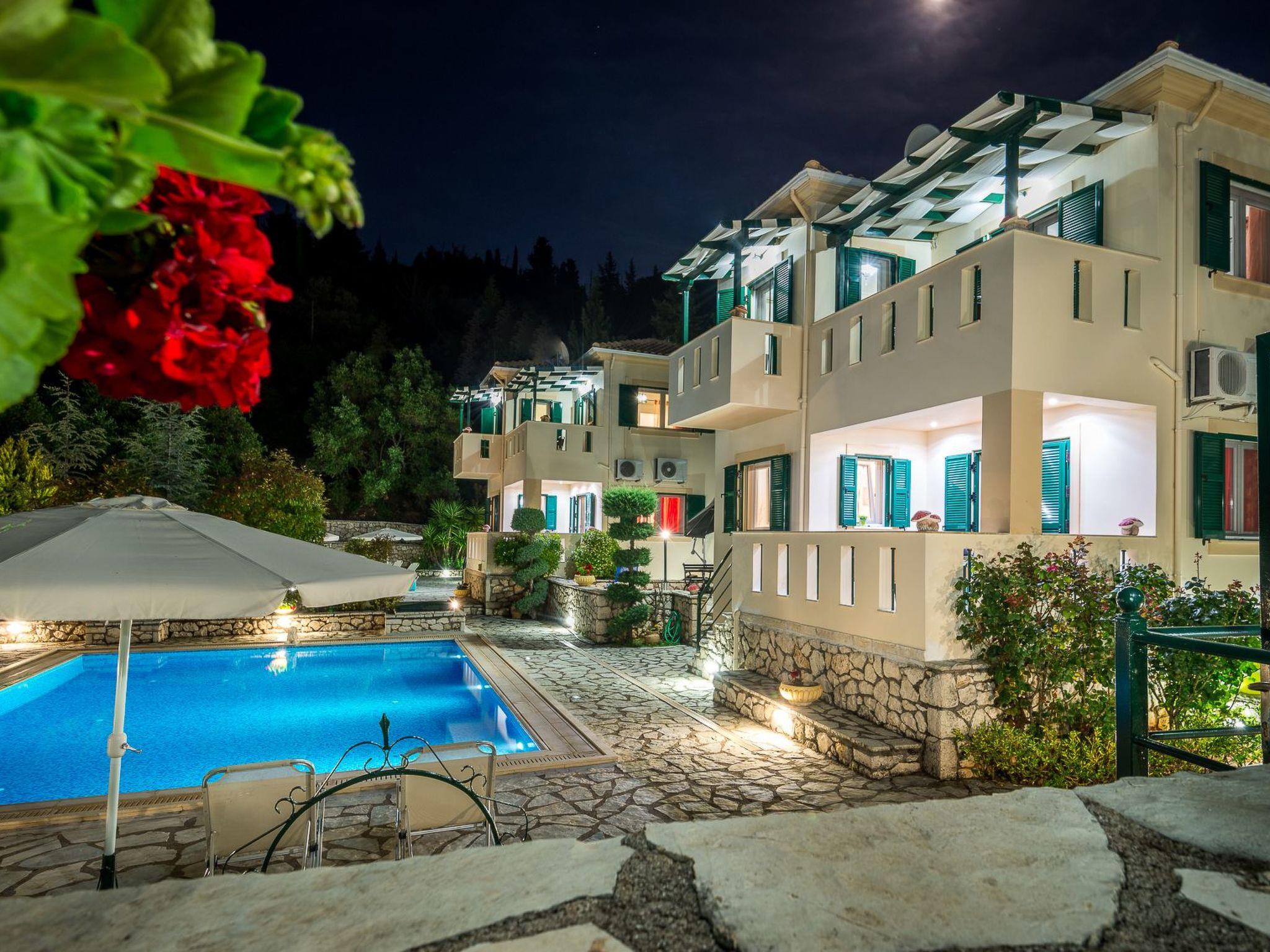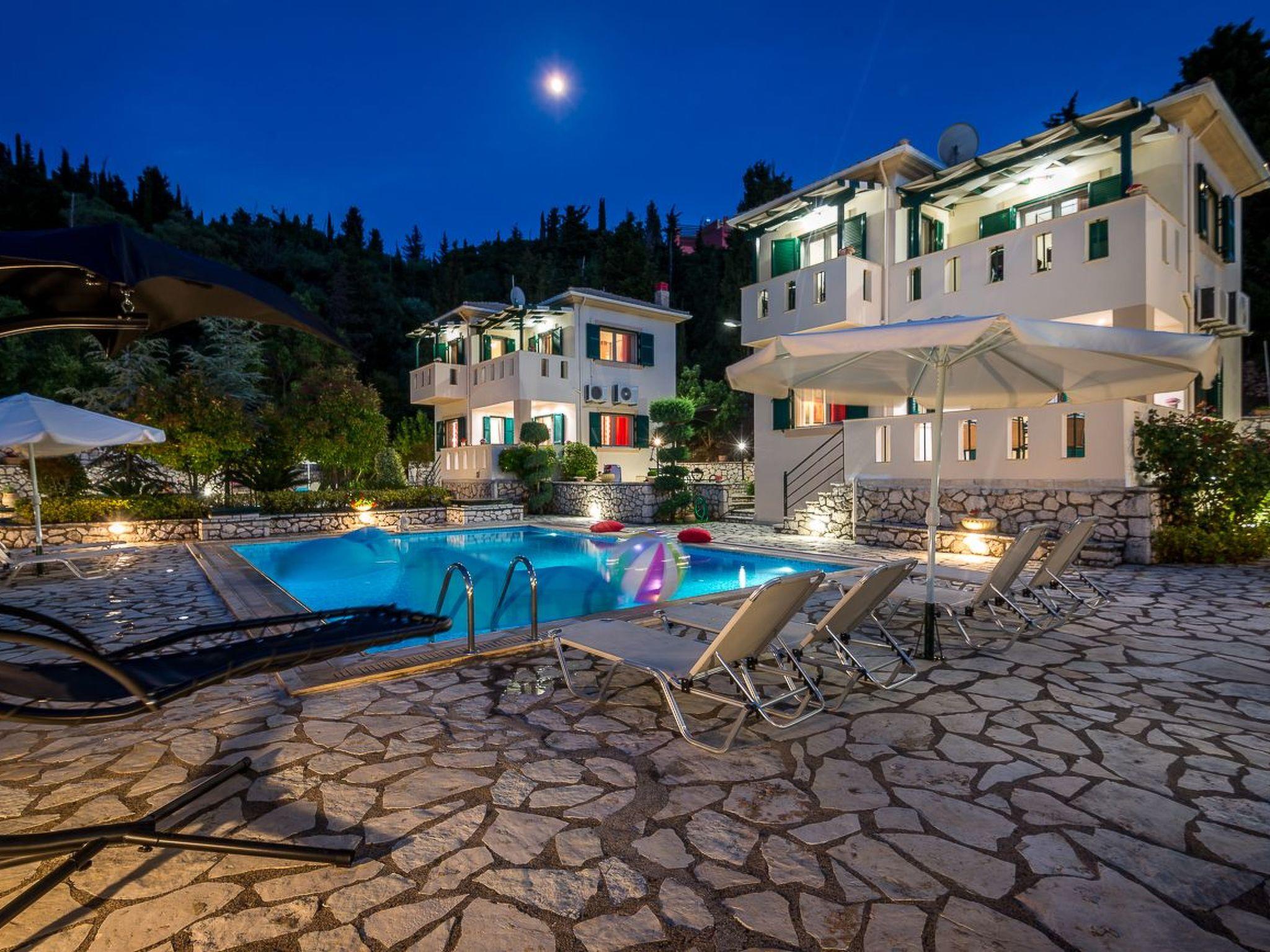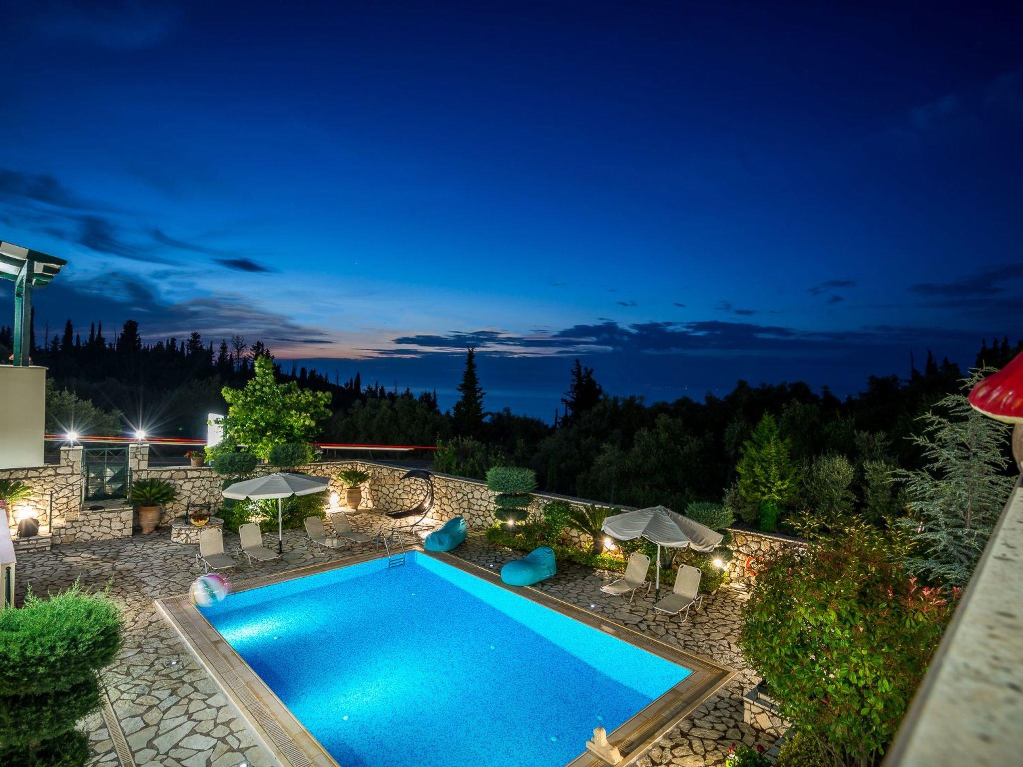 Detached holiday villa on a private land, with a private, illuminated swimming pool and sea view balcony, only 3 km from the beach This is one of two fully detached holiday villas, each with a private swimming pool. They are located approximately 3 km from Agios Nikitas and Kathisma village, northwest Lefkada, Ionian islands complex. The two twin villas are built on a 1500 m² land with no other constructions at a visual distance and therefore guaranteeing your privacy and independency.