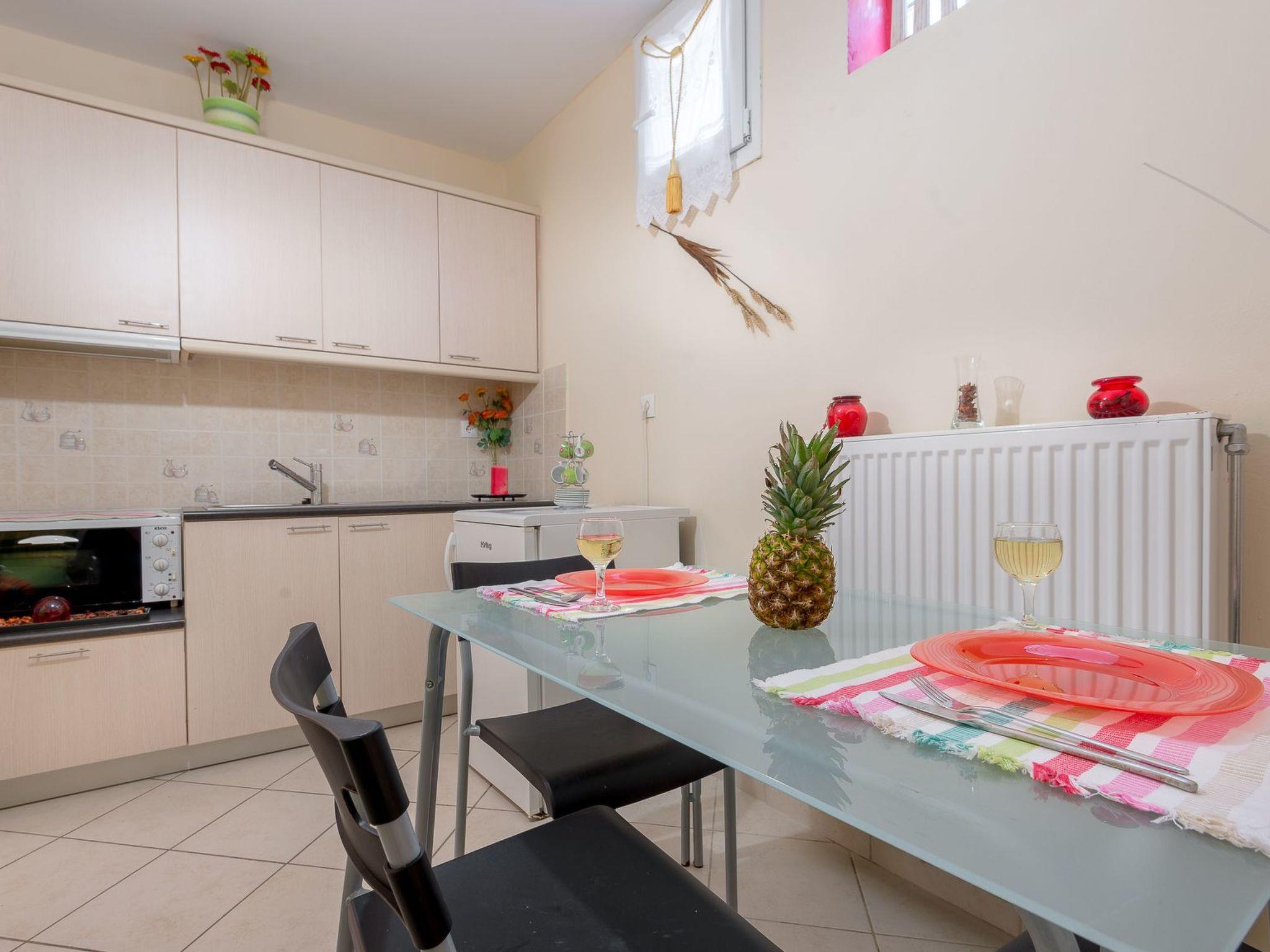 Two bedrooms of the main villa are furnished with a 150 x 190 cm double bed. The third bedroom has a 150 x 190 cm double bed and is located in the basement sunny and airy studio ,which is part of the same building with the main villa . Studio offers also a fully equiped kichenette and has windows in all rooms .