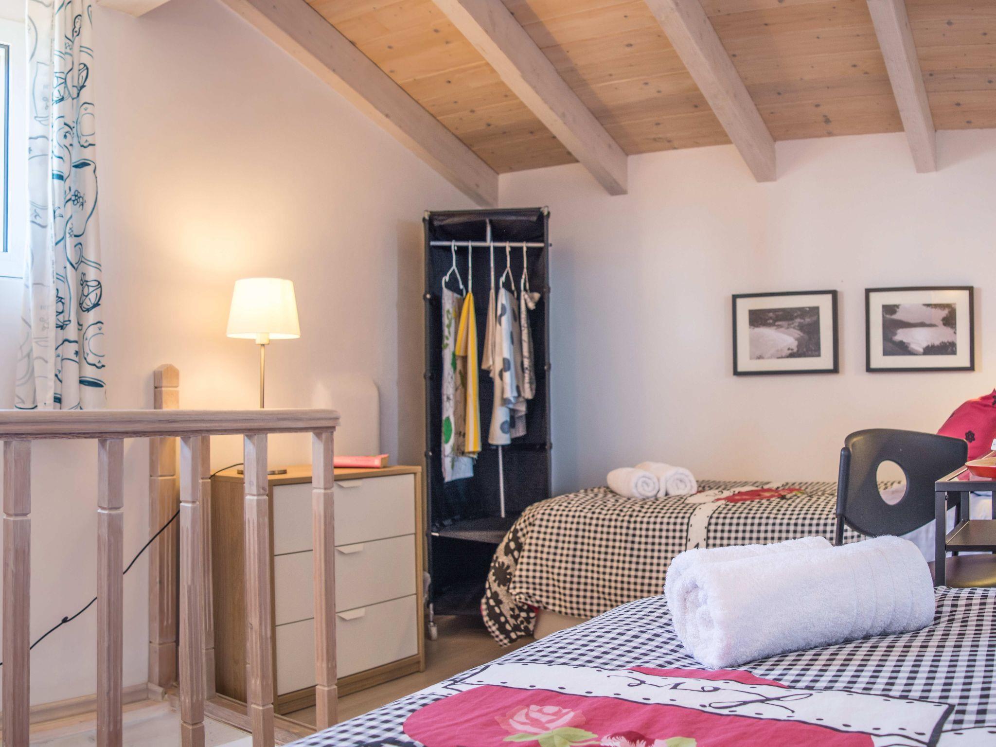 The villa counts approx. 100 m² split in two main levels and an attic, with 2 bedrooms, 2 bathrooms & 1 w.c with a shower, plus the attic as a third bedroom. Entering the villa the main entrance level has an open plan living/dining/kitchen area. The living area has a fire-place and French windows that open onto a wide canopy balcony to the sea views. The dining area has French windows open onto the large swimming pool terrace. Next to the kitchen are the stairs leading up to the attic and down to the bedrooms .There is also one bathroom with shower in common use for this floor and the attic. Staircase leads down to one double bedroom, with en-suite spacious bathroom, leading to big open terrace and one twin bedded room, leading to the same open terrace, next to another bathroom with shower. From the main level, an open staircase leads up to the attic ,as a third bedroom with two single beds.