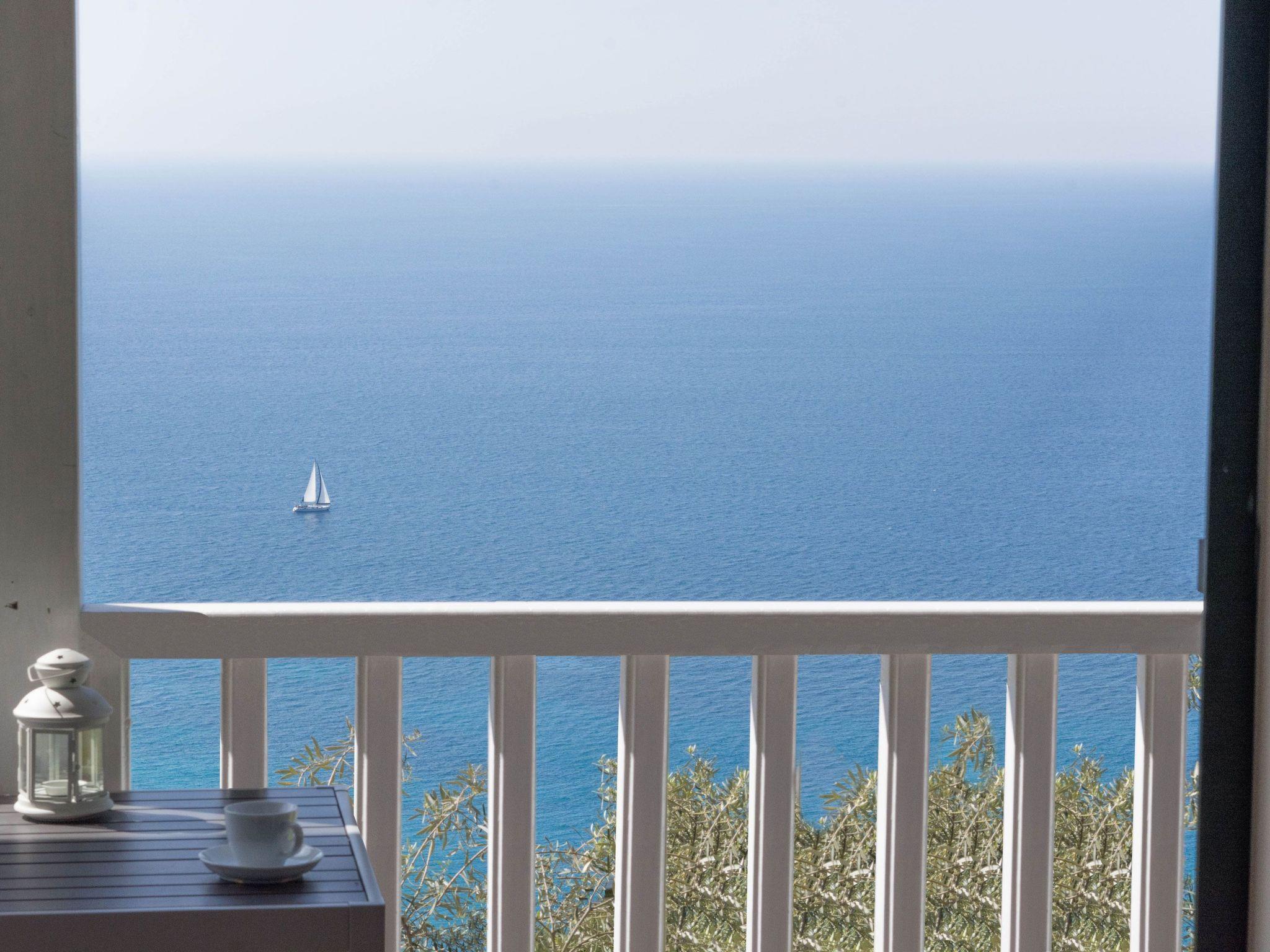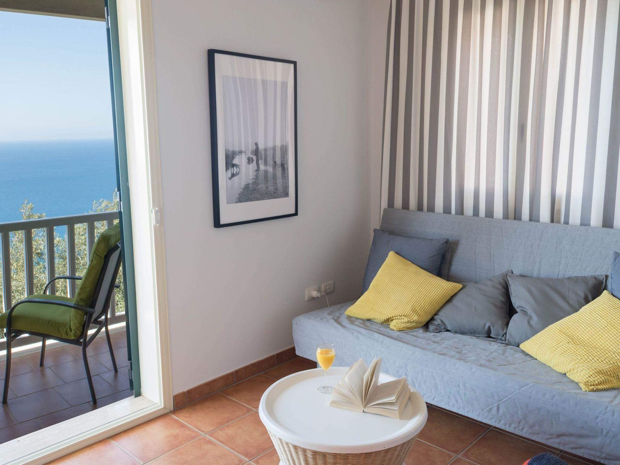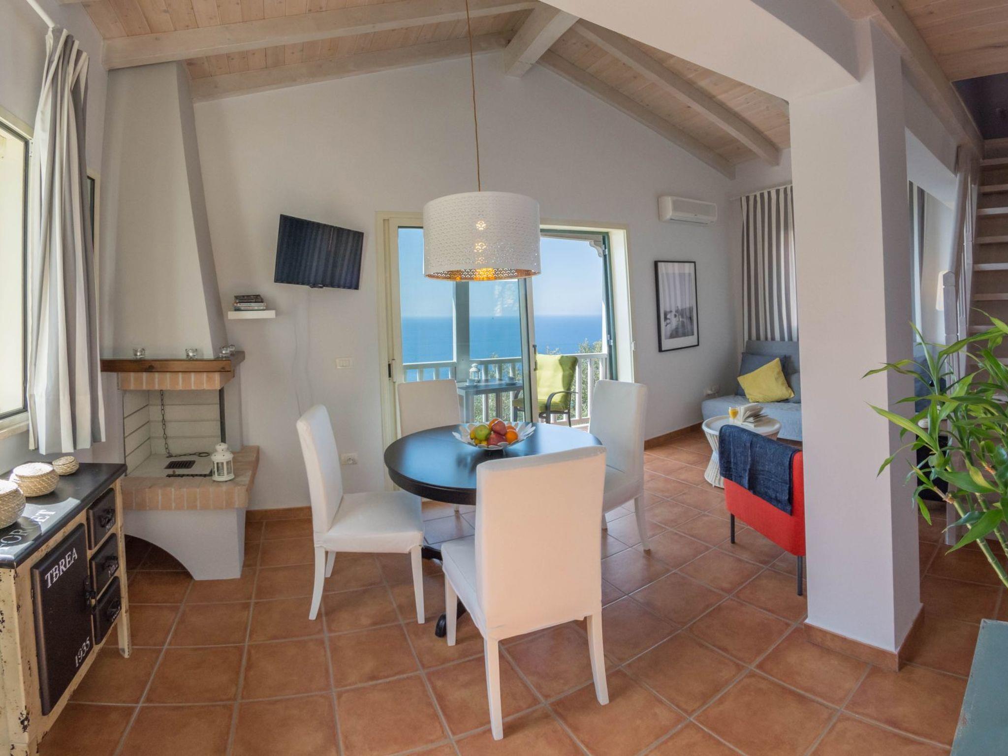 Villa sits on the first level out of the two. The villa has it's own parking space, private swimming pool with patio, outdoor furniture and a BBQ. Also it has uninterrupted sea & sunset views, a shady umbrella to sit under and relax enjoying fresh coffee with breakfast whilst overlooking this view, and listening to the birds of prey "mewing" in the background above the hills. Is perfect! At lunchtime a refreshing cool breeze arrives and dies down just as the sun is about to set.