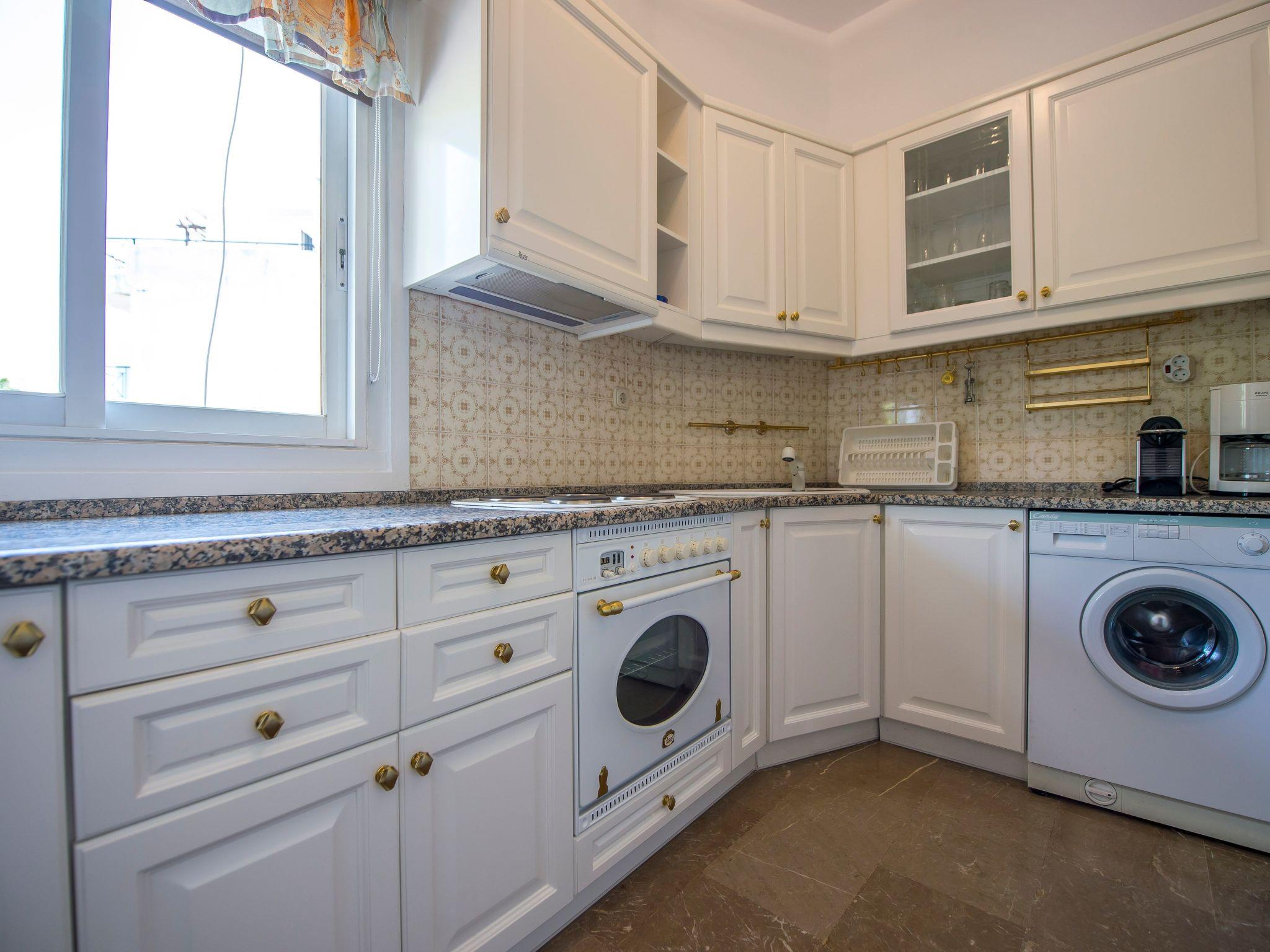 The 50m² apartment is for 2-4 people. It has a bedroom with a double bed, a cupboard and access to the balcony, a living and dining room with an open kitchen and a pull-out sofa bed for two people, a desk and a TV. The kitchen is fully-equipped with a stove, oven, fridge and freezer, dishwasher, microwave and coffee machine, washing machine and a pull-out dining table. A TV, free Wi-Fi and air conditioning are available. The apartment was recently renovated and is in a good condition.