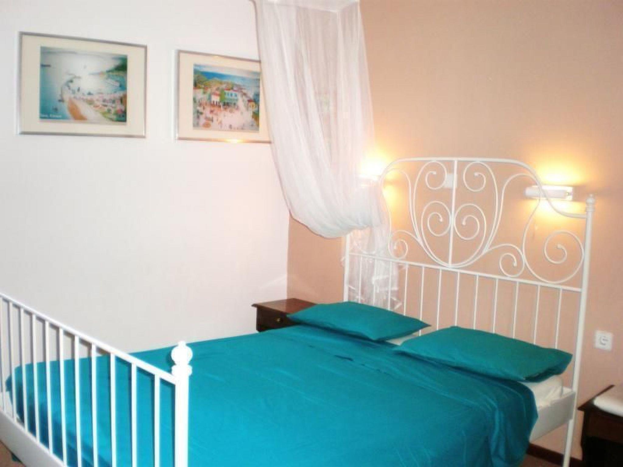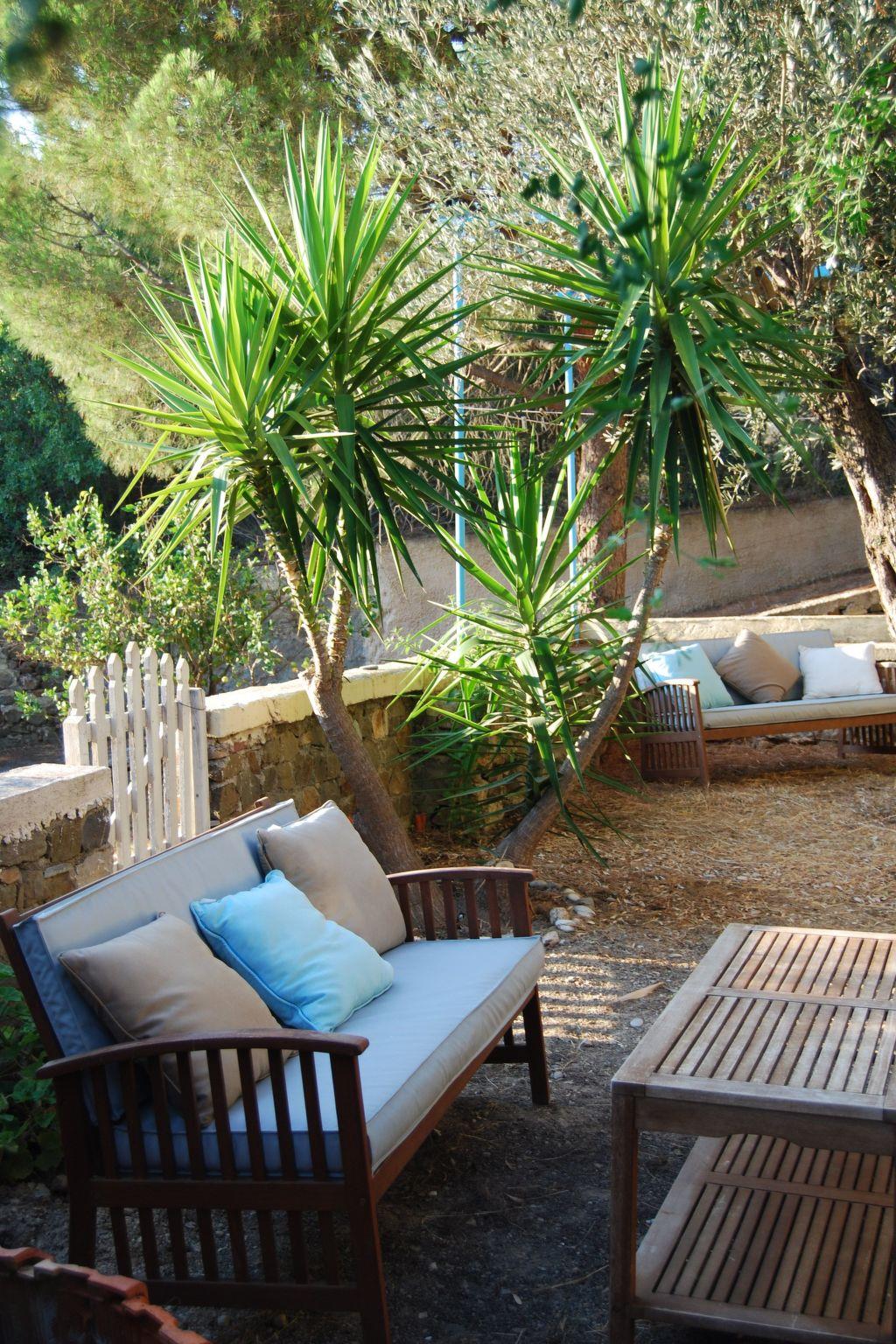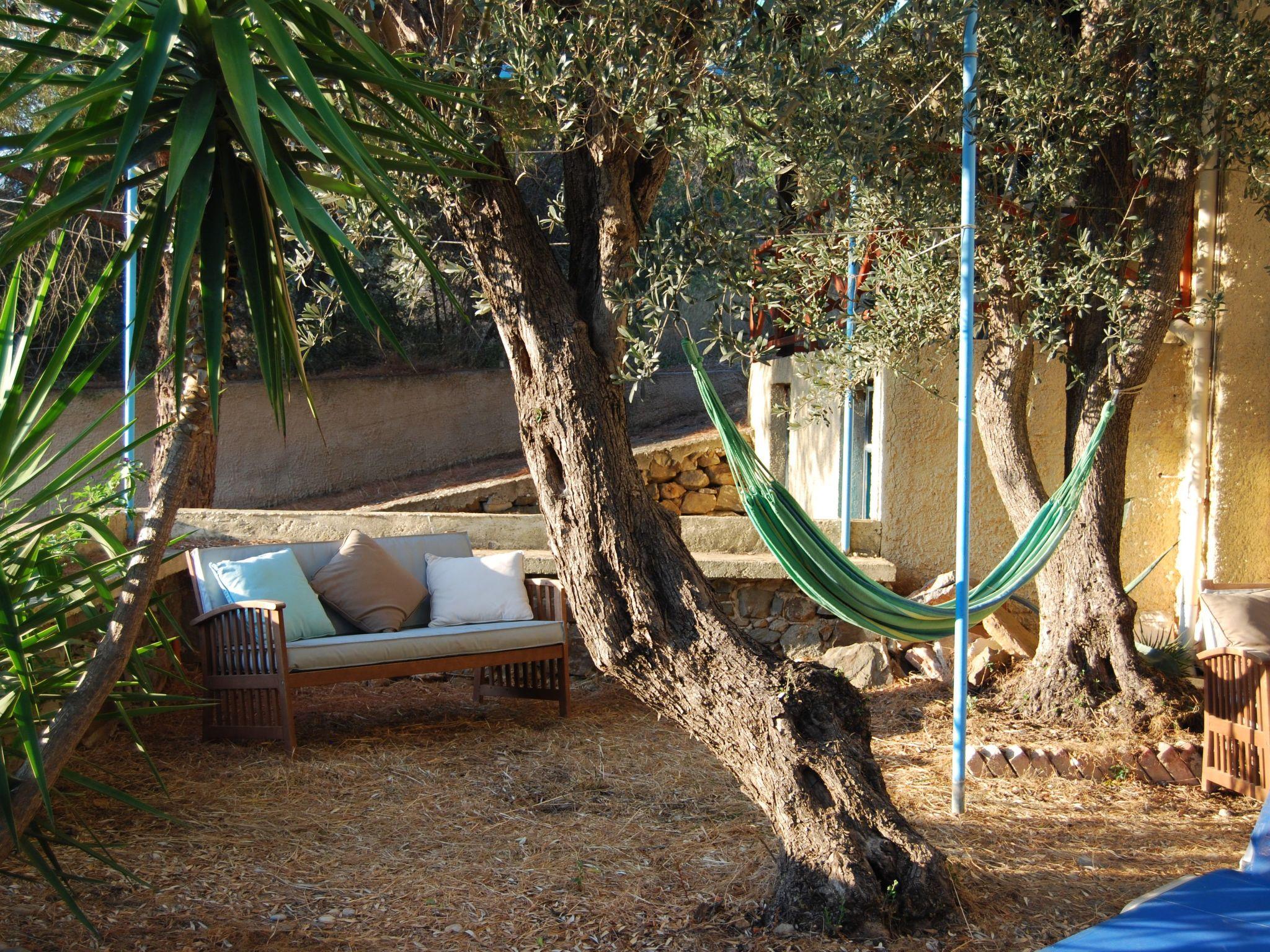 The furnished terrace on the first floor affords a wonderful view of the olive groves and the sea behind it. The garden has a grill and an outdoor shower. There is parking space on site.