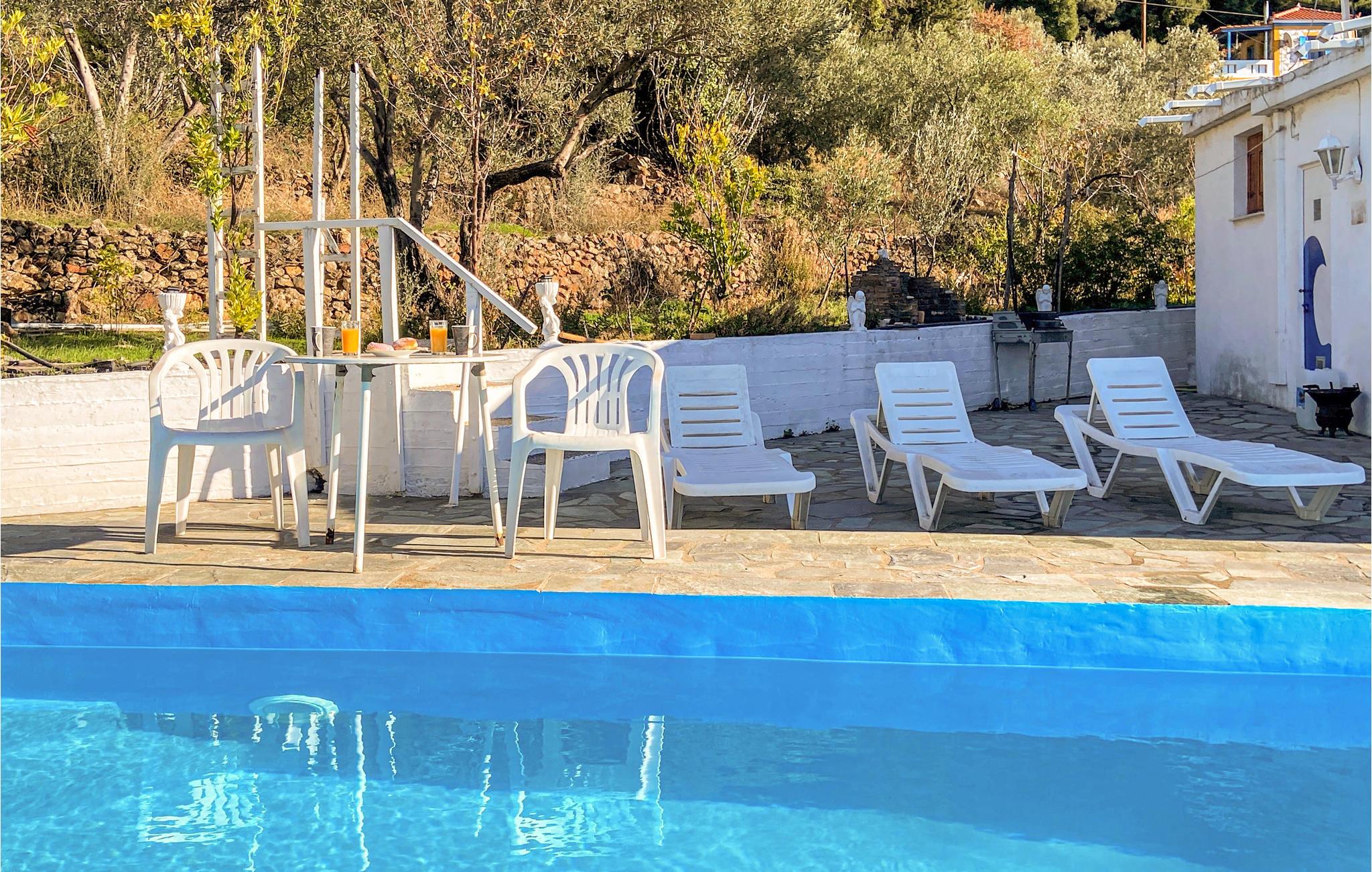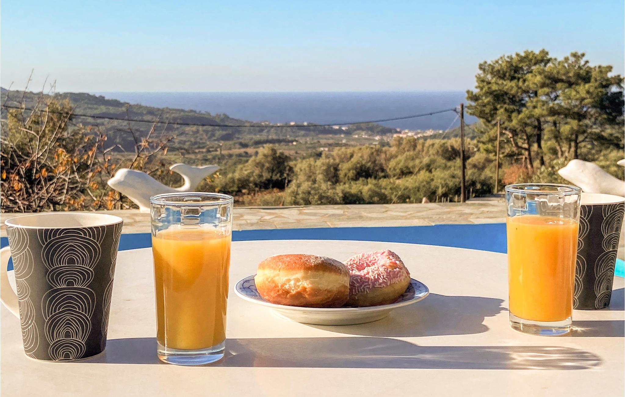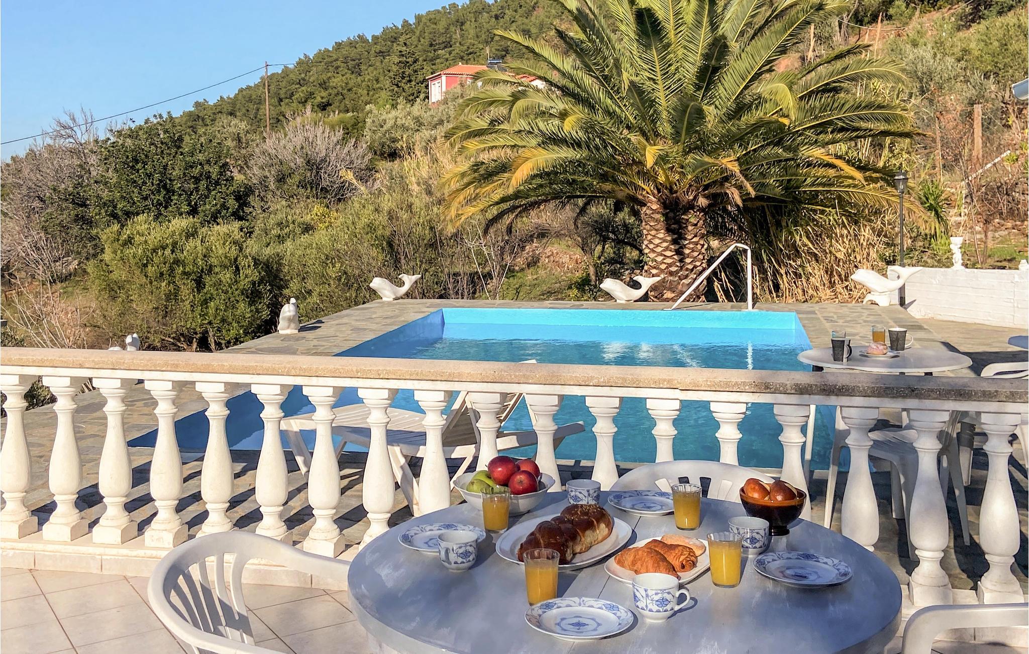 Dette rummelige hus i Idroussa på Samos, tilbyder en ideel kombination af komfort og naturoplevelser. Her kan I slappe af i private omgivelser og nyde den imponerende havudsigt. Udenfor er der en privat swimmingpool perfekt til afkøling under den græske sol, mens I indendørs kan forkæle jer selv med et spa til afslapning.
