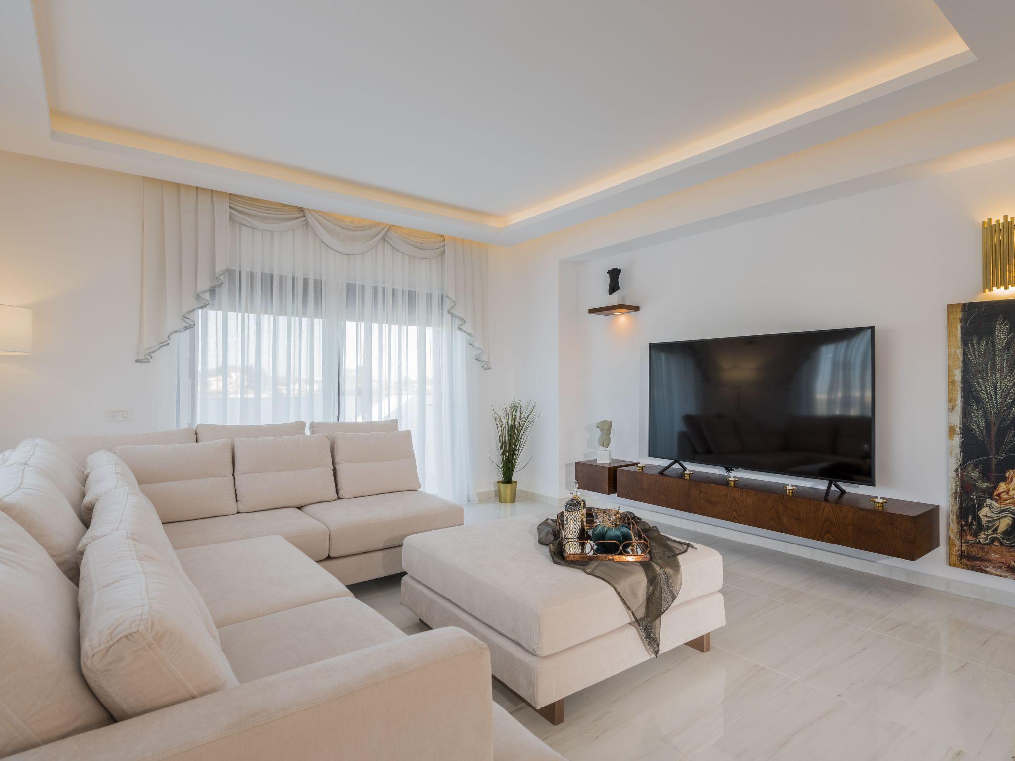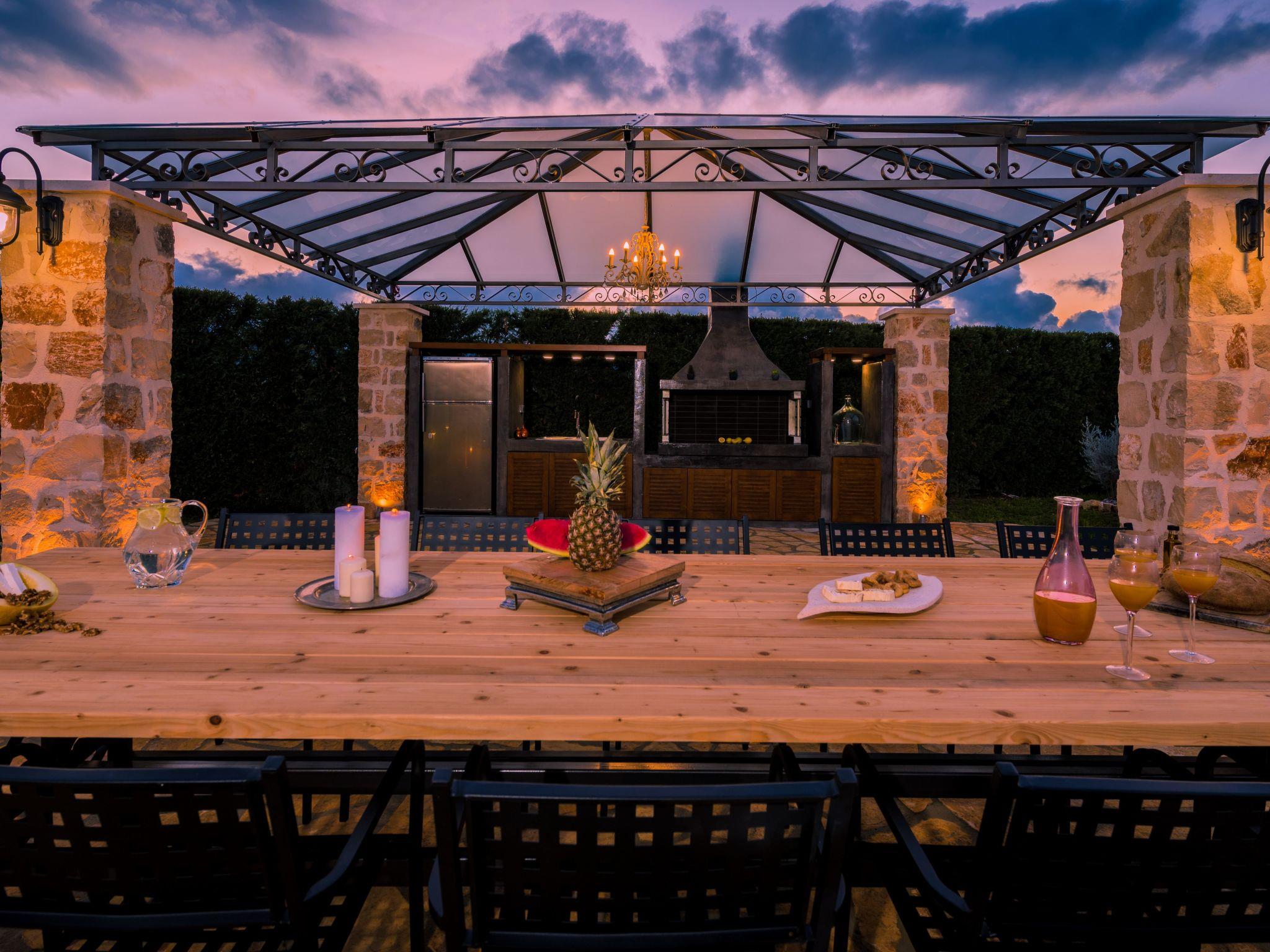 75” Smart TV with Netflix streaming service and a game consoleDesalination of water supplyCoffee machine with coffee capsulesLuxury lined bathrooms with signature amenities and professional hair dryerLaundry room (washer/dryer, iron, ironing board etc)Lavish sheets, bathrobes, bed linen, face/body and pool towels – 100% cottonSlippersBaby crib or cot (on request) free of chargeChildren’s high chairAiming to ensure an unforgettable stay for all our guests, we have spared no expense and have drawn all attention to detail, providing world-class amenities and a 24-hour concierge at your service so that you can enjoy a home-away- from- home feeling. The hand-selected bedding, soft towels, odoriferous soaps and the state-of-the-art, fully-equipped luxury kitchen are a case in point. On top of that, our guests are always treated a delicious Welcome Meal, prepared with fresh, local ingredients by the hostess, Roussa, herself, who also makes sure that the kitchen cabinets as well as the fridge are well supplied with all sorts of goods.