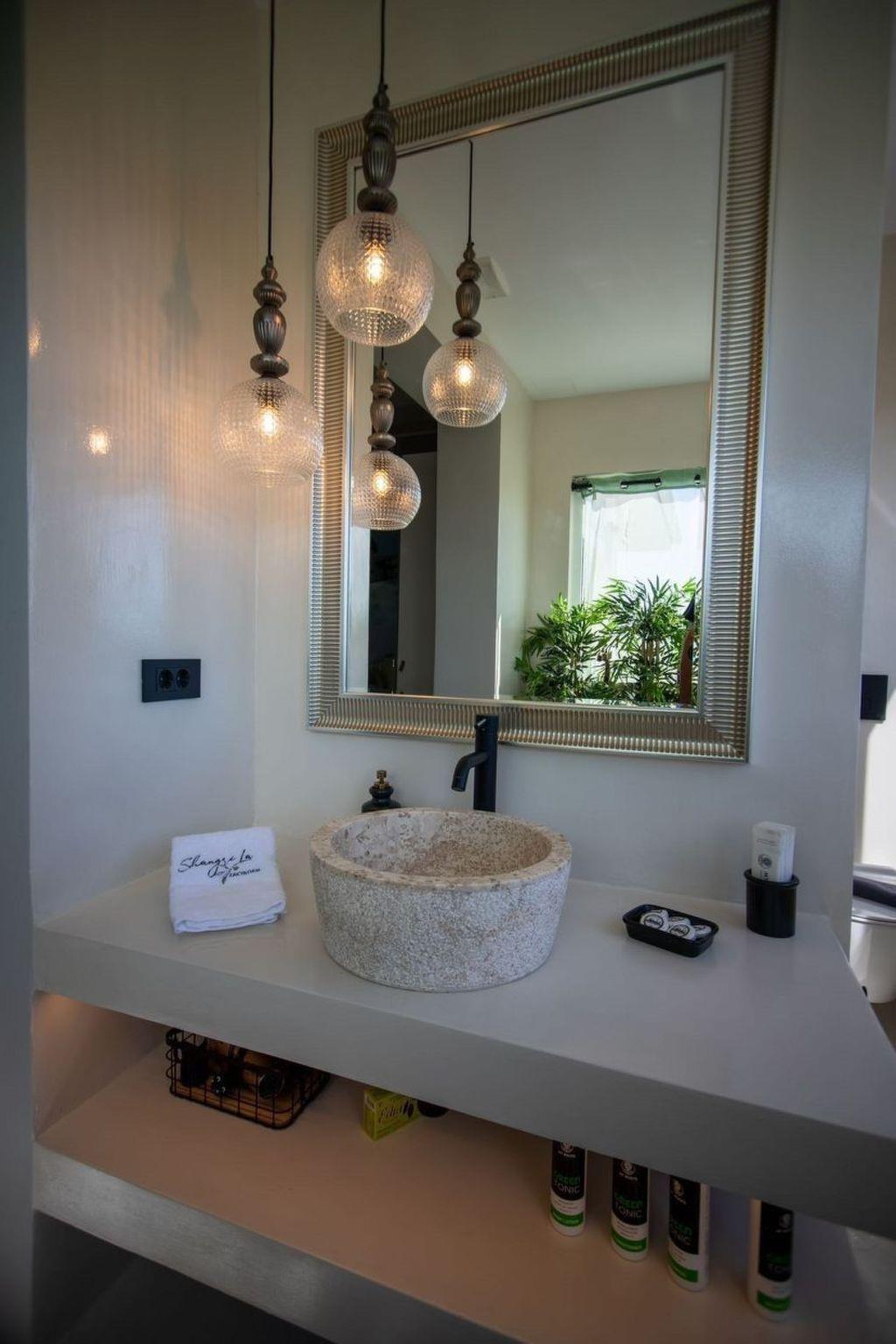 Tropical Pool55 m2 with Sunken Fire Pit Seating Area. Take a dip in our exclusive outdoor pool and experience a sense like no other. Lay on one of our pouf loungers with a glass of champagne, while looking up the deep blue sky. For those who wish to be surrounded by water but do not want to dip, they can simply sit in our sunken sofa and enjoy the shining sun. All guests can enjoy an alfresco shower outdoors before dipping. Otherwise, they can simply laze on one of the comfortable sun beds or on our enormous, shaded parasol. Luxurious Outdoor25 m2 Glass-Vaulted Ceiling Barbeque and Dining Area. Eyeing up the tropical pool, the stunning barbeque area invites our guests into a refreshing breather, establishing itself as “The Place to Be” at all times. Be it barbeque or cooking on the multi-function induction, foodies can enjoy a mouthwatering meal at the aesthetic dining area under the vaulted glass or try a “moveable feast” in the open air, as the table can be removed accordingly. A refrigerator for refreshments, wine or beer as well as a stereo system complete the list of the amenities offered at the barbeque area. Experience FitnessOutdoor shaded open-air spa with gym facilities. Our dreamlike settings in “Villa Shangri La Zakynthos” go the extra step featuring an outdoor spa! Here, health is coupled with enjoyment and enduring regeneration with a view to creating a unique experience. Equipped with a treadmill and a spinning bike for those who wish to stay in shape while on vacation. Bespoke refreshing face and body treatments offered by our expert affiliates upon request. The Bungalow(Sleeps 4)On-land 25 m2 Stone Guest House withfully-equipped kitchen and 1 bathroom. Being well-aware that every imaginable amenity is key to travelling without compromise, we have integrated in our property a bungalow which can sleep 4 guests. The Bungalow has a fully-equipped kitchen, a comfy double bed and a sofa bed. There is also a satellite TV, Internet access and a large shower. Multi-Sport Court & Children’s Fun Area110 m2 – Badminton, Volleyball, Basketball, Pickle ball, Paddle Tennis, Hopscotch. Featuring a wooden playground. Invaluable family moments could not be excluded from “Villa Shangri La Zakynthos”. Our list of amenities is also enriched with a multi-sport court. There, youngsters and adults are presented with the opportunity to give a suite of several games a try. In addition, a spacious wooden playhouse is available, where fairy tales come to life.