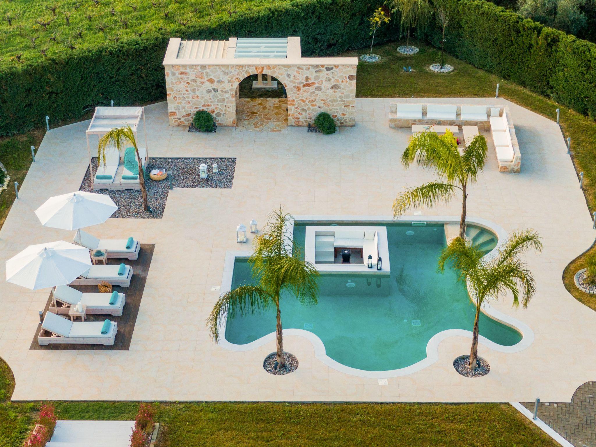 Discover "Villa Shangri-La Zakynthos"“Villa Shangri-La Zakynthos” is one of the most zakynthos luxury villas! It is carved out to be your own personal hideaway, a reminiscent of a Mediterranean oasis nestled amongst fruitful vineyards, surrounded by lush greenery and encapsulating Grecian architectural details which ignite the senses. You and your guests will be astounded as you stay in comfort and style when you book one of the most sought-after luxury villas in Zakynthos. Indulge yourself in a unique blend of thrilling indoor and outdoor living, perfect for any type of stay, whether you would like to host an intimate gathering or simply unwind in a deep anaesthetizing tranquility. “Villa Shangri-La Zakynthos” is the ideal retreat for the mind, body and soul. On the ground floor