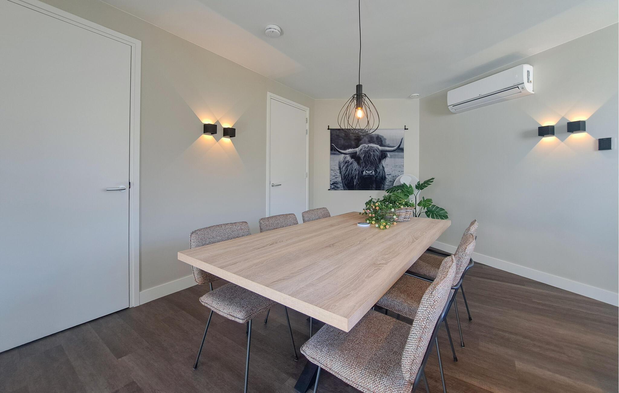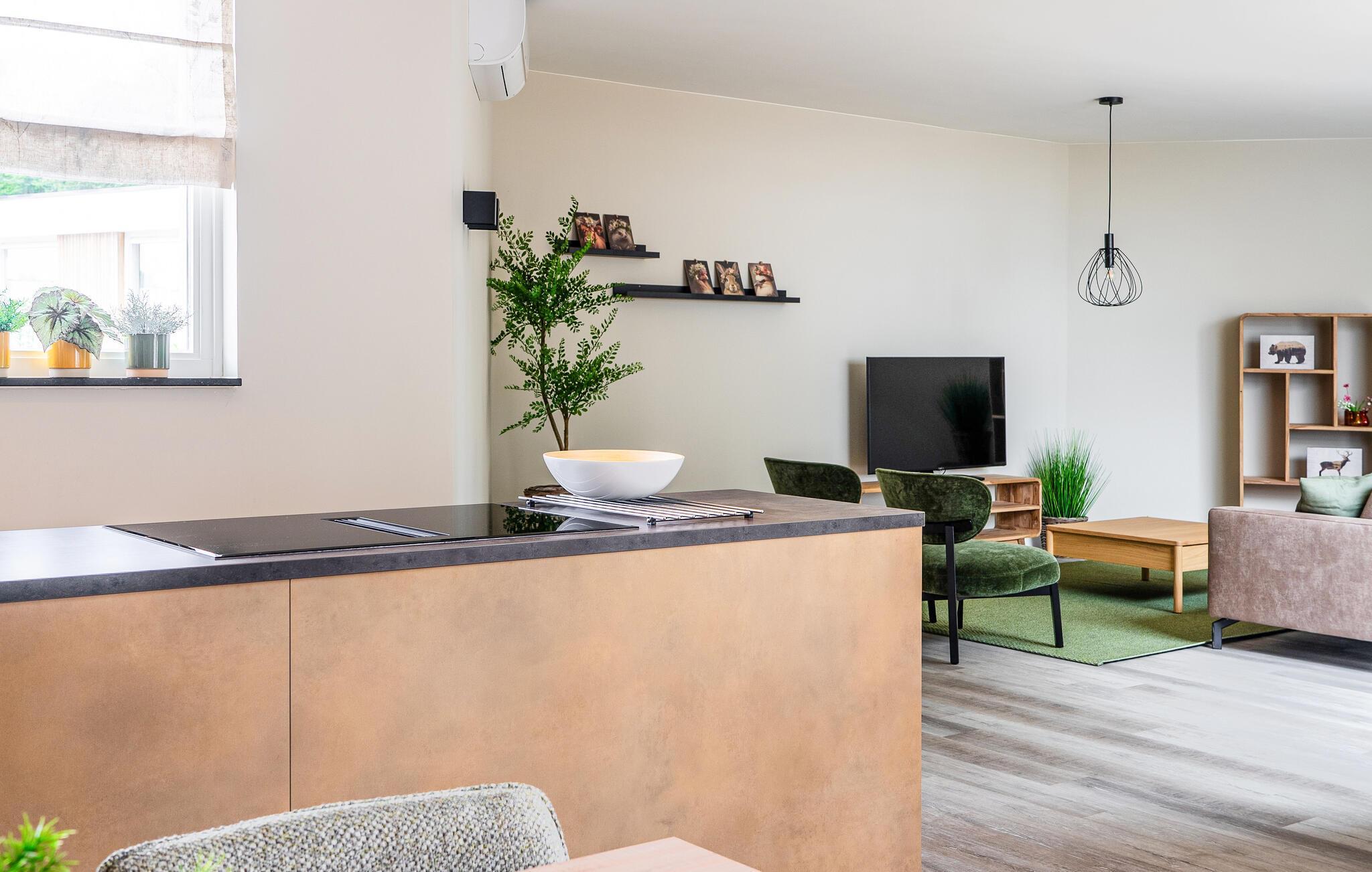 Velkommen! Dette lyse og venlige feriehus i udkanten af Nationalparken Maasduinen byder jer velkommen med en smagfuldt indrettet indretningsstil. Saml familien i den hyggelige siddekrog, og nyd opholdsstuen, hvor I kan hygge jer i sofaen til en afslappende filmaften. Glæd jer til fælles madlavning i det moderne køkken, og nyd jeres måltider ved det stilfulde spisebord.