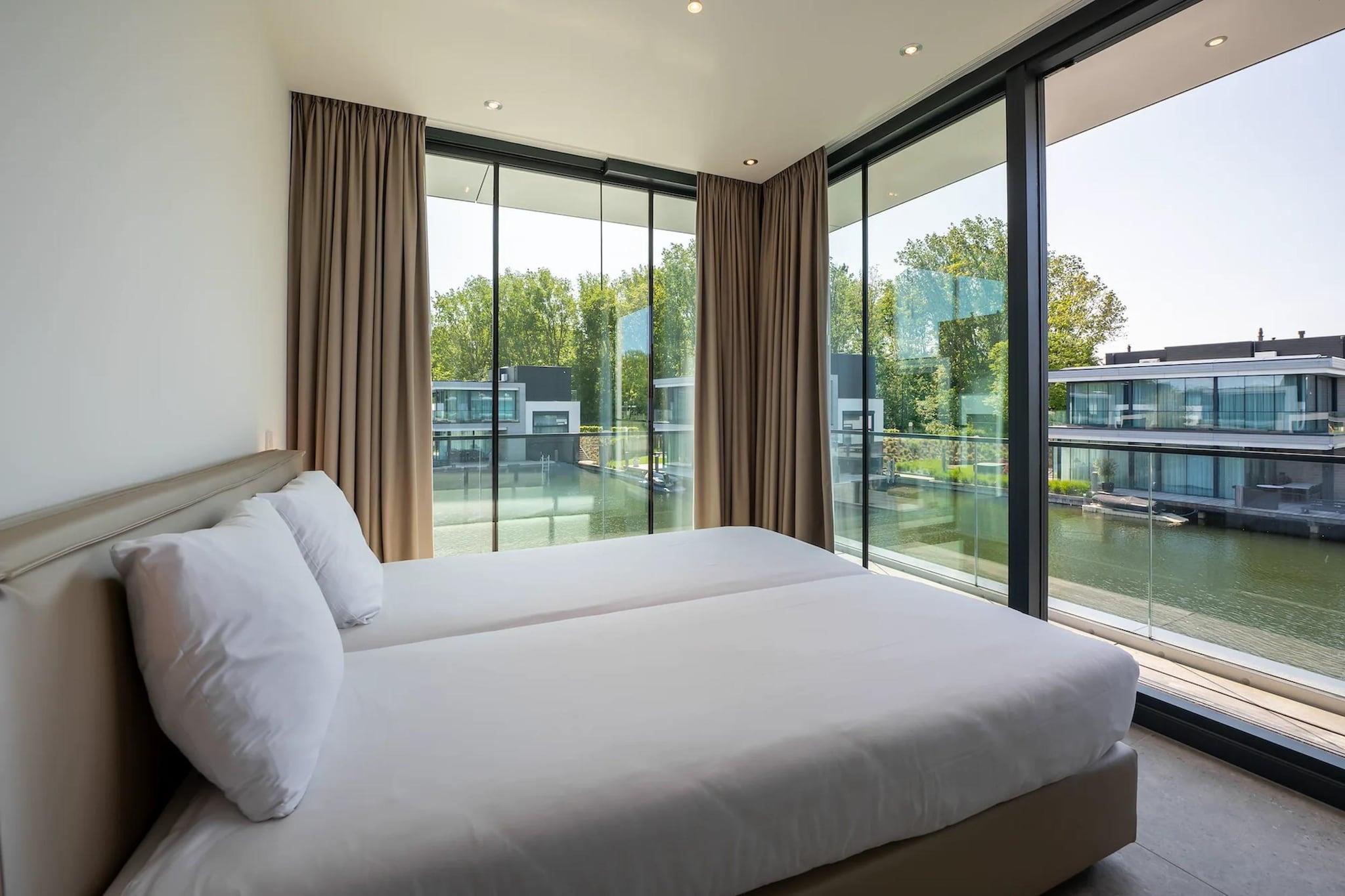 Luksus Waterfront Living for hele familien Velkommen til din drømmeferie i denne rummelige, moderne vandvilla i Harbour Village, beliggende ved den naturskønne Veere-sø i Zeeland. Med slank arkitektur, 173 m² gennemtænkt boligareal og gulv-til-loft glasvinduer tilbyder denne 2019-byggede villa den perfekte blanding af elegance og komfort. Uanset om du krøller dig sammen ved den hyggelige gaspejs eller nyder solnedgangen fra den store terrasse, er afslapning garanteret. Kæledyr er også velkomne - hvilket gør dette til et ideelt sted for hele familien, inklusive lodne venner! Slap af i stil og naturlig skønhed Træd indenfor for at opdage et design i to niveauer med et luksuriøst køkken med avancerede hvidevarer, en indbydende spiseplads og en stilfuld stue i vandniveau, der åbner ud til en delvist overdækket terrasse. De fire soveværelser har hver en-suite badeværelser med brusekabine og smuk udsigt over vandet. Med gulvvarme, en have, en tagterrasse og faciliteter som vaskemaskine, tørretumbler og privat parkering er denne villa skabt til ubesværet komfort året rundt. Kæledyrsvenlige eventyr og lokale smagsoplevelser Udforsk nærliggende strande og naturstier, hvor hunde kan strejfe frit, såsom områderne uden snor ved Veerse Meer eller langs digerne nær Arnemuiden. Du finder også hyggelige caféer og restauranter ved vandet i Middelburg og Veere, der byder kæledyr velkommen på deres terrasser – perfekt til frokost med din hvalp ved din side.