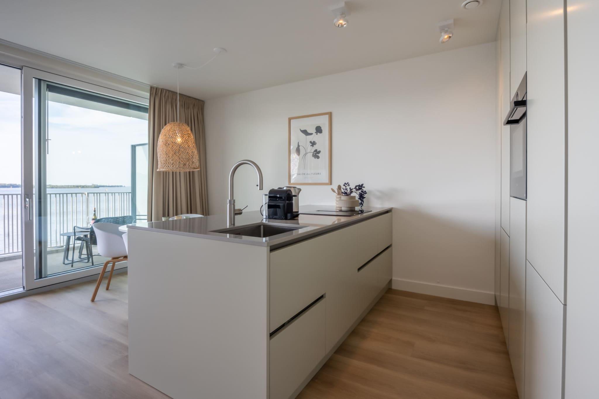 Luksus og komfort er i højsædet ved Veerse Wende-lejlighederne. Den unikke beliggenhed ved Veerse Meer, den private lystbådehavn og disse lejligheders eksklusivitet gør dette sted til den perfekte base for en ferie i Zeeland. Læg dertil den betagende udsigt, og du vil aldrig hjem igen! Denne lejlighed er udstyret til 4 personer og ligger på anden sal i komplekset. Entréen giver adgang til to rummelige soveværelser med eget badeværelse. Soveværelserne er hver udstyret med en dobbeltseng. Begge soveværelser har badeværelse med håndvask og bruseniche. I hallen er der separat gæstetoilet. Den lyse og smagfuldt indrettede stue har et behageligt opholdsområde og et Smart TV med udenlandsk pakke. Fra stuen har du adgang til den rummelige altan (eller terrasse), hvor du kan nyde en betagende udsigt over det store Veerse Meer hele dagen lang. Bådene sejler forbi her til de tidlige timer, mens du nyder et godt glas vin. Det rummelige, luksuriøse køkken er udstyret med indbyggede hårde hvidevarer såsom opvaskemaskine, kombiovn, induktionskomfur, Quooker og køleskab med fryser. Der er en Nespresso kaffemaskine til den rigtige kaffeelsker. Ved det attraktive spisebord kan du nyde lange aftener med spisning med hele din gruppe. Lejligheden har en privat parkeringsplads. Du kan fortøje din egen båd ved din lejlighed ved din egen fortøjning i lystbådehavnen og sejle ind på Veerse Meer til enhver tid for en dagstur til Middelburg eller maleriske Veere. Du kan opbevare dine cykler i det udendørs skur. Bemærk: Billederne giver et indtryk af, hvilken type bolig du bestiller. Vi vil tildele en bolig baseret på tilgængelighed.