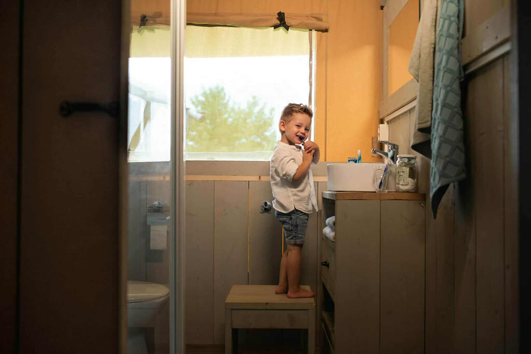Oplev charmen ved luksuriøs glamping i dette rummelige 7-personers safaritelt på Camping Si-Es-An, perfekt beliggende nær den store legeplads og omgivet af fredeligt landskab. Dette komfortable tilflugtssted er ideelt for familier og naturelskere og kombinerer friheden ved camping med alle de moderne bekvemmeligheder, der findes i hjemmet. Kæledyr er også velkomne, hvilket gør det til et godt valg for gæster, der ønsker at tage deres firbenede ledsagere med på en sjov udendørsferie. Safariteltet tilbyder et stort, åbent opholdsområde med en hyggelig hjørnesofa, spiseplads og et legende indendørs område med rutsjebane og spil til børn. Det fuldt udstyrede køkken inkluderer køleskab med fryser, kombineret mikrobølgeovn, kogeplader, emhætte, opvaskemaskine og kaffemaskine, der giver alt, hvad du behøver for nem selvforplejning. Det moderne badeværelse har bruser, toilet og håndvask, hvilket sikrer bekvemmelighed under dit ophold. Sovepladserne inkluderer to enkeltsenge, et trepersonersværelse med en køjeseng og en unik sovekrog under legeområdet, der komfortabelt rummer op til syv gæster. Træd ud på den overdækkede veranda, hvor du kan slappe af på træloungemøblerne og nyde eftermiddags- og aftensolen med udsigt over campingpladsen. Gratis Wi-Fi og aircondition er inkluderet, og rygning er ikke tilladt indenfor. Campingpladsen tilbyder mange familievenlige faciliteter såsom et brasserie, takeaway med snacks, legeplads, cykeludlejning og vandre- eller cykelruter gennem det smukke Overijssel-landskab.