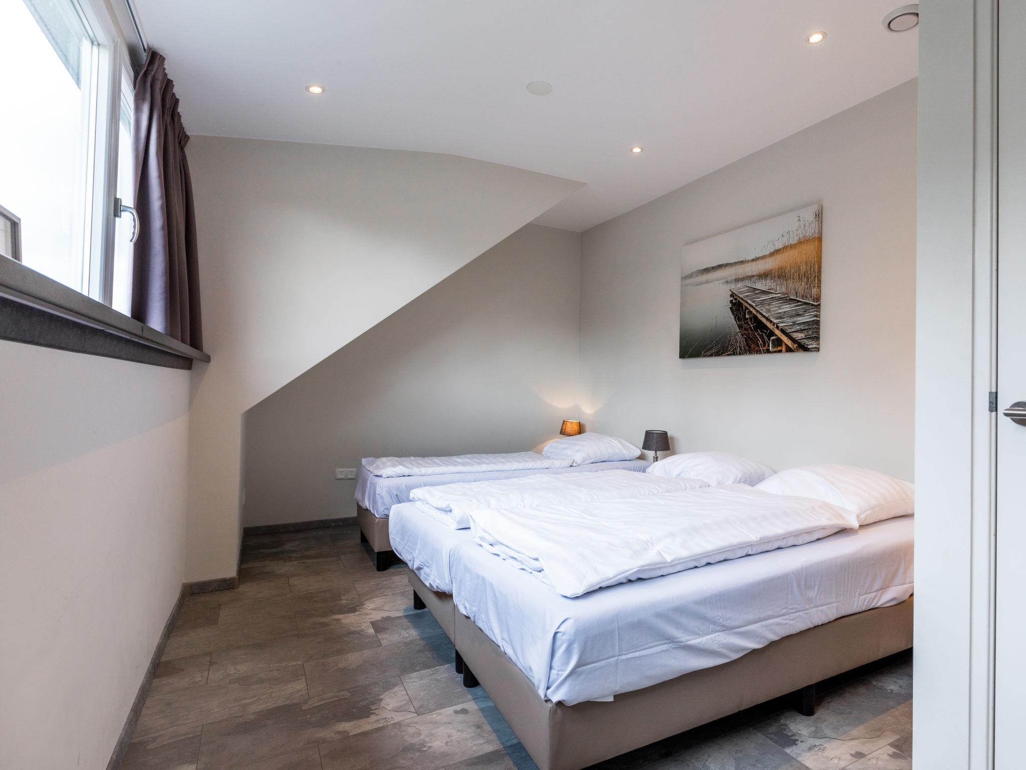 "Bemelbosch", 7-room house 150 m2 on 2 levels. Spacious and bright, comfortable and modern furnishings: entrance hall. Open living/dining room with dining table, TV and international TV channels (flat screen). Exit to the garden, to the terrace. 1 room with 2 beds. 1 room with 1 x 2 bunk beds. Open kitchen (dishwasher, 5 ceramic glass hob hotplates, toaster, kettle, electric coffee machine, combination microwave). Shower, sep. WC, double hand-basin. Heating. Upper floor: 2 rooms with sloping ceilings, each room with 3 beds. 2 rooms with sloping ceilings, each room with 1 bed. Shower/WC, double hand-basin. Terrace furniture. Facilities: children's high chair, baby cot. Internet (WiFi, free). Parking (3 cars) at the house. Please note: non-smokers only. Smoke alarm.