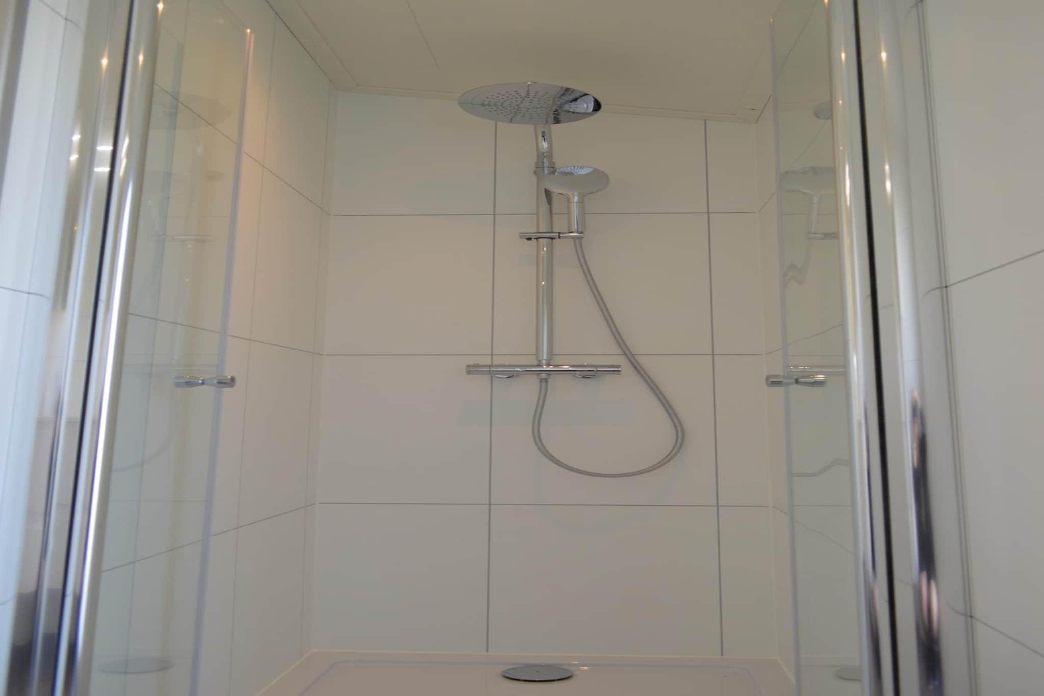 Åbent køkken(elkedel, brødrister, kaffemaskine), soveværelse(enkeltseng, enkeltseng), soveværelse(enkeltseng, enkeltseng), badeværelse, badeværelse, toilet, toilet, bruser, bruser, parkering, parkering
