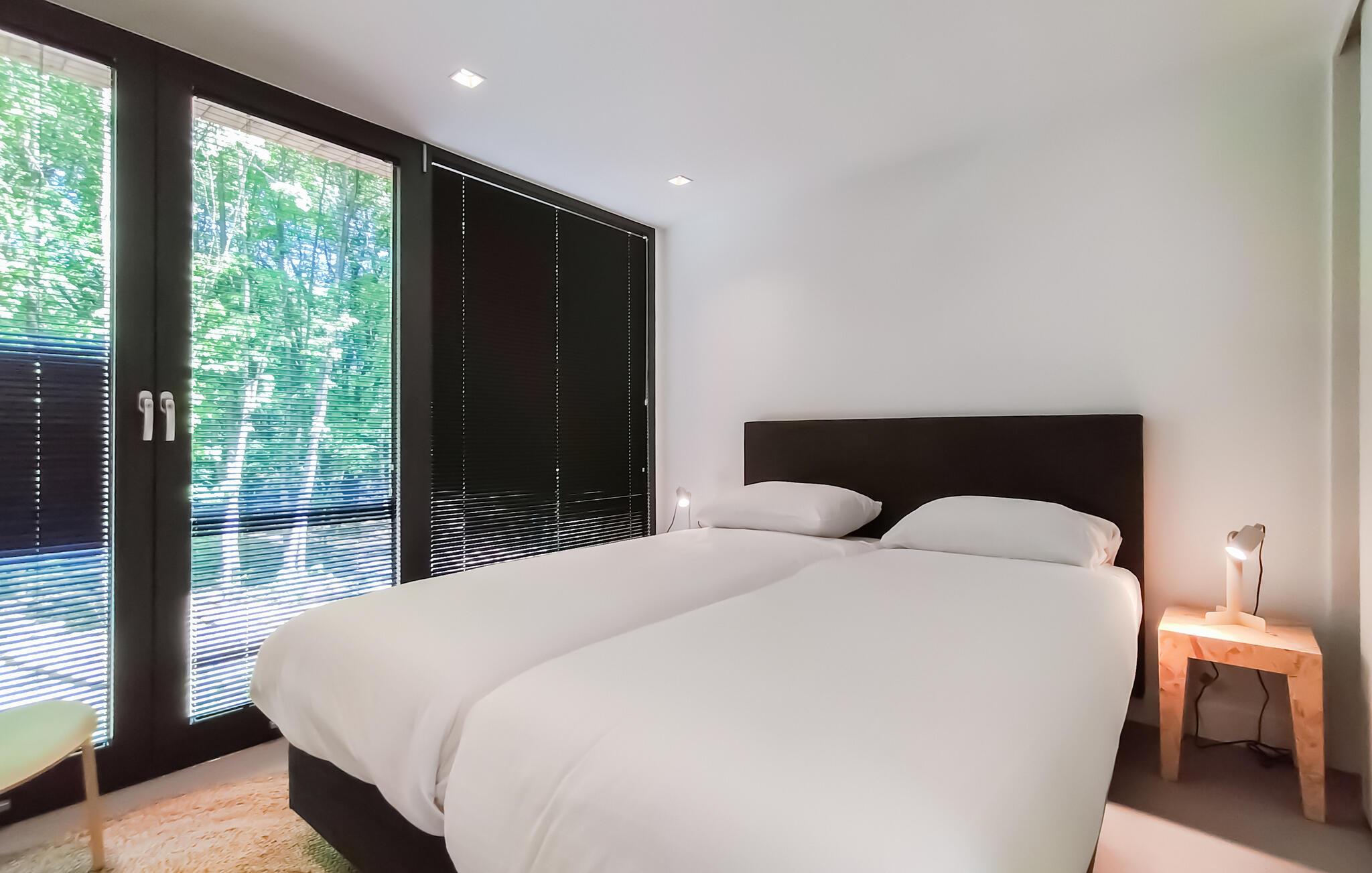 Denne vidunderlige bolig ligger på en stor, privat grund i udkanten af ??nationalparken De Hoge Veluwe og er et sandt ferieparadis. Huset byder på masser af komfort og en flot, moderne indretning med gulv-til-loft-vinduer, der giver masser af lys og panoramaudsigt til det fri. Efter en aktiv feriedag kan I gøre det ekstra lækkert med lidt wellness i saunaen, før I finder jer til rette i stuen med brætspil eller en hyggelig filmaften.