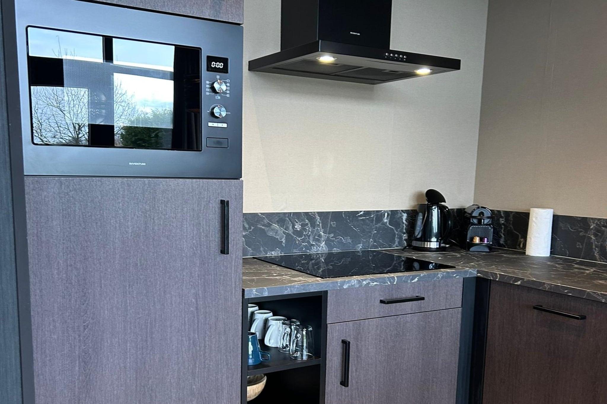 Wellness Lodge Specht ligger midt i de rolige skovområder i Dalerveen, Drenthe, og tilbyder et fredeligt gemmested, hvor natur, komfort og velvære mødes. Denne lodge er designet til par og små grupper, der søger afslapning i skovomgivelser, og kombinerer moderne bekvemmeligheder med en genoprettende udendørsoplevelse, der gør hvert ophold mindeværdigt. Indenfor har lodgen et hyggeligt opholdsområde med indbydende møbler, der skaber en indbydende hjemlig følelse. Et praktisk køkkenhjørne giver dig mulighed for nemt at tilberede enkle måltider og morgenkaffe, mens det private badeværelse med bruser og toilet sikrer bekvemmelighed under dit ophold. Gennemtænkte detaljer som Wi-Fi og effektiv opvarmning gør lodgen komfortabel året rundt, uanset om du besøger den i varmt solskin eller frisk efterårsluft. Højdepunktet på Wellness Lodge Specht er et dobbeltværelse udstyret med en infrarød sauna og et privat spabad på terrassen, der ligger ved siden af terrassen og er omgivet af træer. Det er et ideelt sted at slappe af efter gåture eller cykelture gennem fredelige Drenthe-landskaber - nyd himlen, mens du lytter til fuglesang, og lad hverdagens spændinger smelte væk. En privat terrasse med siddepladser indbyder til afslappede stunder udendørs, fra solopgangskaffe til aftendrinks, mens skoven lægger sig. Gratis parkering på stedet øger bekvemmeligheden, og lodgens beliggenhed giver dig nem adgang til vandre- og cykelstier, der snor sig gennem hede, skove og åbent landskab. Uanset om du leder efter en wellness-ferie, et romantisk tilflugtssted eller blot en pause i naturen, tilbyder Wellness Lodge Specht et roligt og foryngende ophold med den perfekte blanding af komfort og udendørs charme.