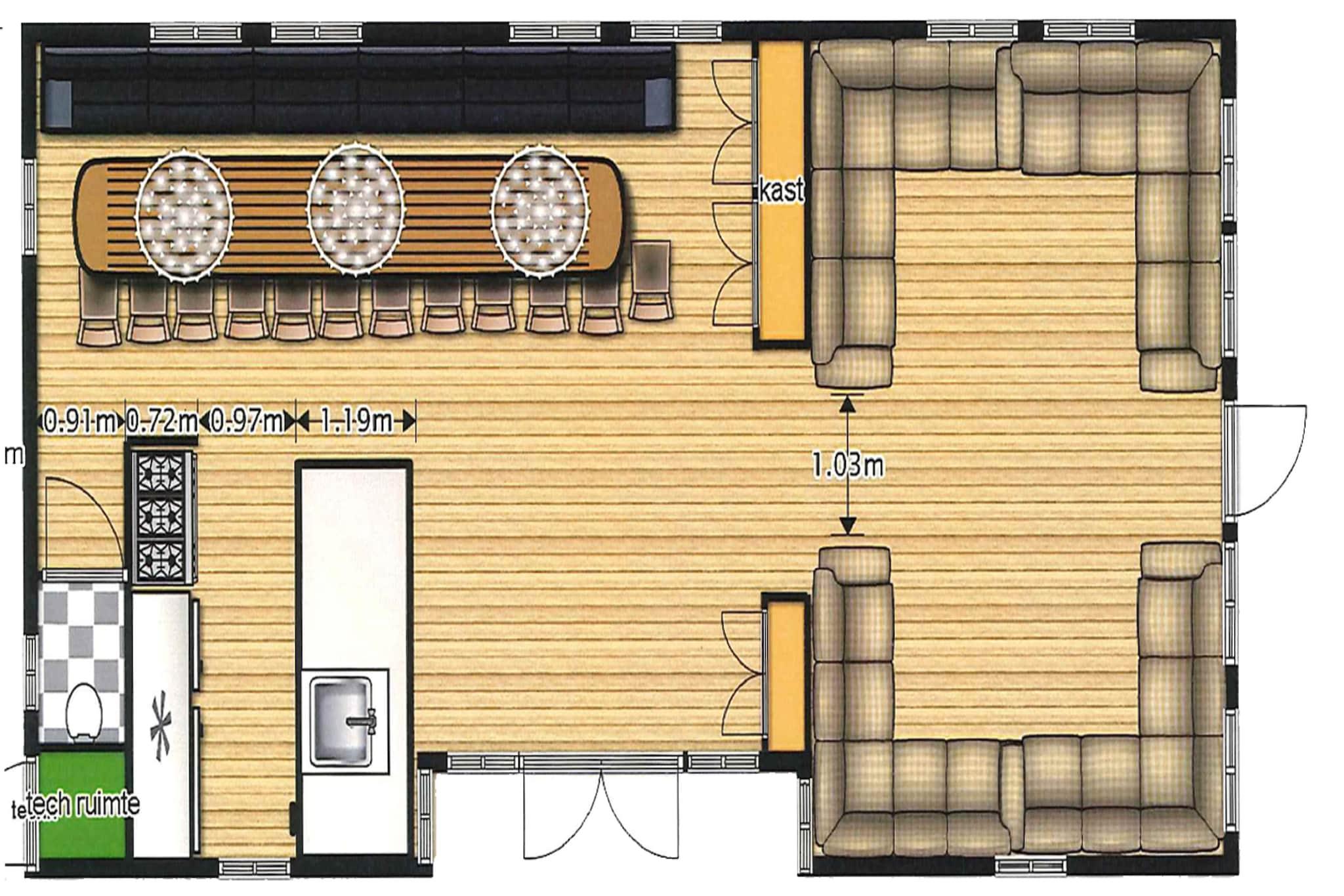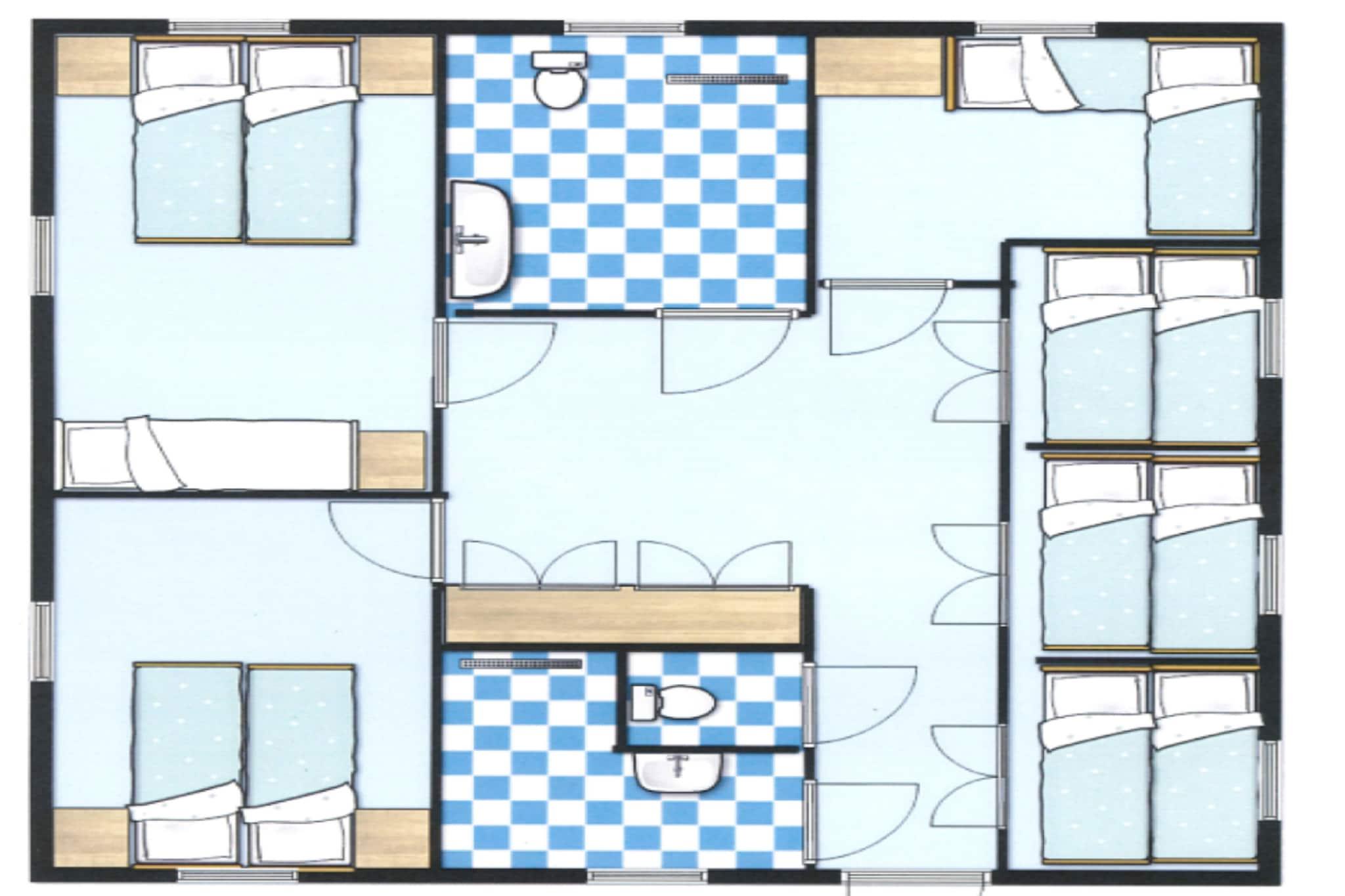 For et kongeligt ophold tilbyder Residence de Eese to typer gruppeindkvartering: 18-personers Eeserburcht og 28-personers Kasteel de Eese. Eeserburcht består af to sammenhængende bygninger, forhøjet med udsigt over parkens tennisbaner. Hovedbygningen har et unikt kongeligt tema med håndlavede runde sofaer, et veludstyret køkken (inklusive et amerikansk køleskab og ismaskine) og en langt fransk vinbord til fællesmiddage Det omfatter to soveværelser, et badeværelse og et separat toilet. Den separate "sovende fæstning" byder på tre soveværelser og to badeværelser, perfekt til dem, der ønsker ro, mens andre hygger sig. Kasteel de Eese-typen er lige så behagelig og består endda af tre dele: en "stor sal" og to "sovende fæstninger". Den store hall byder naturligvis på en rummelig, smukt indrettet stue med et fuldt udstyret køkken og en kogeø. Igen er det lange spisebord et rigtigt blikfang! I modsætning til Eeserburcht er alle soveværelser i de to andre bygninger. Hver sovende fæstning rummer tre soveværelser + tre sengestel og to badeværelser. Disse sovepladser inkluderer også et King's Room, et Queen's Room og et Princess Room. Begge typer har en smuk terrasse med havemøbler nok til at have plads til alle! For grupper med en anden sammensætning end familie, anmodes der om et depositum på 1000 euro.