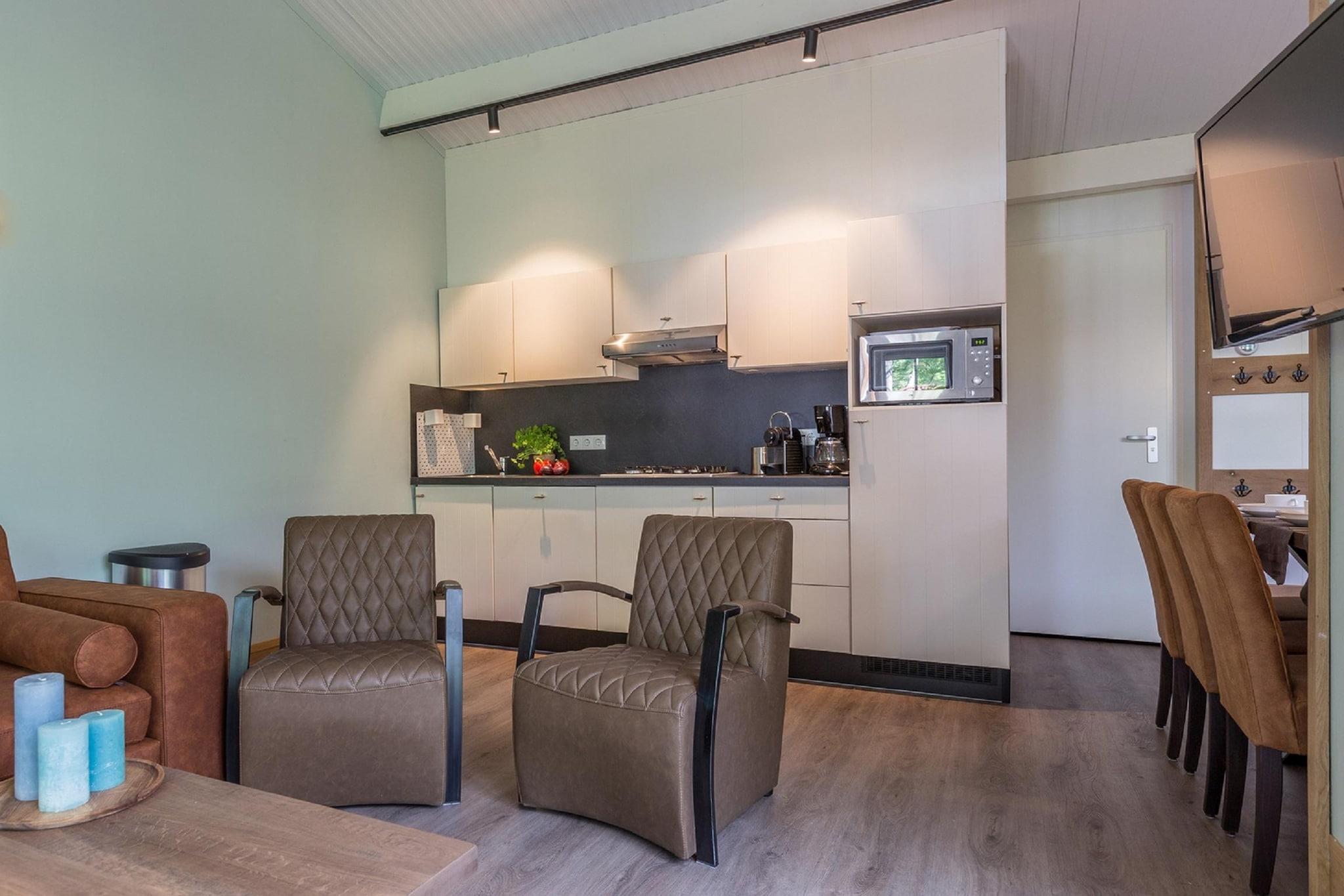 The beautiful design of this property is a feast for the eyes. It also offers a lot of comfort due to the complete and high-quality furnishings. This chalet is suitable for up to six people and features three bedrooms. The living room with seating area, dining area and open-plan kitchen offers enough space to spend time together. A unique element of this chalet is the beautiful conservatory. If there's just a little bit of sunshine, you can also enjoy a wonderful time here. During warm days, you can open the sliding doors and use it as a terrace. At holiday park Residence de Eese, you can book many different accommodations for small and large groups.