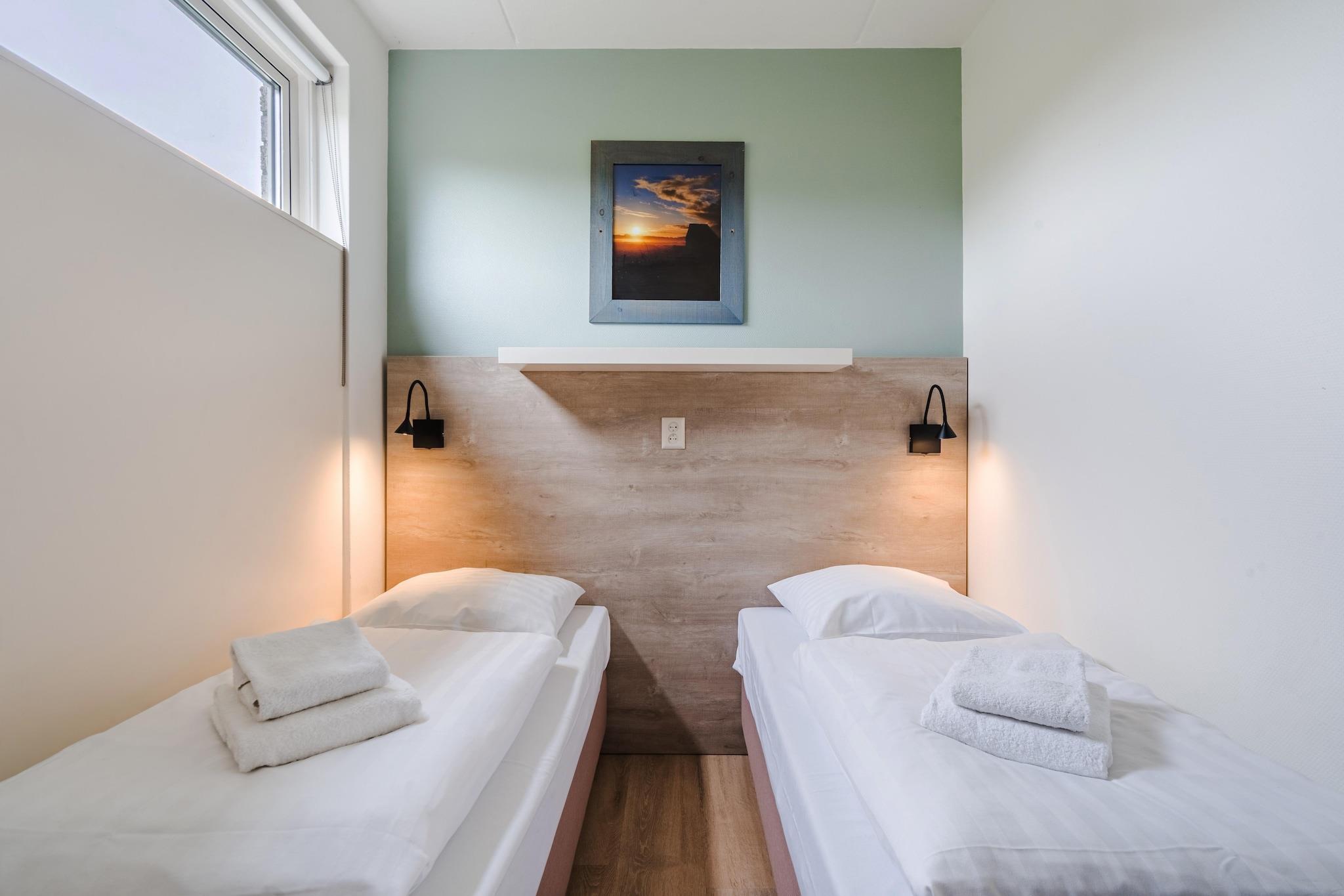 Denne hyggelige 1-værelses lejlighed på Texel er ideel for par eller små familier, der søger et fristed ved stranden. Lejligheden ligger tæt på centrum af De Koog og har plads til op til 4 gæster. Den har en praktisk indretning med en stue med dobbelt sovesofa og tv, et åbent køkken med kedel, filterkaffemaskine, mikroovn, køleskab med fryser og et soveværelse med enten en dobbeltseng eller to enkeltsenge. Badeværelset er udstyret med brusebad, håndvask og toilet. Centralvarme sikrer komfort året rundt. Indkvarteringen tilbyder direkte adgang til en fælles swimmingpool, en privat terrasse og havemøbler, hvilket gør det til et behageligt sted at slappe af efter en dag med aktiviteter på øen. Familievenlige faciliteter som mikroovn og komfortabel spise-/opholdsstue gør de daglige rutiner nemme og bekvemme. Gæsterne kan nyde tjenester på stedet på hollandsk, engelsk, fransk og arabisk, og kæledyr kan tillades efter anmodning. Lejligheden er perfekt beliggende til at udforske Texel, 15 minutters gang fra Dunes of Texel National Park og en kort køretur fra Ecomare, VVV Texel og den berømte Vuurtorenweg Texel Beach. Restauranter, butikker og attraktioner som Maritime & Beachcombers Museum og Dutch Navy Museum er let tilgængelige. Offentlige transportmuligheder omfatter stationerne Den Helder og Anna Paulowna, hvilket gør beliggenheden velegnet til en afslappet ferie. Bemærk: Reservationer for gæster under 25 år er kun tilladt, hvis de ledsages af deres forældre. Adgang til ejendommen vil blive nægtet, hvis denne betingelse ikke er opfyldt. Bemærk: - På grund af et teknisk problem er saunaen lukket indtil videre. Vi beklager ulejligheden. - Denne feriepark er fyrværkerifri - det er forbudt at affyre fyrværkeri af enhver art på nytårsaften. Parken foretager kontrol for at håndhæve dette. Der er dog mulighed for, at der affyres fyrværkeri i det omkringliggende område.