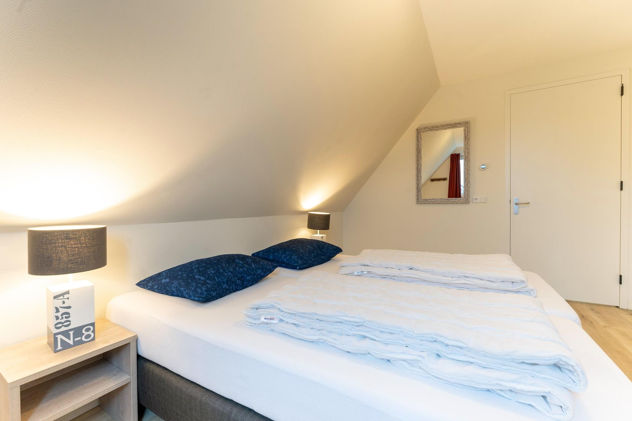 Din smukke nye villa er luksuriøst møbleret og tilbyder plads til 8 personer med sine 4 soveværelser. Centrum af De Koog ligger 3 km væk. Dette feriehus ligger i udkanten af skoven og er en ideel base for at udforske den smukke ø Texel. Stuen / spisestuen er godt møbleret, og gennem skydedørene når du din private terrasse med havemøbler. Haven tilbyder plads nok til, at børnene kan lege. Køkkenet har al den komfort, du har brug for. Soveværelse nummer 1 med 2 enkeltsenge og badeværelse ligger i stueetagen, de øvrige 3 soveværelser med 2 enkeltsenge hver findes på 1. sal med et badeværelse. Øen Texel er kendt for sine gode cykel- og vandrestier. Vi kan virkelig anbefale at leje en cykel. Alle seværdigheder, aktiviteter og landsbyer med terrasser og butikker ligger i kort afstand fra hinanden. For børnene er svømmeparadiset Calluna og Ecomare med dets sæler en populær udflugt. Grønt, ro og plads på den smukke ø Texel! Detaljer: - Du kan parkere 2 biler ved siden af dit hjem. Opladestationer til elbiler er også tilgængelige på den generelle parkeringsplads - Lukket have. - Barneseng (9,50 euro pr. Ophold), børnepool (9,50 euro pr. Ophold) og høj stol (9,50 euro pr. Ophold) til leje lokalt ved reception.-Cykeludlejning muligt i receptionen (hvis tilgængeligt)