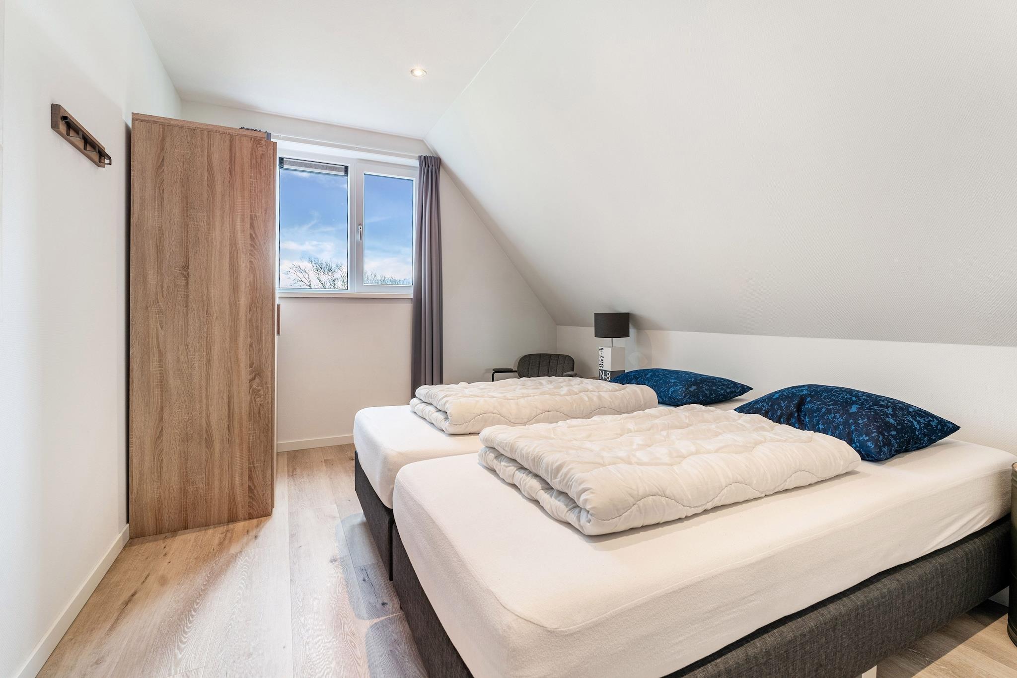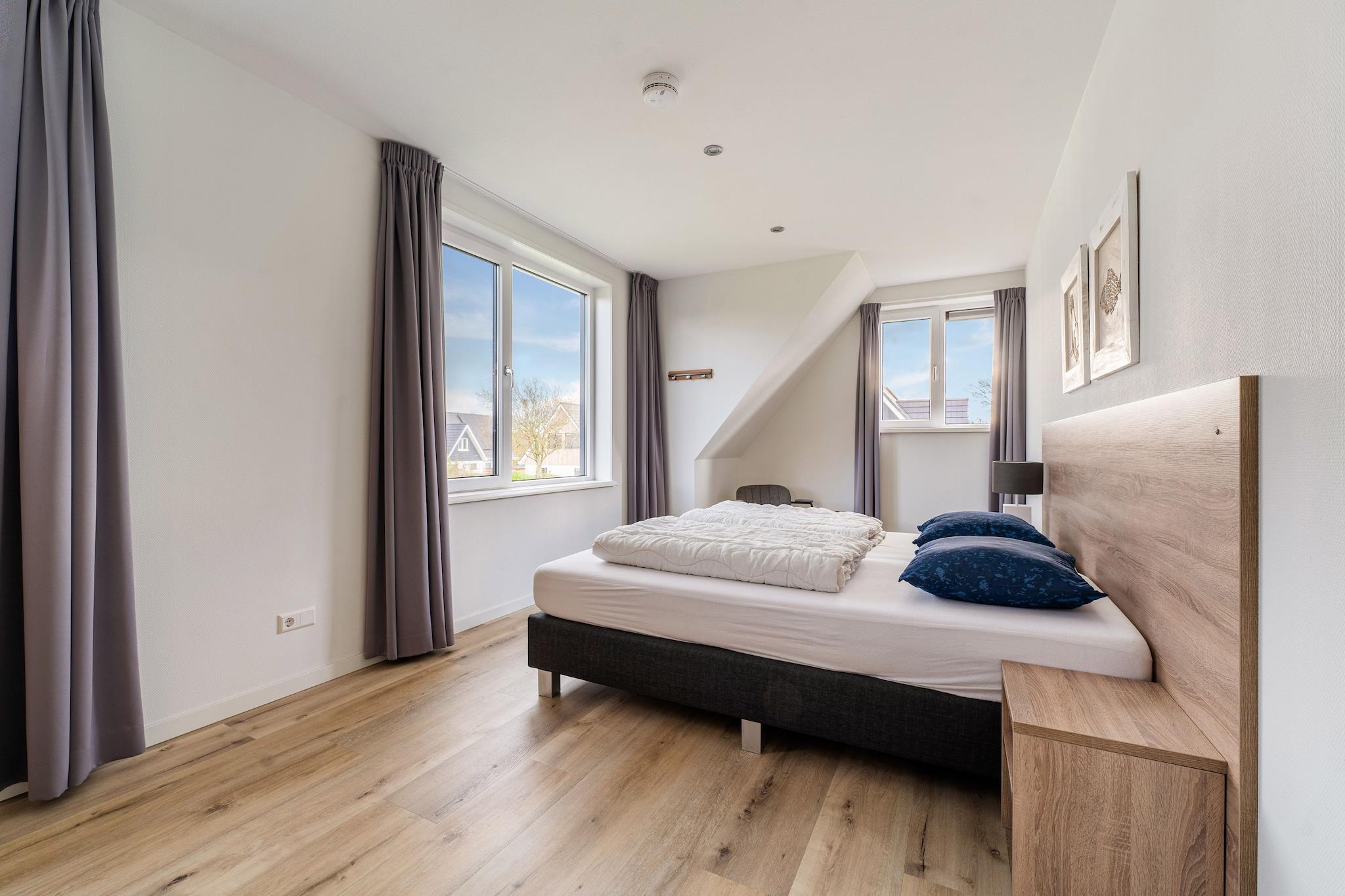 Din smukke nye villa er luksuriøst møbleret og tilbyder plads til 8 personer med sine 4 soveværelser. Centrum af De Koog ligger 3 km væk. Dette feriehus ligger i udkanten af skoven og er en ideel base for at udforske den smukke ø Texel. Stuen / spisestuen er godt møbleret, og gennem skydedørene når du din private terrasse med havemøbler. Sydvendt beliggenhed. Haven tilbyder plads nok til, at børnene kan lege. Køkkenet har al den komfort, du har brug for. Soveværelse nummer 1 med 2 enkeltsenge og badeværelse ligger i stueetagen, de øvrige 3 soveværelser med 2 enkeltsenge hver findes på 1. sal med et badeværelse og en vidunderlig sauna. Øen Texel er kendt for sine gode cykel- og vandrestier. Vi kan virkelig anbefale at leje en cykel. Alle seværdigheder, aktiviteter og landsbyer med terrasser og butikker ligger i kort afstand fra hinanden. For børnene er svømmeparadiset Calluna og Ecomare med dets sæler en populær udflugt. Grønt, ro og plads på den smukke ø Texel! Detaljer: - Du kan parkere 2 biler ved siden af dit hjem. Opladningsstationer for elbiler er også tilgængelige på den generelle parkeringsplads - Have med et lysthus - Barneseng (9,50 euro pr. Ophold), Børnepool (9,50 euro pr. Ophold) og høj stol (9,50 euro pr. Ophold) til leje lokalt til receptionen.-Cykeludlejning mulig i receptionen (hvis tilgængelig)