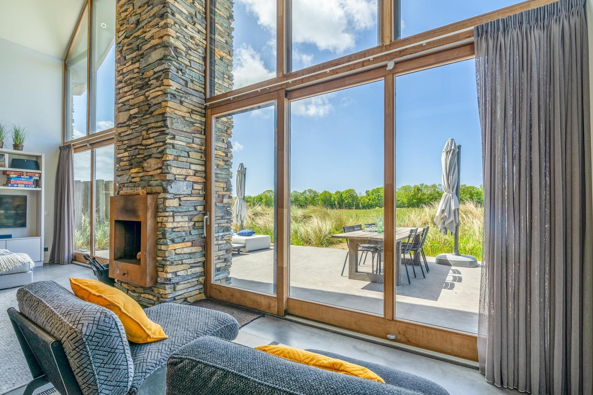 Denne luksusvilla ligger i udkanten af badebyen De Koog, nær stranden og skoven. Inspireret af den typiske Texel-fårefold tilbyder villaen en vidunderlig udsigt over den sydvendte have. Dette er et absolut topmoderne hus med et unikt og smagfuldt interiør. Den rummelige stue har et opholdsområde med pejs, smart-tv og musikanlæg. Der er en spiseplads med et stort spisebord til seks personer. Det åbne køkken er fuldt udstyret med forskellige indbyggede apparater, herunder en kombinationsmikrobølgeovn, dampovn, opvaskemaskine, Quooker og kaffemaskine. Der er et soveværelse i stueetagen med eget badeværelse med bruseniche med to regnbrusere og en dobbelt håndvask. Ovenpå er der to soveværelser med eget badeværelse. Disse badeværelser har en rummelig bruseniche og badekar. Alle soveværelser i huset har komfortable boxmadrassenge, og soveværelserne på første sal har et tv. Sengene er redt som standard, og håndklæder er inkluderet. Opholdsstuen åbner direkte ud til terrassen via skydedøre. Den sydvendte terrasse er udstyret med havemøbler. Der er en trampolin til børnene. Der er et fuldt udstyret udendørskøkken med The Bastard BBQ. Det brændefyrede spabad er tilgængeligt året rundt. Nyd de vidunderlige dufte, naturens lyde, den flammende brændeild og stjernerne på himlen. Haven er indhegnet, delvist af en port og delvist af en naturlig "Texel-havemur".
