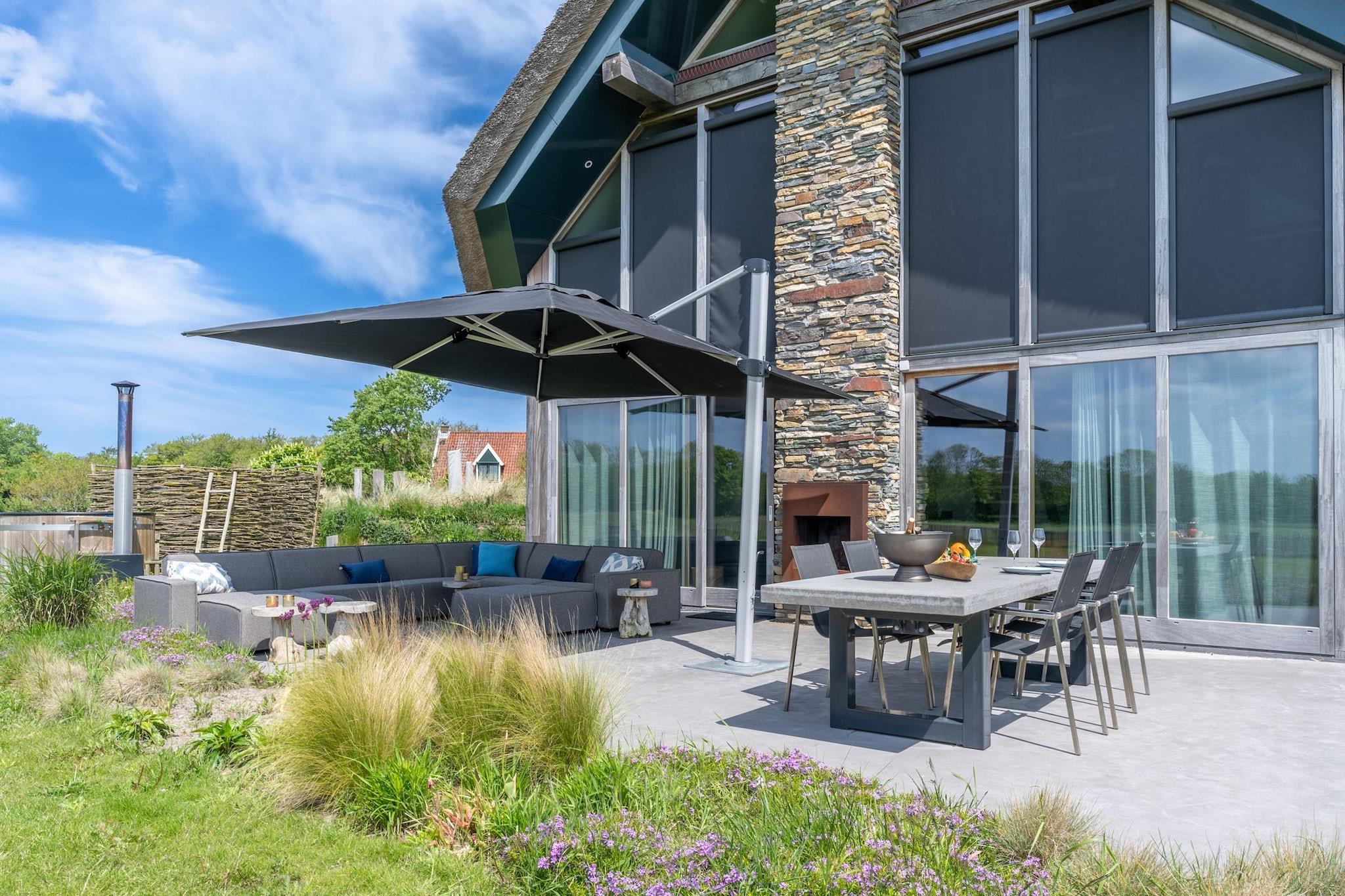 Denne luksusvilla ligger i udkanten af badebyen De Koog, nær stranden og skoven. Inspireret af den typiske Texel-fårefold tilbyder villaen en vidunderlig udsigt over den sydvendte have. Dette er et absolut topmoderne hus med et unikt og smagfuldt interiør. Den rummelige stue har et opholdsområde med pejs, smart-tv og musikanlæg. Der er en spiseplads med et stort spisebord til seks personer. Det åbne køkken er fuldt udstyret med forskellige indbyggede apparater, herunder en kombinationsmikrobølgeovn, dampovn, opvaskemaskine, Quooker og kaffemaskine. Der er et soveværelse i stueetagen med eget badeværelse med bruseniche med to regnbrusere og en dobbelt håndvask. Ovenpå er der to soveværelser med eget badeværelse. Disse badeværelser har en rummelig bruseniche og badekar. Alle soveværelser i huset har komfortable boxmadrassenge, og soveværelserne på første sal har et tv. Sengene er redt som standard, og håndklæder er inkluderet. Opholdsstuen åbner direkte ud til terrassen via skydedøre. Den sydvendte terrasse er udstyret med havemøbler. Der er en trampolin til børnene. Der er et fuldt udstyret udendørskøkken med The Bastard BBQ. Det brændefyrede spabad er tilgængeligt året rundt. Nyd de vidunderlige dufte, naturens lyde, den flammende brændeild og stjernerne på himlen. Haven er lukket, delvist med et hegn og delvist med en naturlig "Texel-havemur". Dette er et energineutralt hjem. Der er vaskemaskine, tørretumbler og børnemøbler til rådighed. Gratis Wi-Fi og yderligere tyske kanaler er tilgængelige. Der er også en gratis ladestation til elbiler og cykler. Villaen opvarmes og køles af en varmepumpe. Gulvvarme og -køling sikrer en behagelig temperatur selv om sommeren. Ved ankomst modtager du en voucher til en sæk brænde og en sæk trækul til brug af pejsen, spabadet og grillen. Ekstra poser kan købes på Total-tankstationen i De Koog. Du kan også bestille Big Bad-brænde ved din reservation.