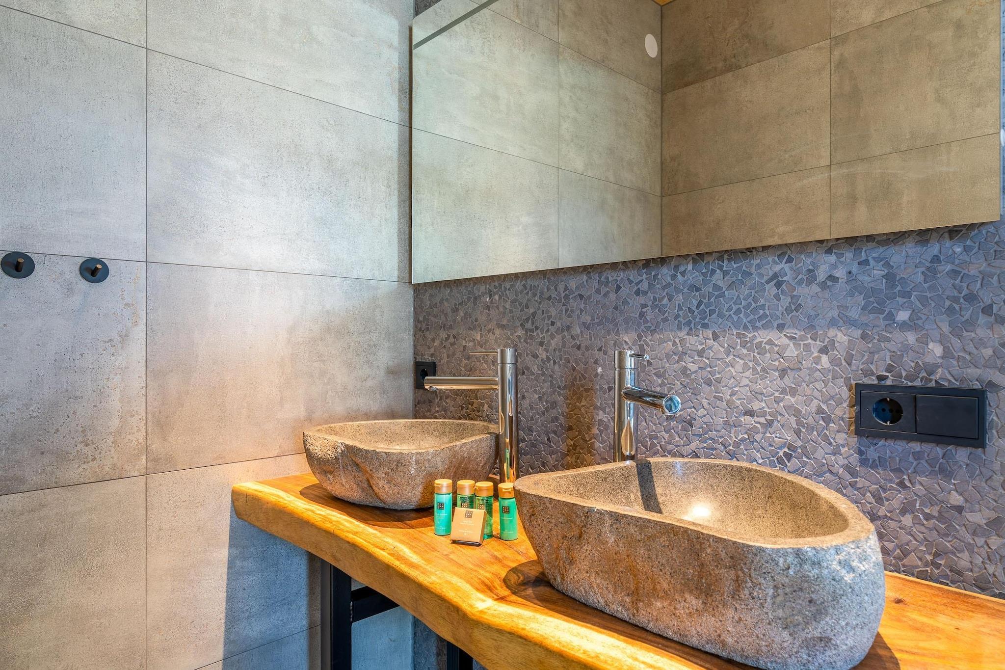 Denne luksusvilla ligger i udkanten af badebyen De Koog, nær stranden og skoven. Inspireret af den typiske Texel-fårefold tilbyder villaen en vidunderlig udsigt over den sydvendte have. Dette er et absolut topmoderne hus med et unikt og smagfuldt interiør. Den rummelige stue har et opholdsområde med pejs, smart-tv og musikanlæg. Der er en spiseplads med et stort spisebord til seks personer. Det åbne køkken er fuldt udstyret med forskellige indbyggede apparater, herunder en kombinationsmikrobølgeovn, dampovn, opvaskemaskine, Quooker og kaffemaskine. Der er et soveværelse i stueetagen med eget badeværelse med bruseniche med to regnbrusere og en dobbelt håndvask. Ovenpå er der to soveværelser med eget badeværelse. Disse badeværelser har en rummelig bruseniche og badekar. Alle soveværelser i huset har komfortable boxmadrassenge, og soveværelserne på første sal har et tv. Sengene er redt som standard, og håndklæder er inkluderet. Opholdsstuen åbner direkte ud til terrassen via skydedøre. Den sydvendte terrasse er udstyret med havemøbler. Der er en trampolin til børnene. Der er et fuldt udstyret udendørskøkken med The Bastard BBQ. Det brændefyrede spabad er tilgængeligt året rundt. Nyd de vidunderlige dufte, naturens lyde, den flammende brændeild og stjernerne på himlen. Haven er lukket, delvist med et hegn og delvist med en naturlig "Texel-havemur". Dette er et energineutralt hjem. Der er vaskemaskine, tørretumbler og børnemøbler til rådighed. Gratis Wi-Fi og yderligere tyske kanaler er tilgængelige. Der er også en gratis ladestation til elbiler og cykler. Villaen opvarmes og køles af en varmepumpe. Gulvvarme og -køling sikrer en behagelig temperatur selv om sommeren. Ved ankomst modtager du en voucher til en sæk brænde og en sæk trækul til brug af pejsen, spabadet og grillen. Ekstra poser kan købes på Total-tankstationen i De Koog. Du kan også bestille Big Bad-brænde ved din reservation.