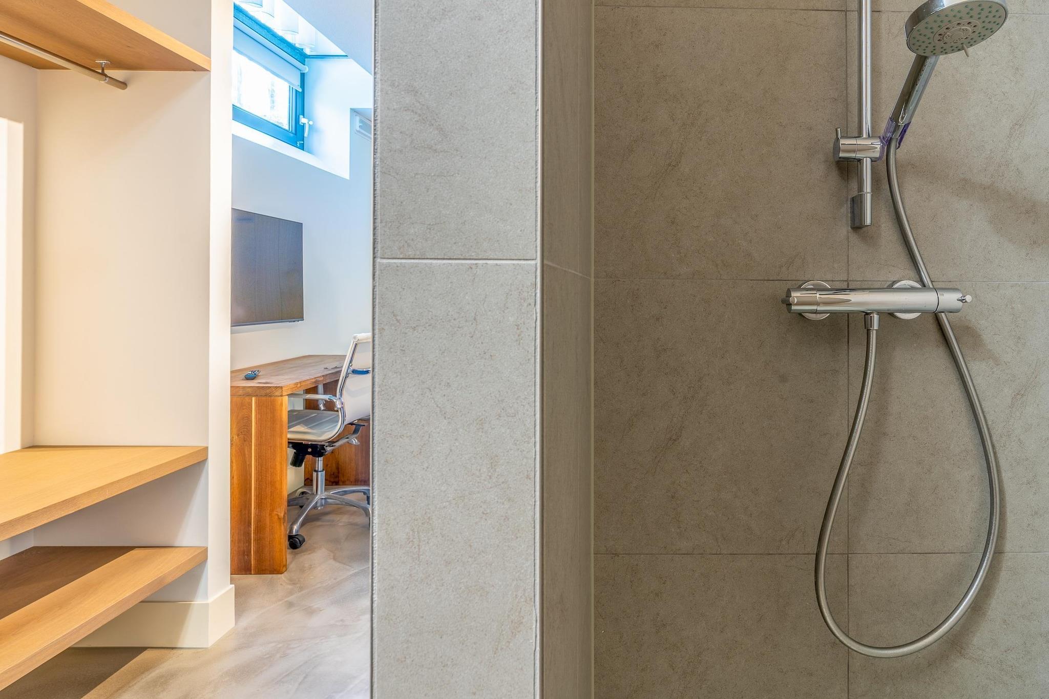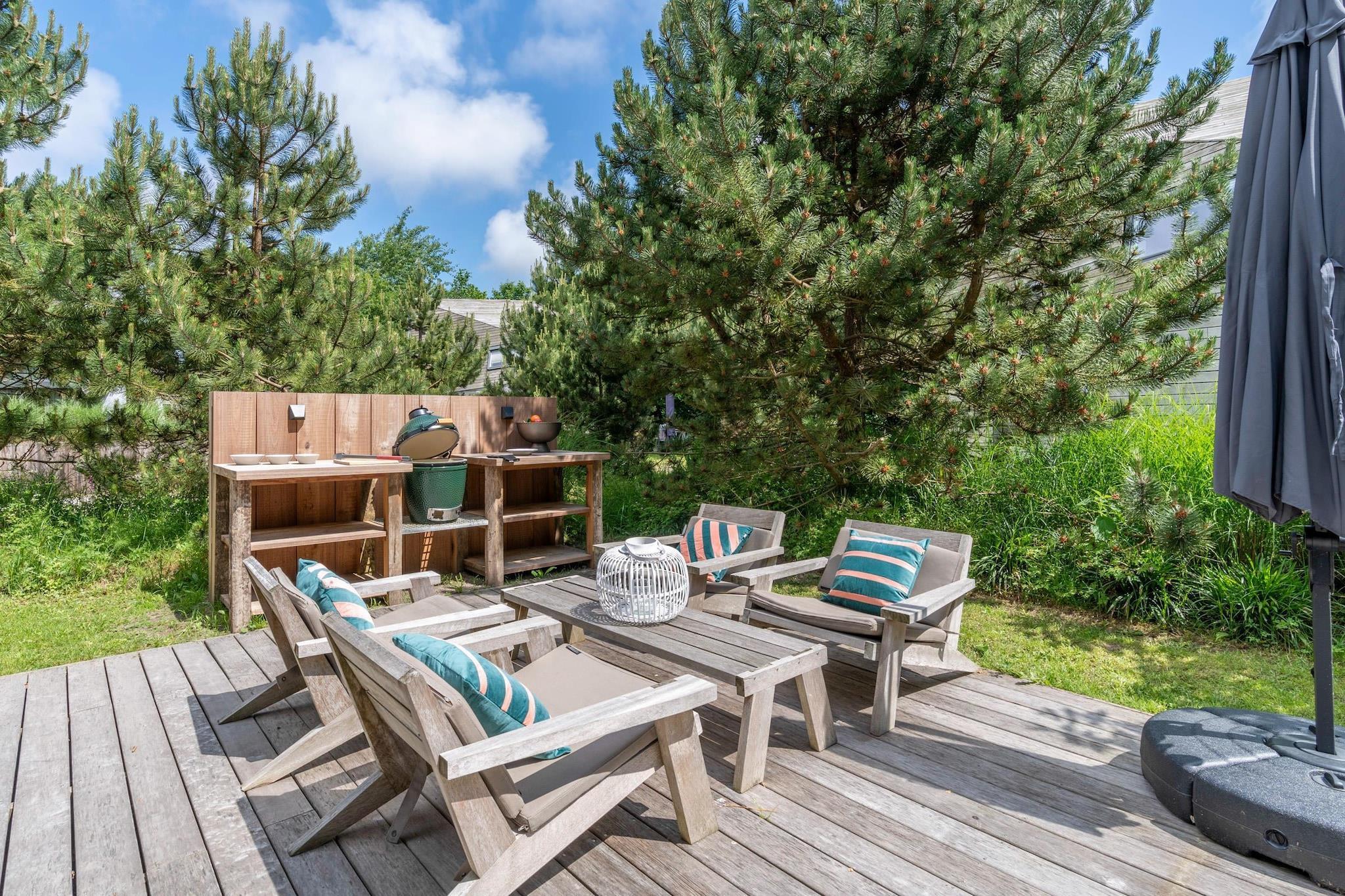 En rummelig og charmerende villa til 6 personer, beliggende nær Dennen-skoven i en rolig, lille feriepark. Den rummelige stue har et opholdsområde med en hjørnesofa, et Smart TV og en hyggelig brændeovn. Oplysningen skaber en dejlig varm atmosfære. Det pæne åbne køkken er fuldt udstyret med opvaskemaskine, kombineret mikrobølgeovn, Nespresso-kaffemaskine og et vinkøleskab, der sikrer, at din vin holdes ved den perfekte temperatur under dit ophold. Der er også et stort spisebord med plads til 8 personer. For virkelig at opleve naturen åbner stuen direkte ud til haven via en glasvæg i fuld længde, der strækker sig helt op til tagryggen. Der er i alt tre soveværelser. Disse er udstyret med en komfortabel dobbelt boxmadras, et Smart TV og et ensuite badeværelse, hvoraf to har bruseniche og håndvask, og et med badekar, bruseniche og håndvask. Trappen i køkkenet fører dig intetanende ned til kælderen, hvor to af de tre soveværelser er placeret, begge med et naturligt lysvindue. Du finder også en finsk sauna her, perfekt til afslapning under dit ophold. På første sal er der endnu et soveværelse. Hver etage har et separat toilet. Stuen åbner direkte ud til terrassen og haven. Her finder du et komfortabelt loungesæt, en hyggelig terrasse og et udendørs køkken med grill. Selv på koldere dage er haven stadig behagelig at sidde i takket være den udendørs varmeovn. Der er også trampolin og havemøbler til børn. Der er én parkeringsplads til rådighed; andre biler kan parkere langs vejen uden for parken. Børnemøbler er standard; yderligere børnemøbler er tilgængelige mod et gebyr. Gratis Wi-Fi.