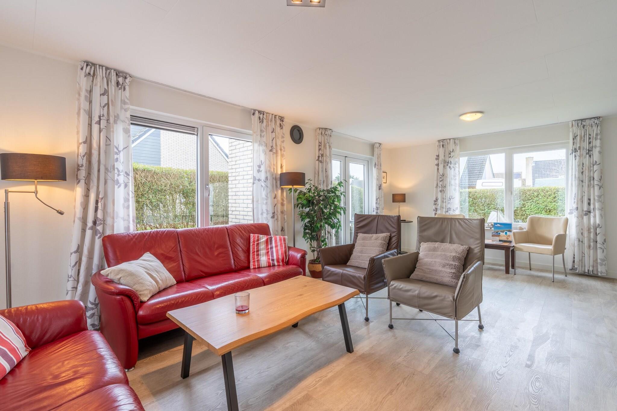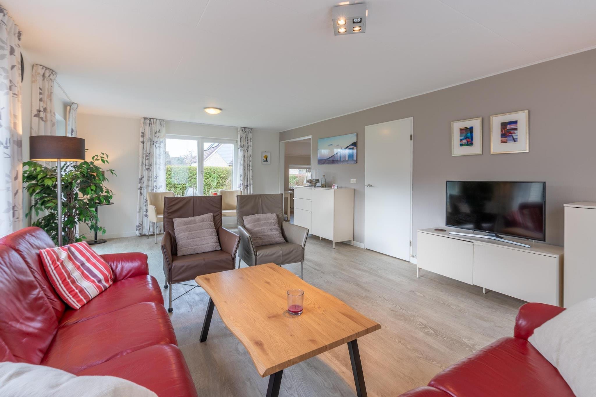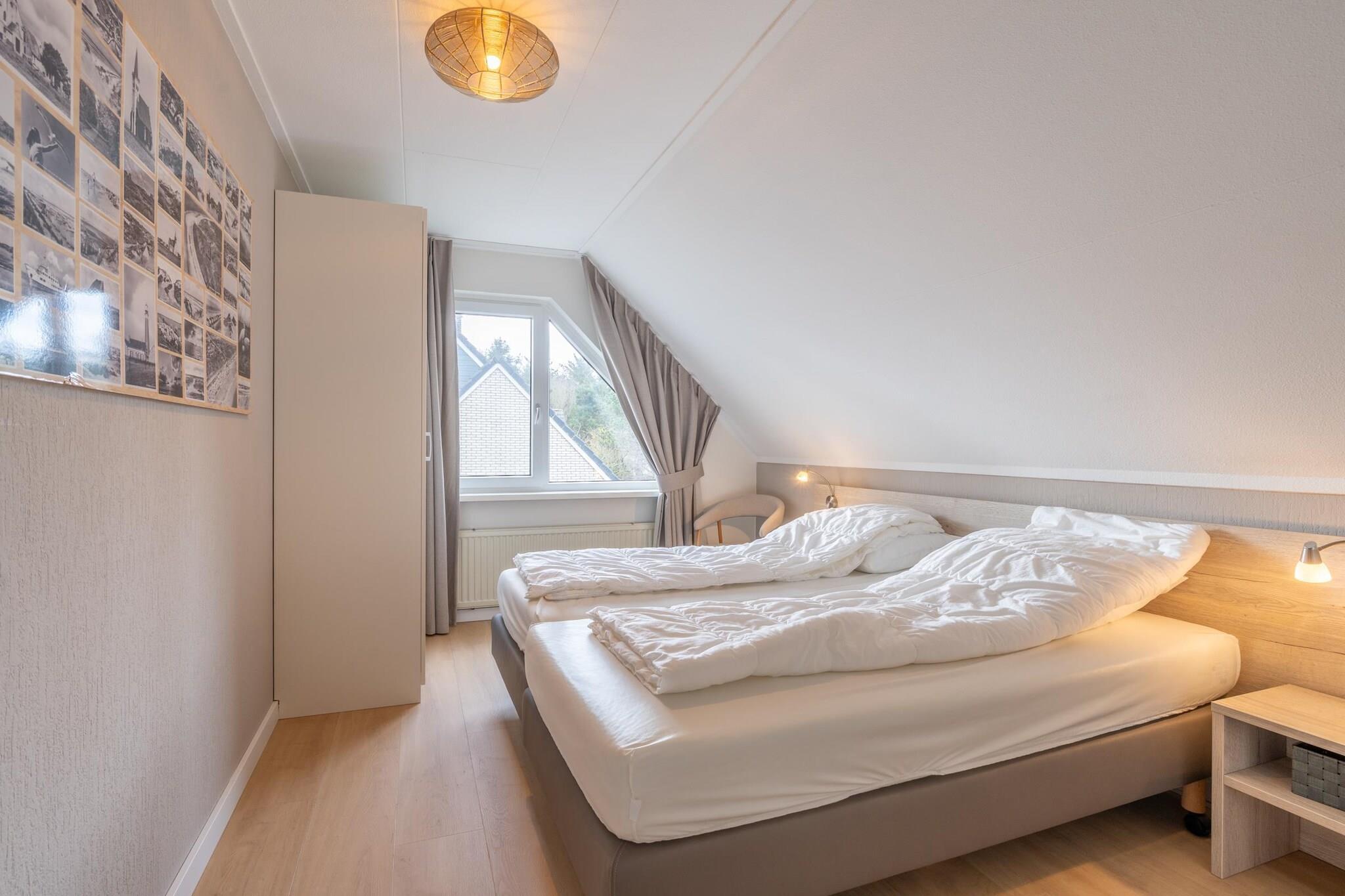 Den lyse stue har et siddeområde, smart-tv og musikanlæg. Det rummelige åbne køkken er fuldt udstyret med opvaskemaskine, køleskab med fryser, kombineret mikrobølgeovn og forskellige kaffemaskiner. Der er også en rummelig spiseplads med et spisebord til fire personer. Der er to soveværelser, det ene med tv. Begge er placeret på første sal og er møbleret med to enkeltsenge med boxmadras. Badeværelset har regnbruser, spabad, dobbelt håndvask og toilet. Fra stuen åbner franske døre ud til terrassen og den rummelige sydvestvendte have. Terrassen er møbleret med havemøbler, inklusive et loungesæt. For børnene er der en fælles legeplads med forskellige legeredskaber i nærheden af villaen. To private parkeringspladser er til rådighed.