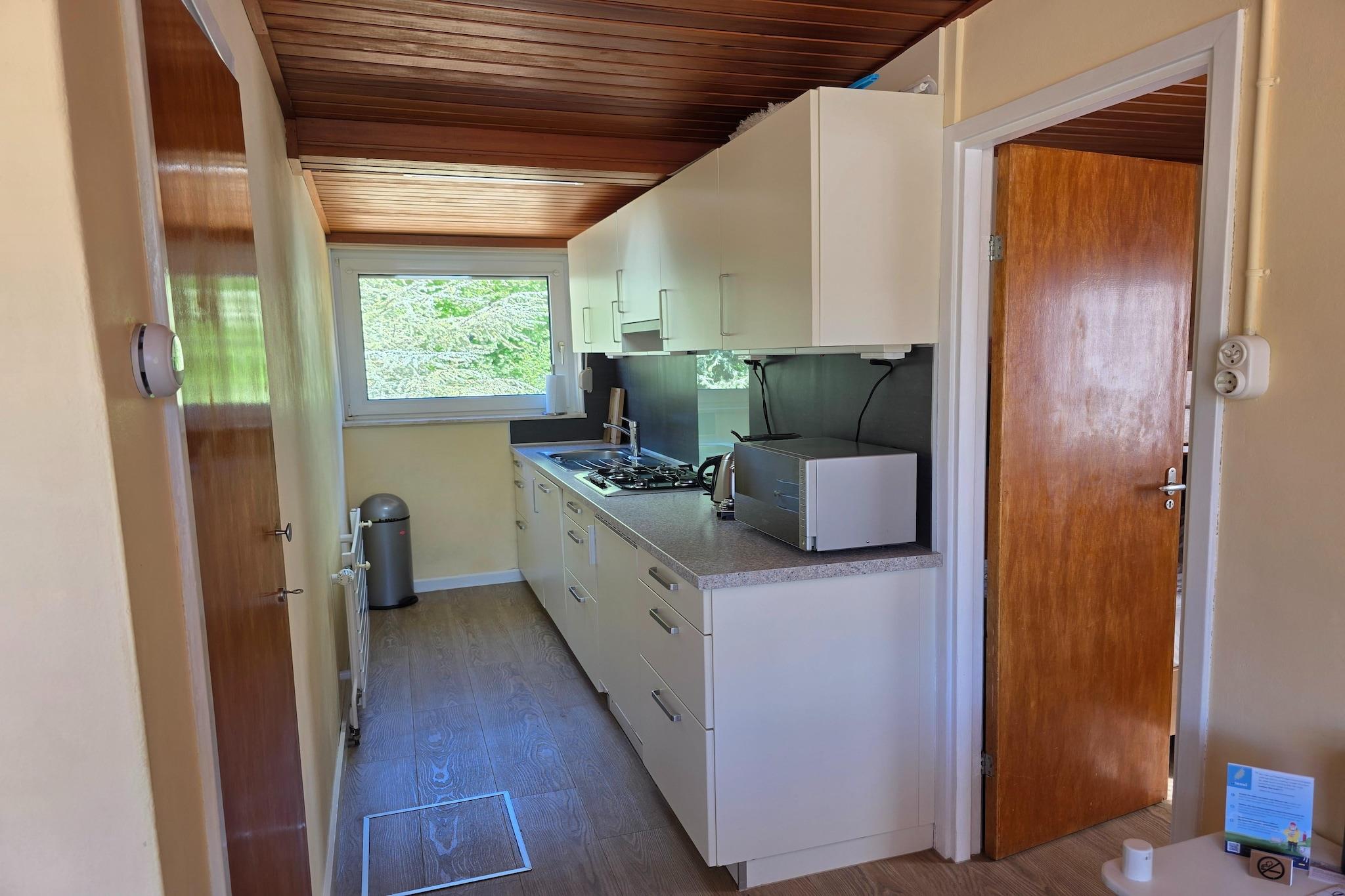 Bungalow til 6 personer med en meget rummelig sydvendt have, beliggende i en feriepark nær skoven. Opholdsstuen har et opholdsområde med tv og en spiseplads med spisebord til 6 personer. Det åbne køkken er fuldt udstyret med en kombinationsovn, opvaskemaskine og forskellige kaffemaskiner. Der er 3 soveværelser, hvoraf 2 har køjesenge. Alle tre soveværelser har egen vask. Soveværelset har to enkeltsenge med madrasser på 90x200 cm, og i begge de mindre soveværelser er den nederste seng 90x190 cm og den øverste seng 80x190 cm. Der er et velholdt badeværelse med bruseniche, toilet og vask. Terrassedøren (som også fungerer som indgang) fører direkte fra stuen til den rummelige, sydvendte have. Havemøbler og parasol er til rådighed. Der er privat parkering til 2 biler. Gratis Wi-Fi. Rygning er ikke tilladt. Børnemøbler er tilgængelige efter anmodning og mod et gebyr. Bungalowen er beliggende på en 675 m² stor grund.