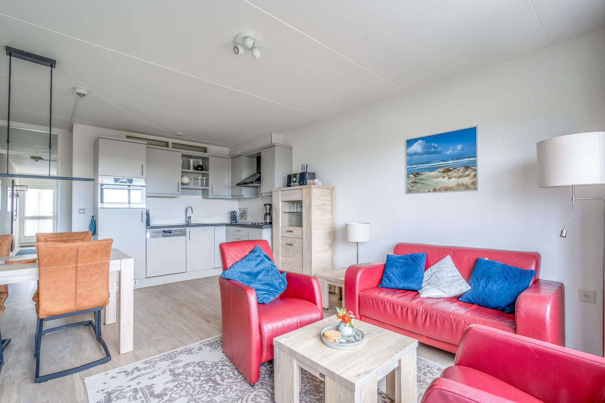 Lejlighed til 4 personer med udsigt over øen og havet på anden sal. Balkon med udsigt over Texel, klitterne og Vesterhavet. Stue med siddeområde, spisebord, TV og stereoanlæg. Åbent køkken med opvaskemaskine, kombineret mikrobølgeovn, køleskab med fryser og diverse kaffemaskiner. To soveværelser, begge med to enkeltsenge. Det mindste soveværelse ligger midt i lejligheden, så der er intet vindue. Badeværelse med håndvask og bruser. Toilettet er separat. Lille soveværelse: senge 70x200 cm. Balkon med udsigt over badebyen De Koog, klitterne og havet. Vaskerifaciliteter er tilgængelige på stedet. Børnemøbler er tilgængelige efter anmodning. Gratis Wi-Fi. Rygning er ikke tilladt. Der er én parkeringsplads på stedet pr. indkvartering.