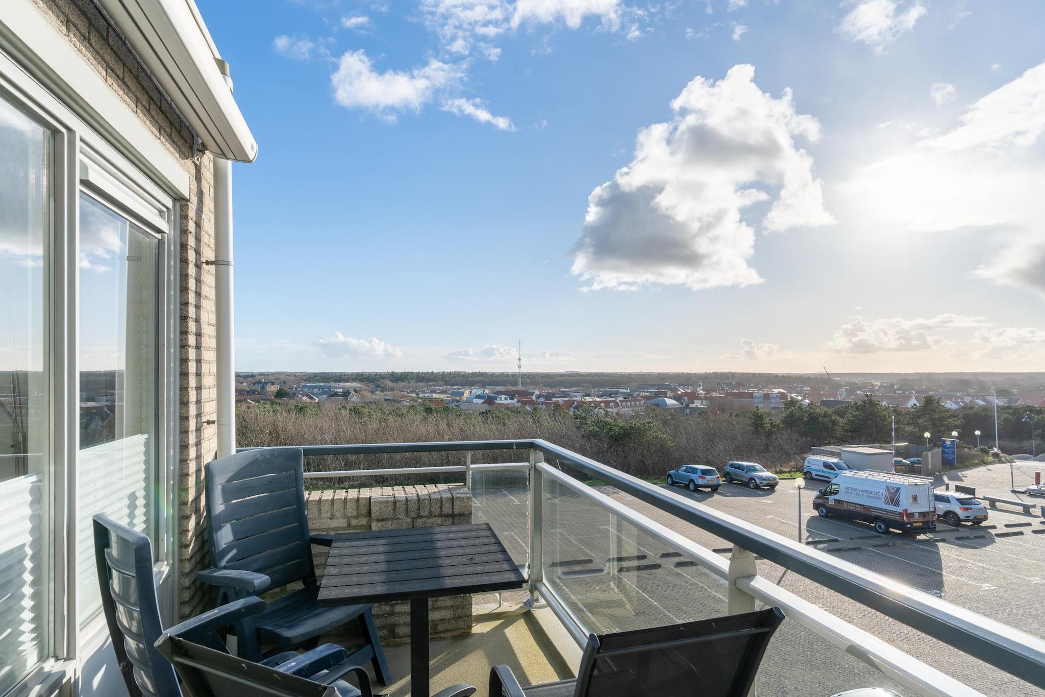 Hyggeligt møbleret 4-personers lejlighed på anden sal med udsigt over øen fra balkonen og diagonalt over Vesterhavet fra stuen. Stuen har siddeområde, tv og spiseplads. Det åbne køkken er udstyret med opvaskemaskine, køleskab med fryser, kombineret mikrobølgeovn og forskellige kaffemaskiner. Der er to soveværelser. Det ene soveværelse har to enkeltsenge med boxmadras, det andet en dobbeltseng med boxmadras. Det renoverede badeværelse har bruseniche og dobbelt håndvask. Toilettet er separat. Balkonen er udstyret med havemøbler. Fra balkonen kan du beundre en smuk solopgang. Et vaskerum er tilgængeligt i komplekset mod et gebyr. Børnemøbler er tilgængelige efter anmodning. Gratis Wi-Fi er tilgængelig. Rygning er ikke tilladt. Der er én parkeringsplads på stedet pr. indkvartering.