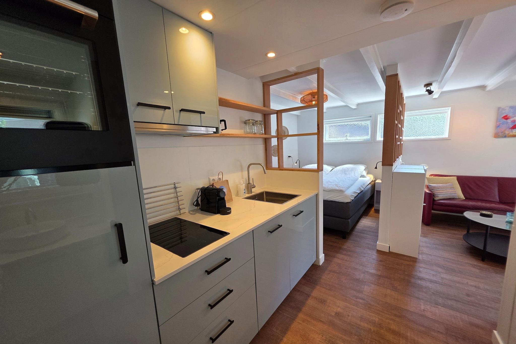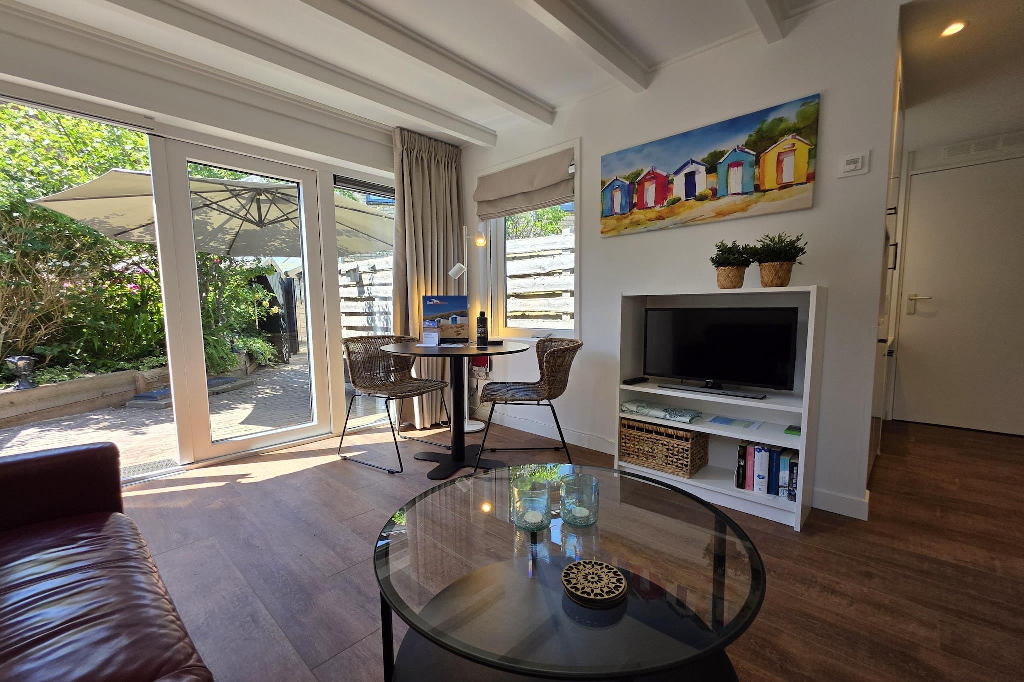 Charmerende og hyggelig studiolejlighed til 2 personer på Ruijslaan i badebyen De Koog. Beliggende nær skov og klitter, i gåafstand fra stranden ved Vesterhavet. Den hyggelige stue med siddeområde har et tv og franske døre, der fører ud til en solrig terrasse. Der er et spisebord til 2 personer. Det åbne køkken er udstyret med opvaskemaskine, varmluftsovn, induktionskogeplade med 2 blus og forskellige kaffemaskiner. Soveområdet er møbleret med en dobbelt boxmadras (140x200 cm) og en håndvask. Badeværelset har bruser og toilet. Garderoben er placeret i stuen. Den fuldt lukkede have med terrasse er udstyret med havemøbler og parasol. Der er et tøjstativ i haveskuret. Gratis Wi-Fi. Privat parkering er tilgængelig ved lejligheden. Børnemøbler kan lejes mod et gebyr. Lejligheden ligger ved siden af vores feriehus på Ruijslaan 13A. Disse lejligheder kan nemt kombineres, hvis det ønskes. Porten, der normalt er lukket, kan åbnes, hvilket gør den til én helhed.