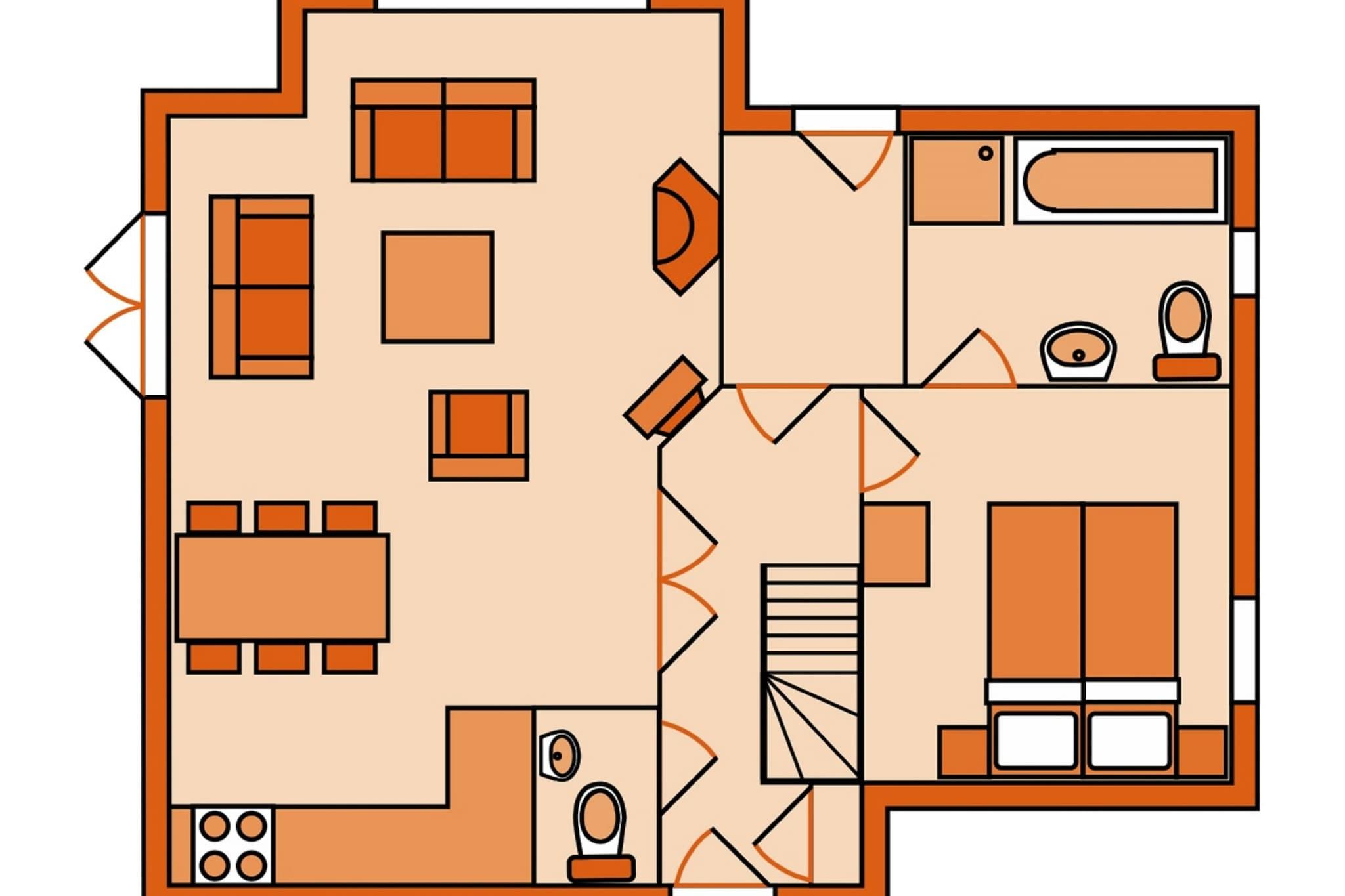 Stueetage: (entre(toilet), Stue(Fjernsyn(Smart-TV), hyggepejs), åbent køkken(elkedel, kaffemaskine(kaffepude), combi-mikroovn, opvaskemaskine , køle-fryseskab), soveværelse(dobbeltseng eller 2 enkeltsenge Senge), badeværelse(badekar, bruser)) På 1. etage: (soveværelse(dobbeltseng eller 2 enkeltsenge Senge), soveværelse(dobbeltseng eller 2 enkeltsenge Senge), badeværelse(bruser, toilet), Repos) pulterkammer, varme(central), terrasse, have, havemøbler, swimmingpool(deles med andre gæster, overdækket)