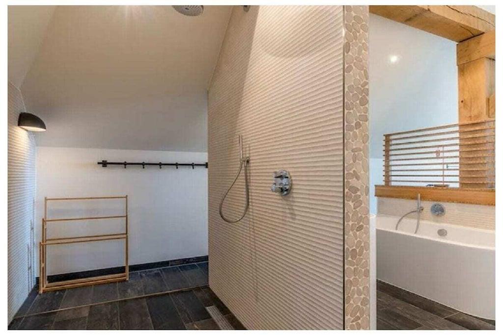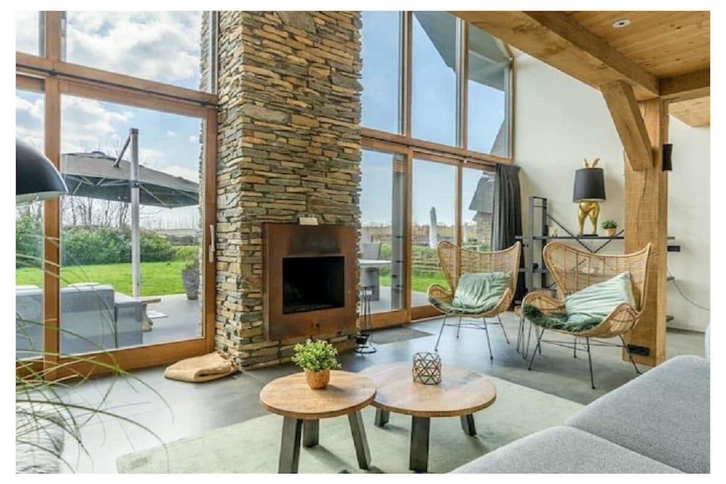 Living Room The spacious living room features a seating area with a fireplace, smart TV, and music system. There is a dining area with a large dining table for 6 people. The open-plan kitchen is fully equipped with various built-in appliances, including a refrigerator with a freezer compartment, a combi microwave, a steamer, a dishwasher, a Quooker oven, and a coffee machine. Bedrooms and Bathrooms On the ground floor, there is one bedroom with an en-suite bathroom, a walk-in shower with two rain showers and double sinks. On the second floor, there are two bedrooms with en-suite bathrooms. These bathrooms have a spacious walk-in shower and a bathtub. All bedrooms in the house have comfortable box-spring beds and a TV. Beds are made up by default, and towels are provided. Garden The living room is directly connected to the terrace through sliding doors. The terrace is equipped with garden furniture and is located on the south side. There is a fully equipped outdoor kitchen.