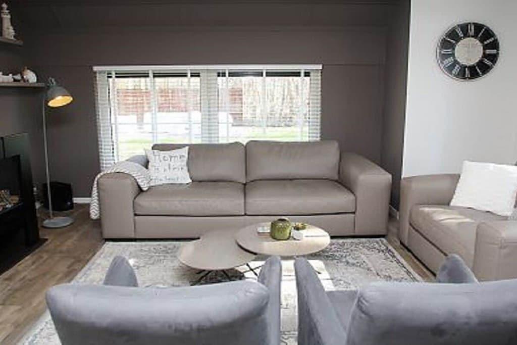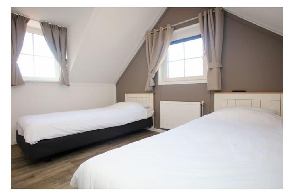 Stueetage: (Stue(Fjernsyn, Fjernsyn), Køkken(spisebord, elkedel, komfur, kaffemaskine, ovn, opvaskemaskine , køleskab, klimaanlæg), soveværelse(, , dobbeltseng), badeværelse(toilet, badekar, bruser, håndvask)) På 1. etage: (soveværelse(, , enkeltseng, enkeltseng), soveværelse(, , enkeltseng, enkeltseng)) , , , , badeværelse(, toilet, bruser, håndvask), guest toilet(, toilet, håndvask), Internetadgang, vaskemaskine, varme, terrasse(havemøbler), parkering, tørreskab