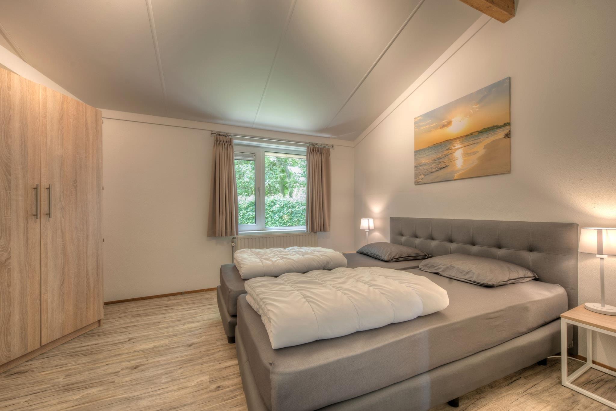 Denne rummelige bungalow er opdelt i to separate sektioner, der er tilgængelige via en central indgang. Den ene sektion har en hyggelig stue med smart-tv, et åbent køkken med opvaskemaskine og mikrobølgeovn, et soveværelse med dobbeltseng, et badeværelse med bruser og et separat toilet på gangen. Den anden sektion fungerer som soveområde med fire ekstra dobbeltværelser, et andet badeværelse med bruser og et separat toilet. Alle senge er af typen boxmadras, som kan arrangeres som dobbeltsenge efter behov. Bungalowen er ideel til større grupper, der søger både fælles og private rum. Bungalowen ligger i nærheden af en charmerende kystby og tilbyder nem adgang til smukke sandstrande og naturskønne naturstier. Gæsterne kan udforske lokale caféer, restauranter og markeder, der tilbyder frisk fisk og skaldyr og regionale specialiteter. Området kan også prale af butikker, kulturelle attraktioner og wellnesscentre, hvilket gør det til en perfekt destination for afslapning og eventyr. Friluftsentusiaster kan nyde cykling, vandreture eller vandsport i nærheden. Bungalowen har moderne faciliteter til et behageligt ophold. Det fuldt udstyrede køkken gør det nemt at tilberede måltider, mens de stilfulde badeværelser giver ekstra bekvemmelighed. En privat have med en møbleret terrasse giver gæsterne mulighed for at slappe af i den friske luft. Der er parkering til to biler i nærheden af ejendommen, med yderligere pladser i nærheden. Bemærk: Fra 3. november til 9. november 2025 vil vores pool være lukket for vedligeholdelse. Du kan bruge poolen på Beach Resort i denne periode. På grund af en brand i wellnesscentret på Roompot Hof Domburg er swimmingpoolen, bowlingbanen og wellnessfaciliteterne (De Parel) i øjeblikket lukket.