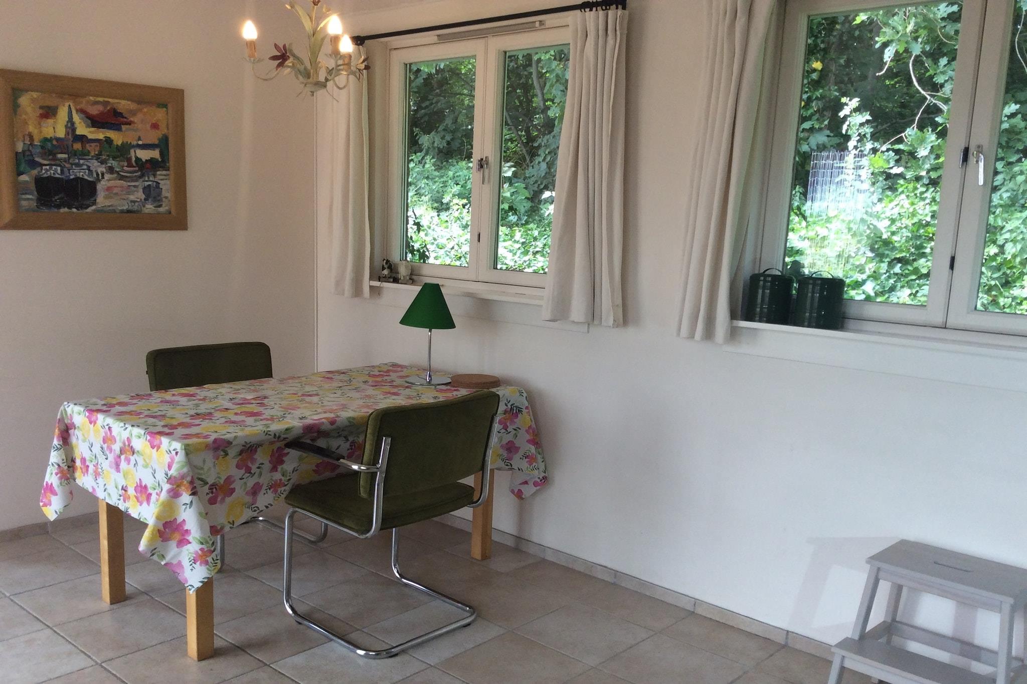 Dette charmerende sommerhus ligger gemt væk i de fredelige klitter i Egmond aan den Hoef og tilbyder et roligt tilbagetog i udkanten af Nordhollandsklitterne. Omgivet af natur og langt fra trafik er det perfekt for par eller solo-rejsende, der søger hvile og inspiration. Indenfor kan du nyde et hyggeligt opholdsrum med gulvvarme, en sofagruppe og et veludstyret åbent køkken. Udenfor inviterer en solrig terrasse med havemøbler og liggestole dig til at slappe af, spise al fresco eller kigge på stjerner under parasollen. Den gyldne strand i Egmond aan Zee ligger kun en kort gåtur væk og er ideel til svømning, spadsereture eller picnic ved solnedgang. Udforsk klitreservatet med sine vilde hjorte, unikke flora og naturskønne vandre- eller cykelstier. Alkmaar med sit historiske ostemarked og Amsterdam ligger inden for rækkevidde for dagsture. Lokale spisemuligheder inkluderer friske fisk og skaldyr på Eazee eller sæsonbestemt køkken på Nieuw Westert. Dette sommerhus kombinerer komfort, ro og natur og tilbyder en uforglemmelig ferie i alle årstider.