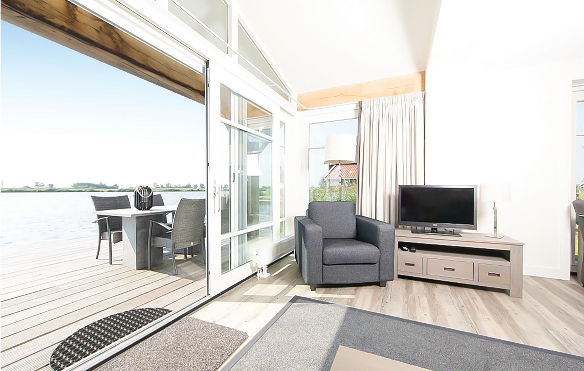 Dette 4-personers hus har en meget lys stue. Næsten halvdelen af ??det er glas, så I kan forestille jer, hvor mange udsigter I har. Det ligger også direkte på et af parkens vandløb og har to soveværelser og et badeværelse og et separat toilet. Vil I køle af på en solskinsdag? I kan komme i vandet direkte fra jeres hjem. Der er flere lejligheder af denne type i parken. Den nøjagtige placering i parken kan afvige fra billederne. Interiøret kan afvige fra billederne, alle huse har samme kvalitetsstandard. Huset er udstyret med alle faciliteter inklusive WiFi, fladskærms-tv, centralvarme, opvaskemaskine, mikroovn. Derudover kan I parkere to biler ved huset. Ejendommen har også en privat kaj med badestige.
