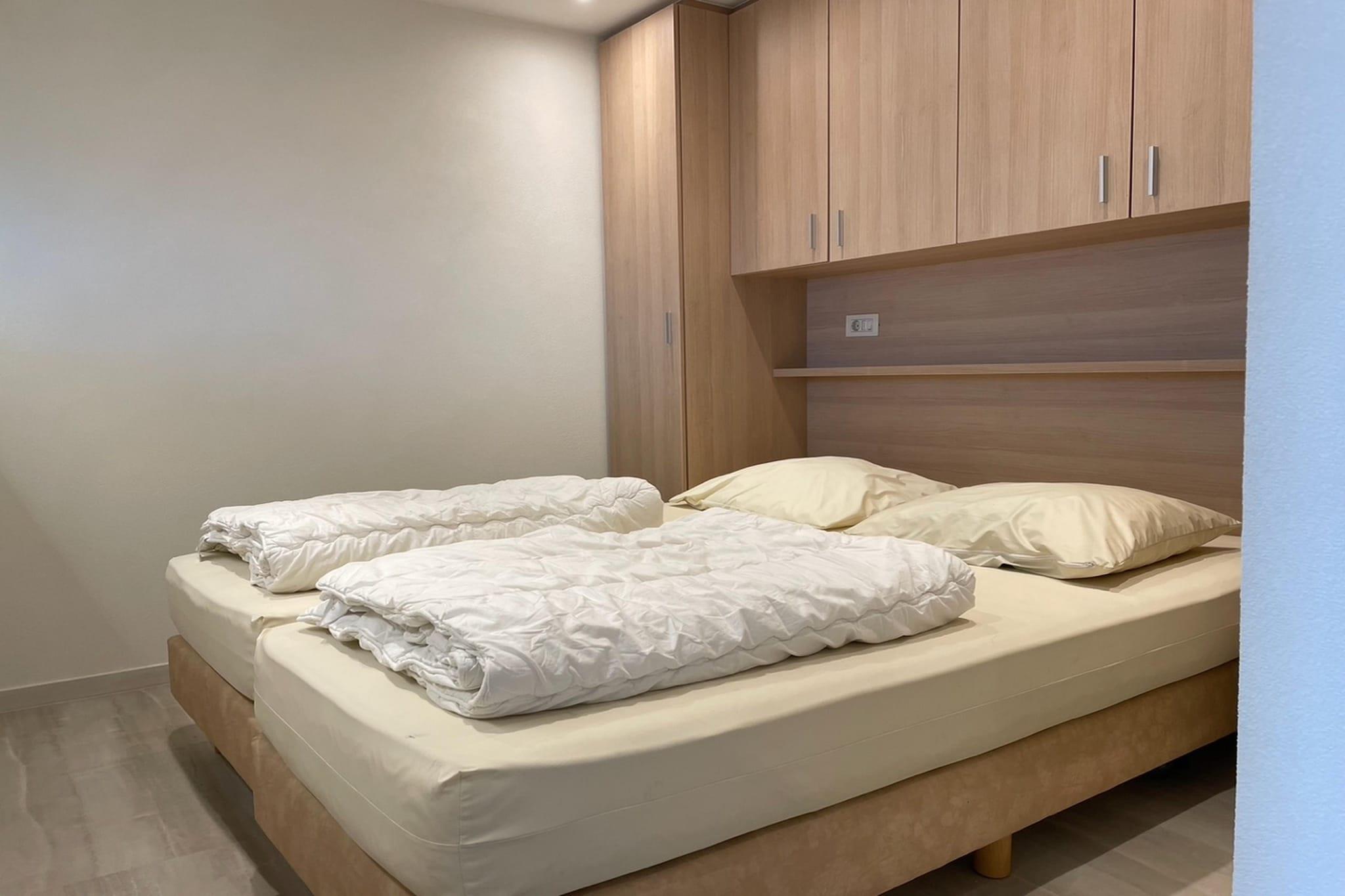 Lejligheden har et åbent køkken med moderne faciliteter, herunder kogeplader, kaffemaskine, mikroovn, opvaskemaskine og køleskab med fryser, perfekt til at tilberede måltider. Stuen/spisestuen har et komfortabelt opholdsområde og tv til afslapning. I stueetagen byder et hyggeligt soveværelse med to enkeltsenge på et afslappende tilflugtssted, mens badeværelset er udstyret med bruseniche, håndvask og toilet. Beliggende i udkanten af den maleriske kunstnerlandsby Groede, kun 2,5 km fra stranden, tilbyder denne indbydende ferielejlighed et fredeligt tilflugtssted. Nyd naturskønne gå- eller cykelture gennem regionens poldere eller langs kysten på promenaden. De charmerende byer Breskens, Oostburg og Sluis er i nærheden, mens dagsture til belgiske badebyer eller historiske byer som Gent og Brugge er let inden for rækkevidde. Ovenpå giver et mezzaninområde med tre enkeltsenge ekstra soveplads til gæsterne. Udenfor kan du slappe af på din private terrasse, komplet med havemøbler, eller nyde de fælles legefaciliteter til rådighed for børn, herunder en sandkasse og minitraktorer. Med gulvvarme og aircondition sikrer denne lejlighed komfort året rundt, hvilket gør den til en perfekt base for både afslapning og udforskning.