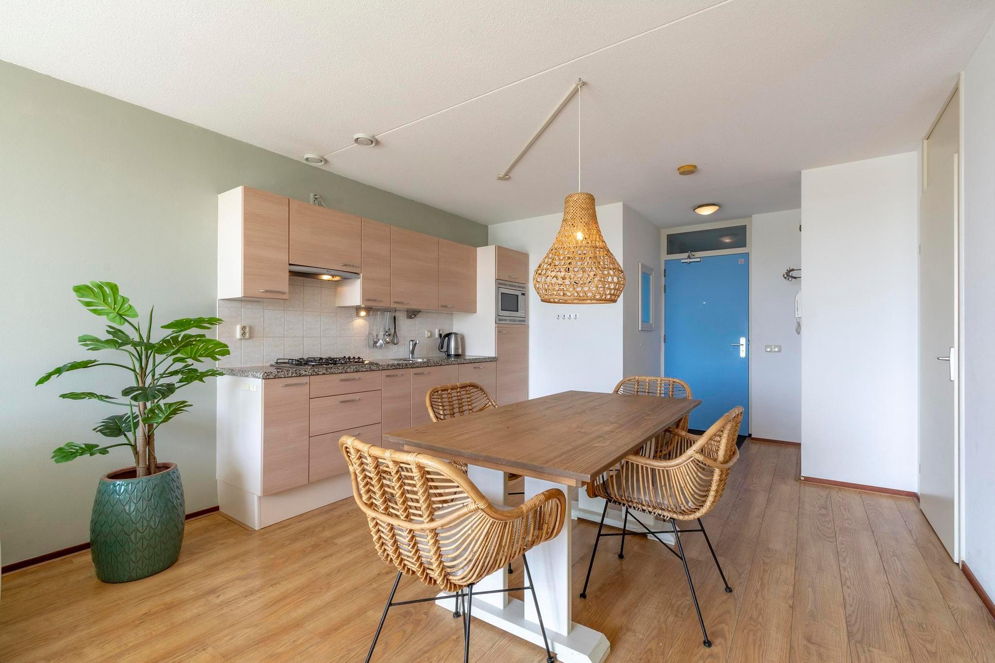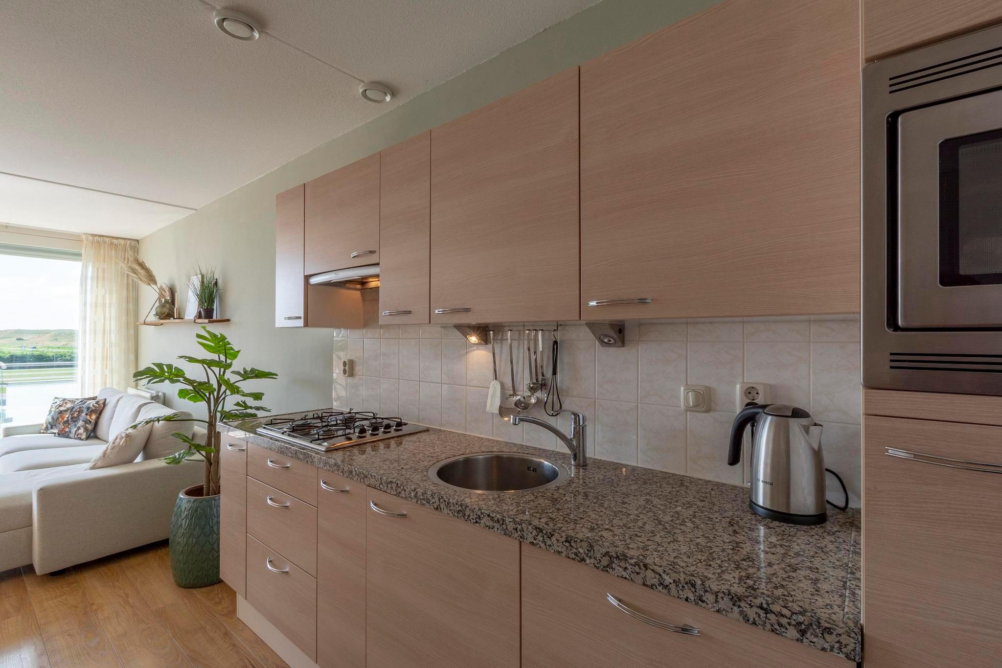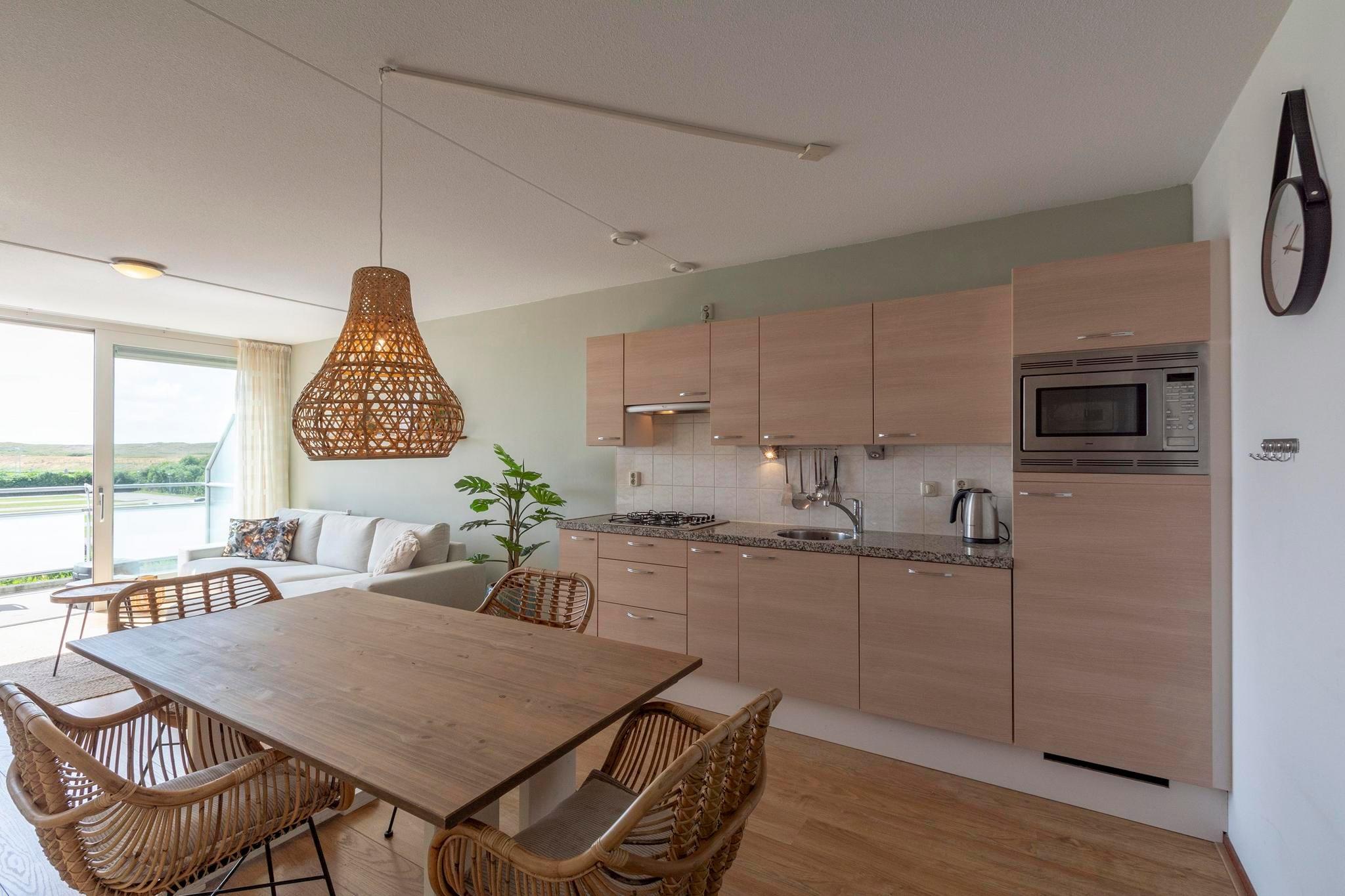 Nyd kystcharmen i denne moderne og solbeskinnede lejlighed perfekt placeret ved indgangen til stranden i Groote Keeten. Beliggende på anden sal tilbyder det en flot udsigt over klitterne fra både den rummelige opholdsstue og den store, private balkon - ideel til solopgangskaffe eller solnedgangsdrinks. Med et lyst åbent layout, smart-tv og en hyggelig sovesofa, kan den komfortabelt rumme op til fire gæster og inviterer dig til at slappe af med stil efter en dag ved havet. Lejligheden har et lækkert køkken med alt det nødvendige til hjemmelavede måltider, et roligt soveværelse med adgang til altan og et stort badeværelse komplet med bruseniche og badekar. Din hund er lige så velkommen, som du er, med direkte adgang til de hundevenlige strande i Groote Keeten og Callantsoog året rundt. Tag på naturskønne klitvandringer, leg apport i brændingen, eller nyd de frie timer på stranden - det er et sandt kæledyrsparadis! På få minutter kan du nå de charmerende spisesteder i Callantsoog eller slappe af ved strandpavilloner som Woest og Zee van Tijd, hvoraf mange byder hunde velkommen på deres terrasser. Efter et lækkert fiske- og skaldyrsmåltid eller en spadseretur gennem det lokale marked kan du trække dig tilbage til din moderne oase over klitterne. Uanset om du er her til dovne stranddage, klitvandringer med din hund eller blot for at lade op i fredfyldte omgivelser, tilbyder denne lejlighed den ultimative flugt fra Nordholland.